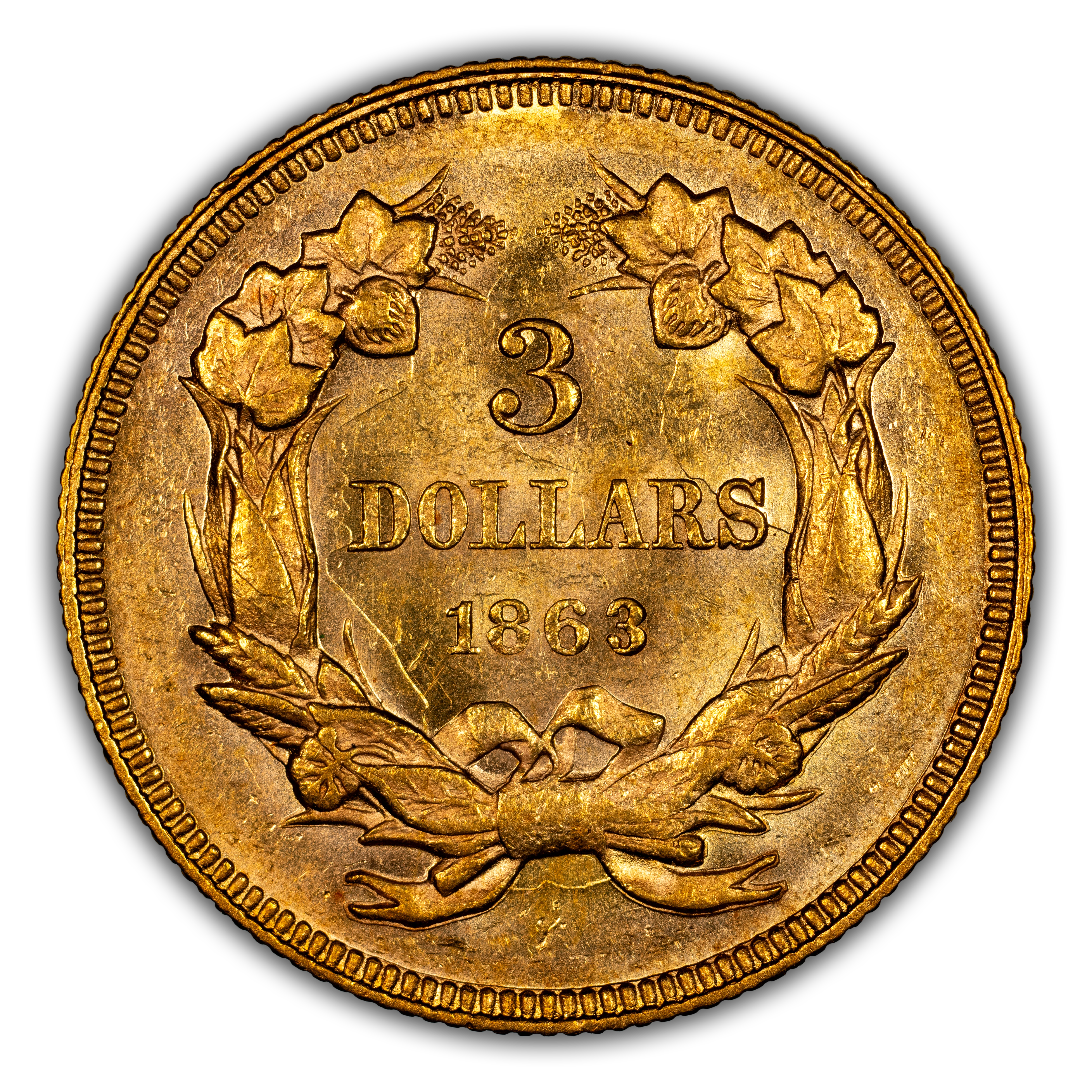1863 $3 PCGS MS62 ex: D.L. Hansen