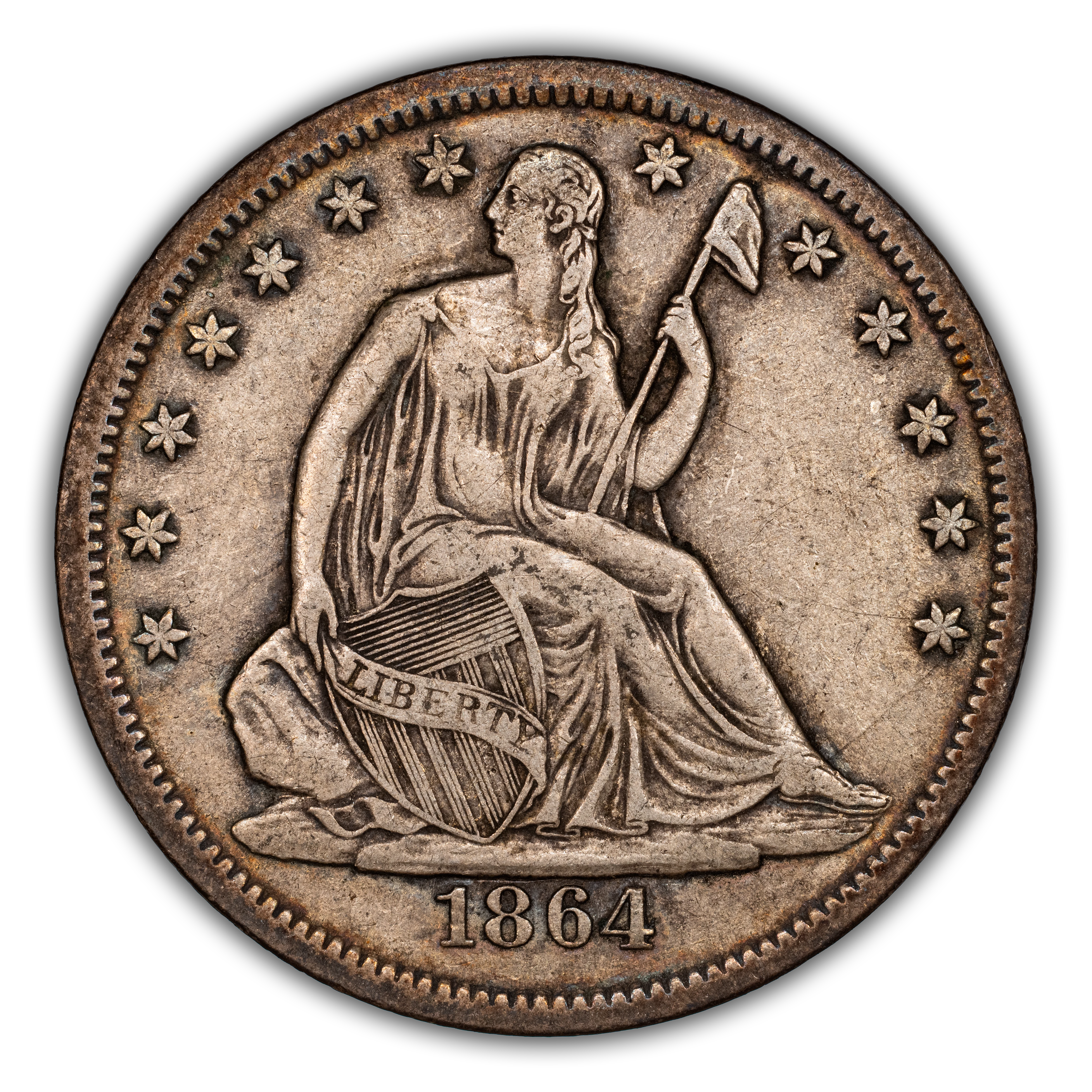 1864-S 50C VF30 PCGS. PCGS Population: (33/134 and 0/1+). NGC Census: (6/58 and 0/0+). CDN: $225 Whsle. Bid for NGC/PCGS VF...