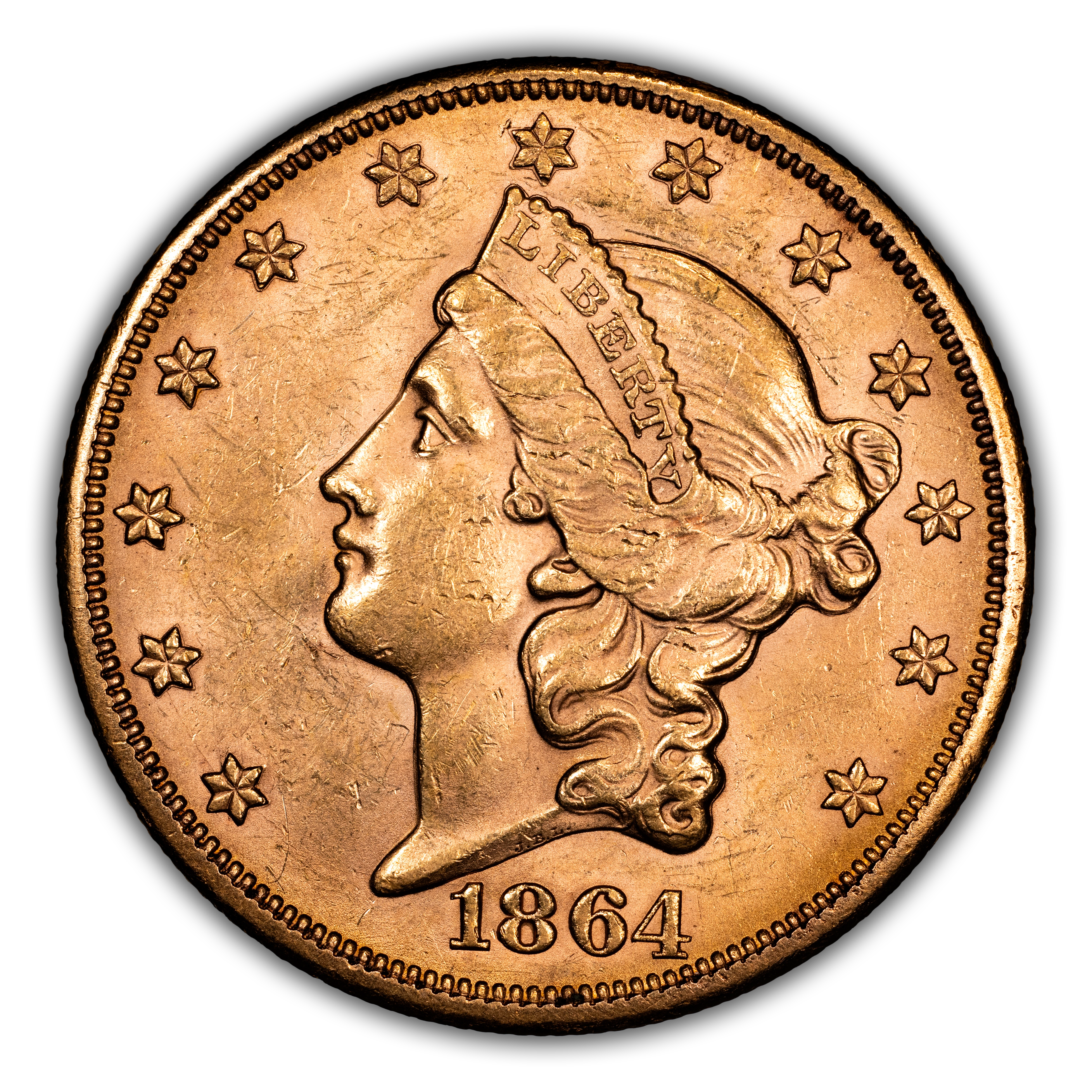 Brother Jonathan: 1864-S $20 PCGS AU58