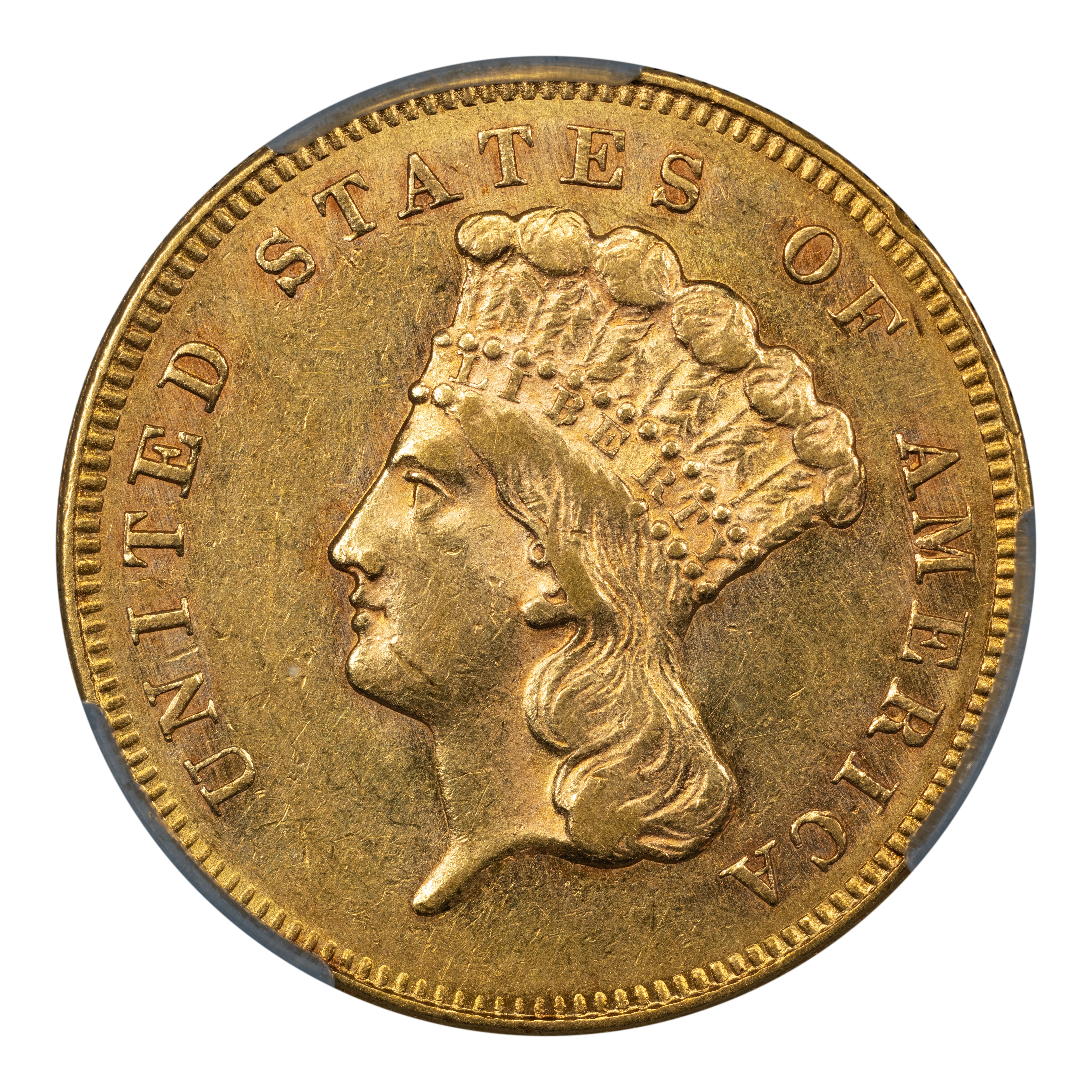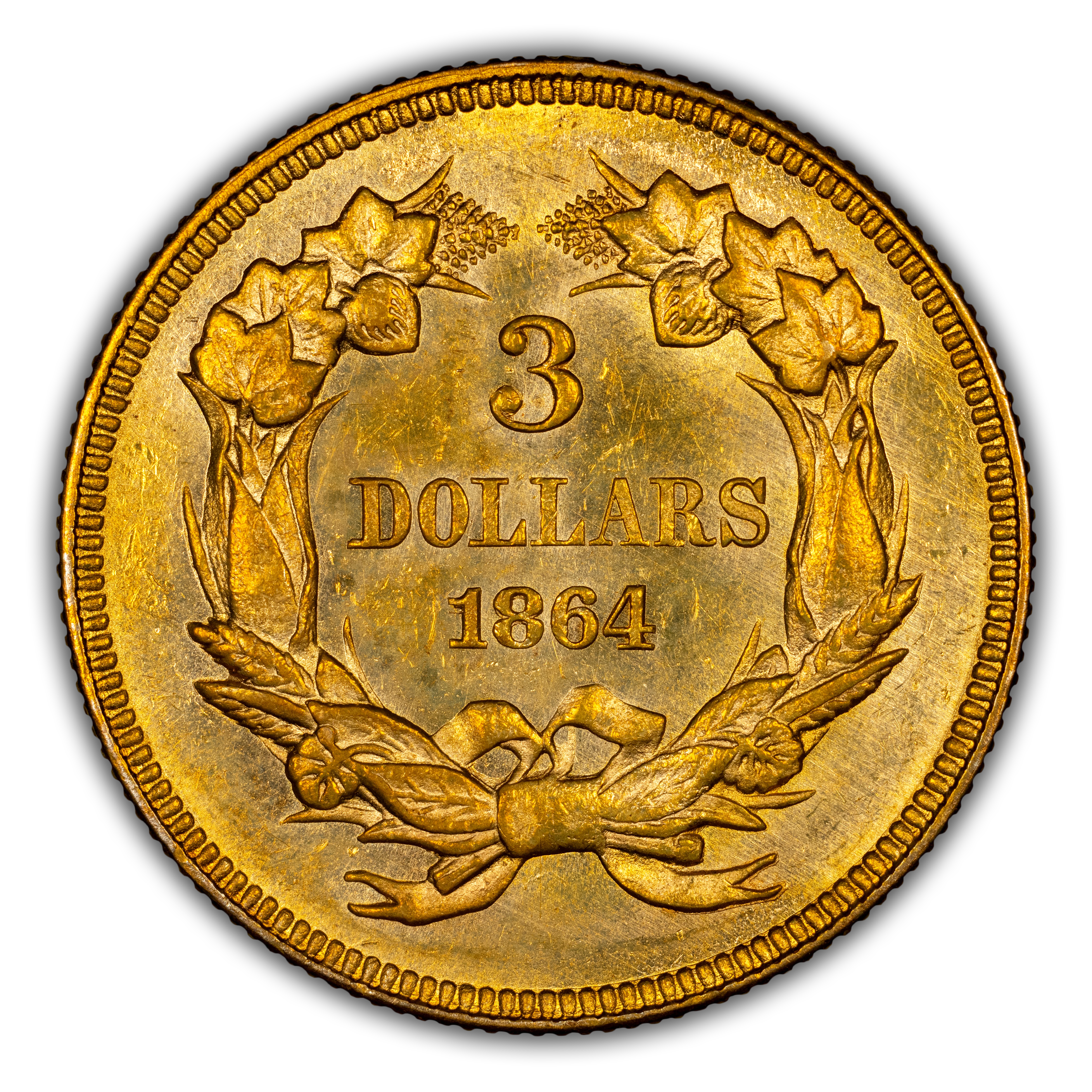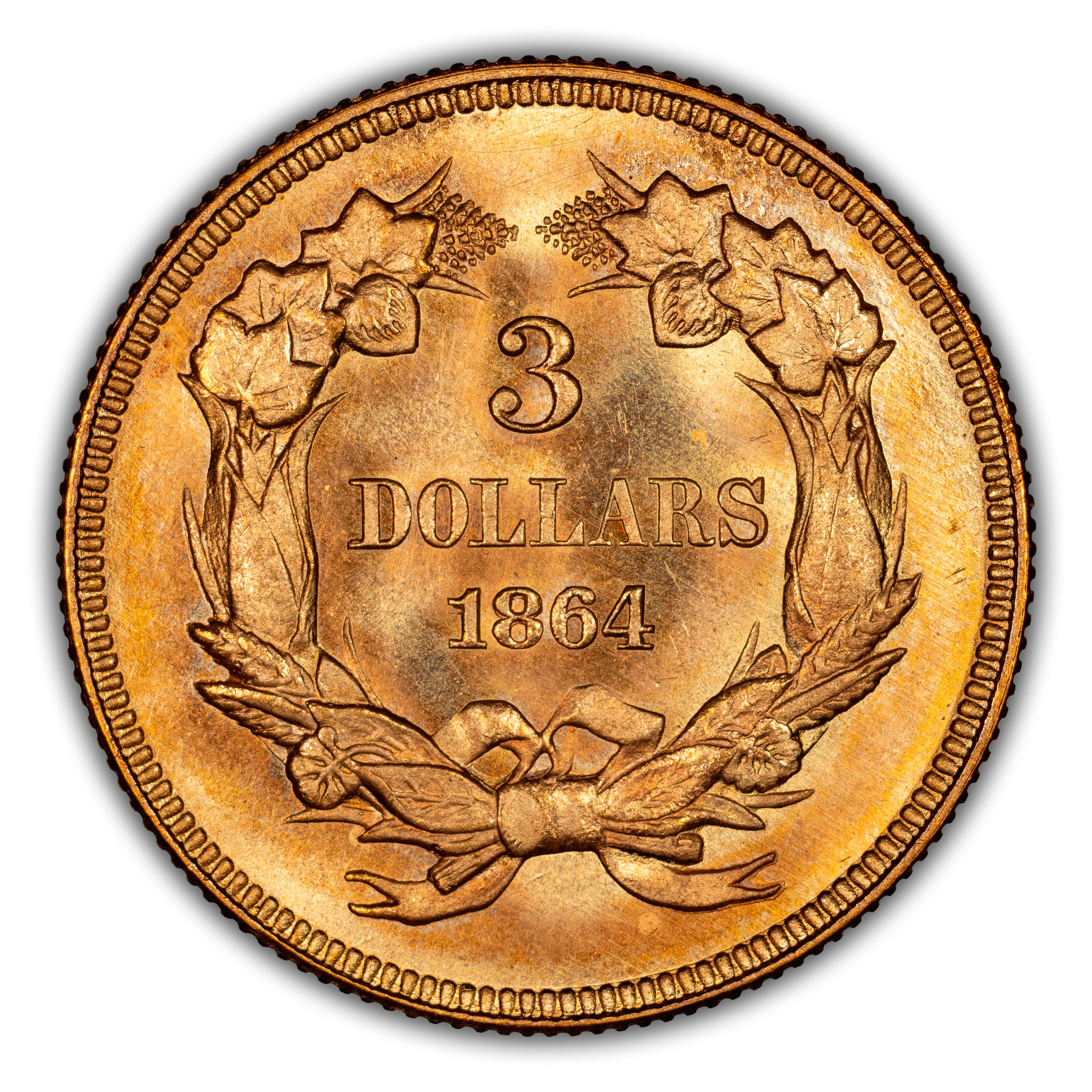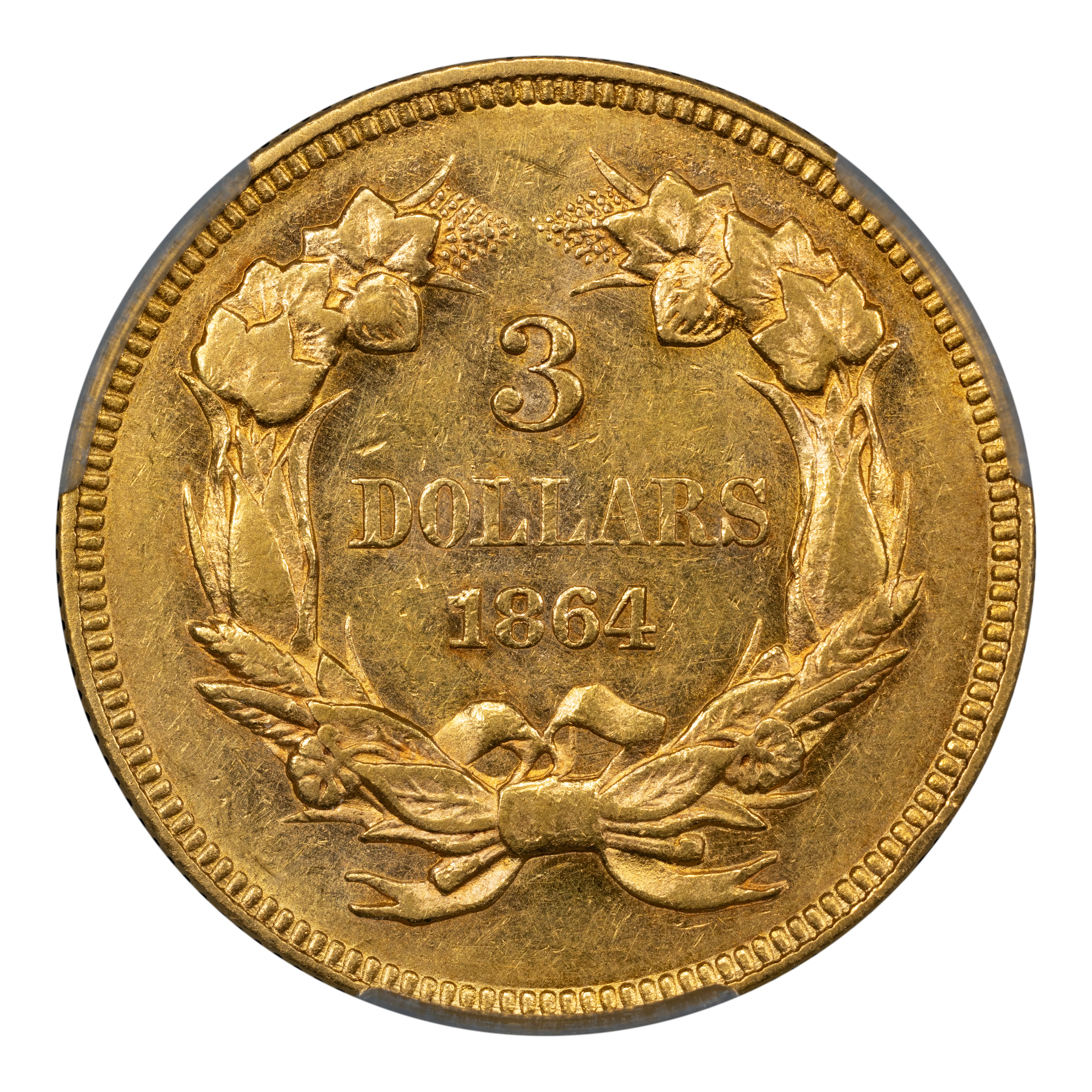 1864 $3 PCGS AU53 - Very Low Mintage Issue, Civil War Era