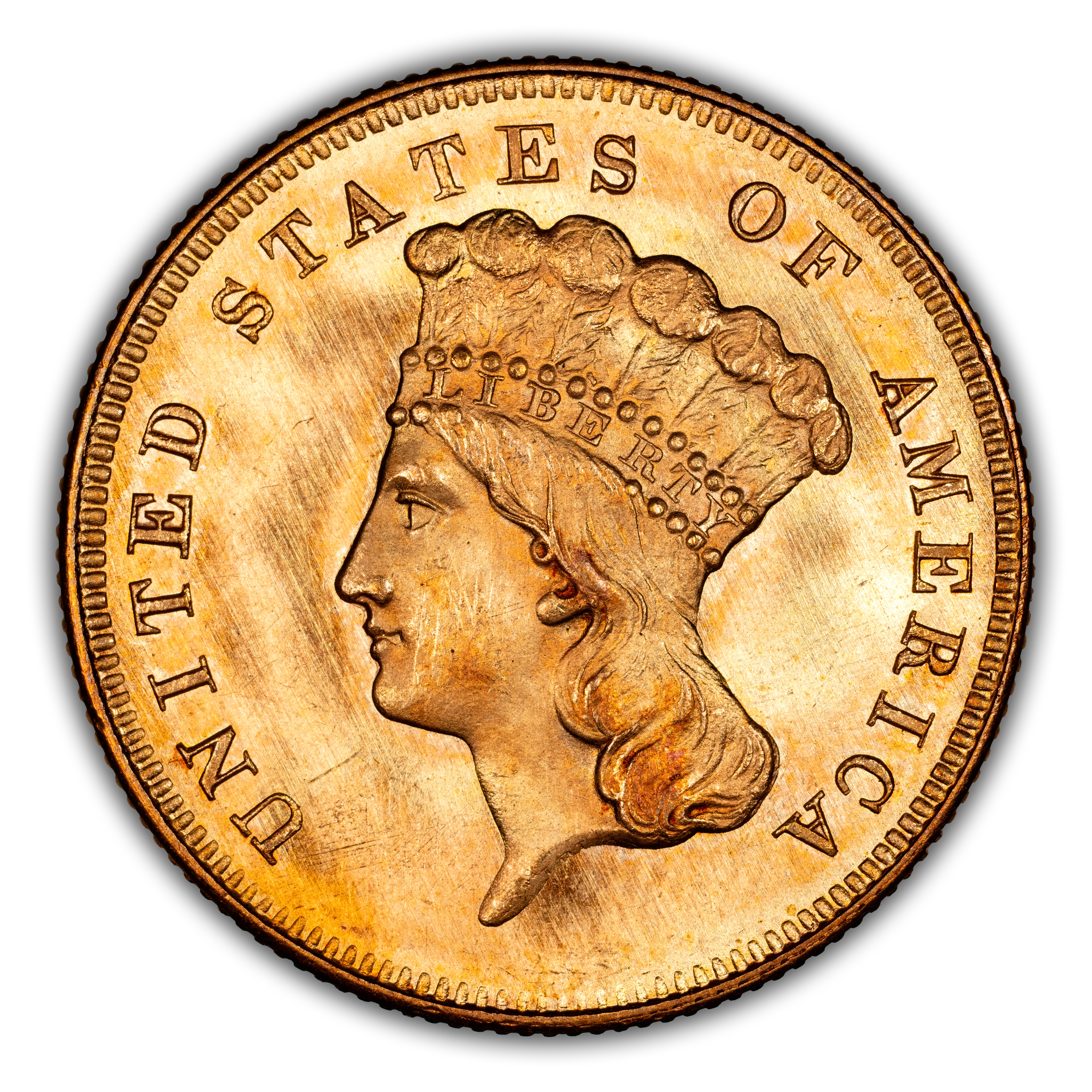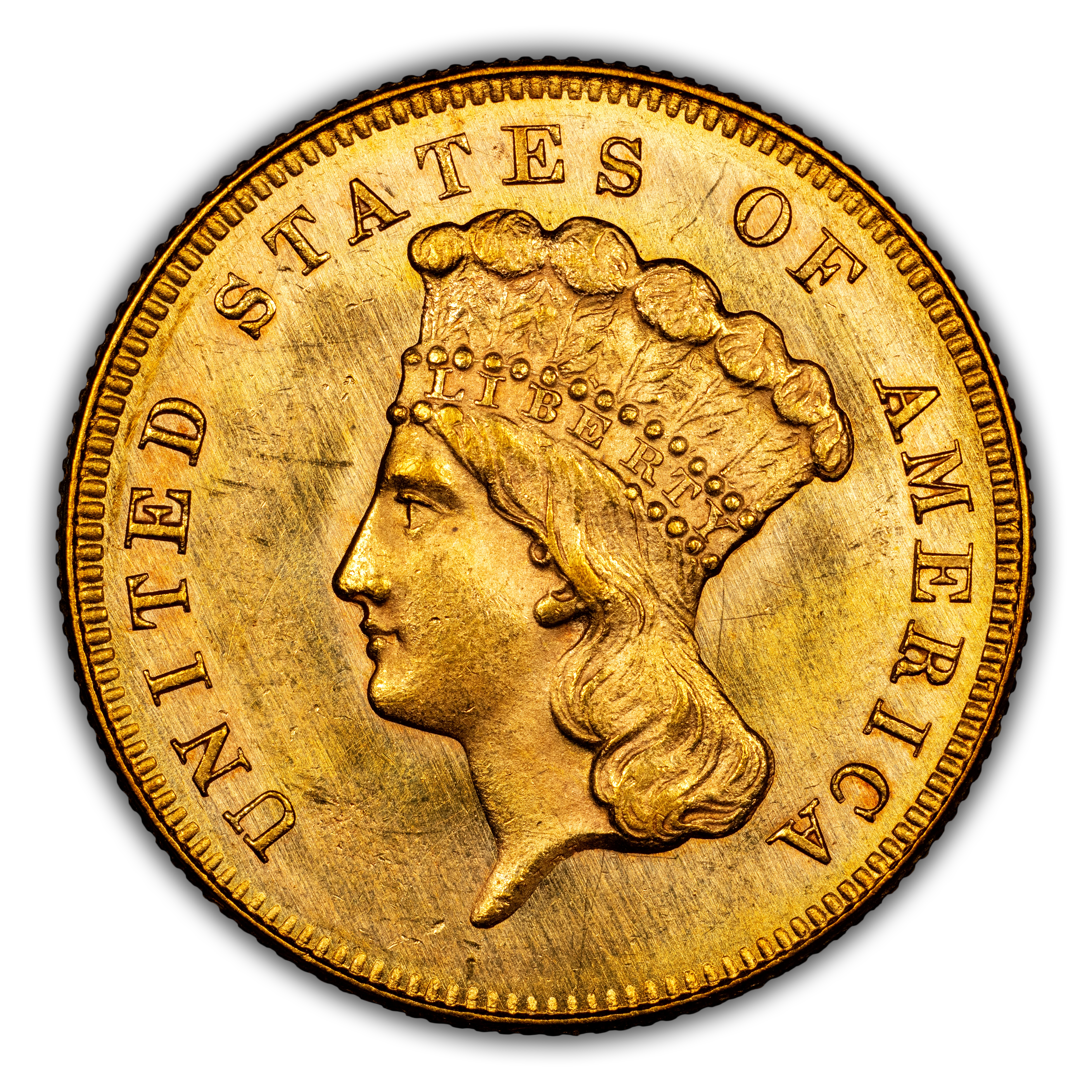 1864 Three-Dollar Gold Piece. MS-64+ (PCGS).