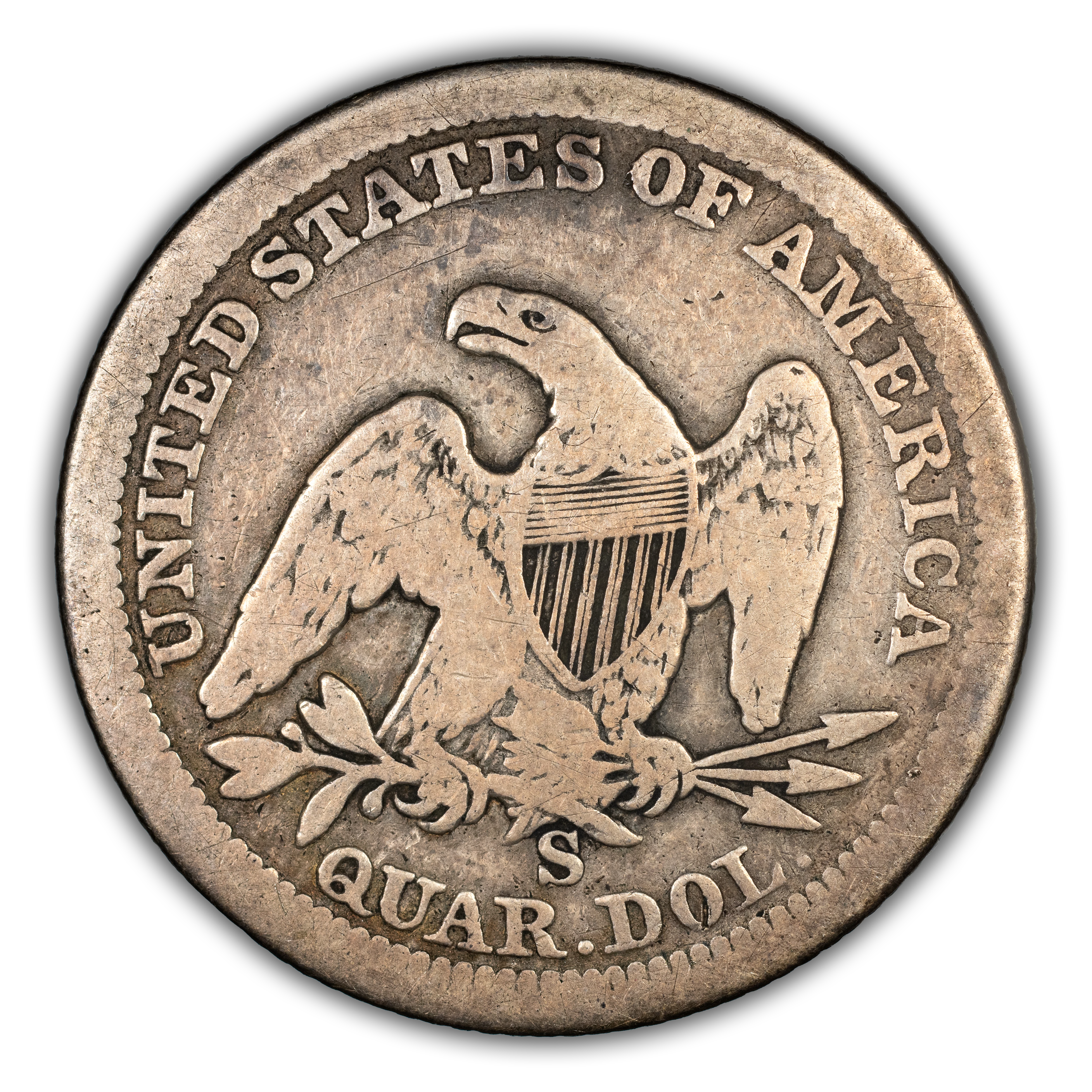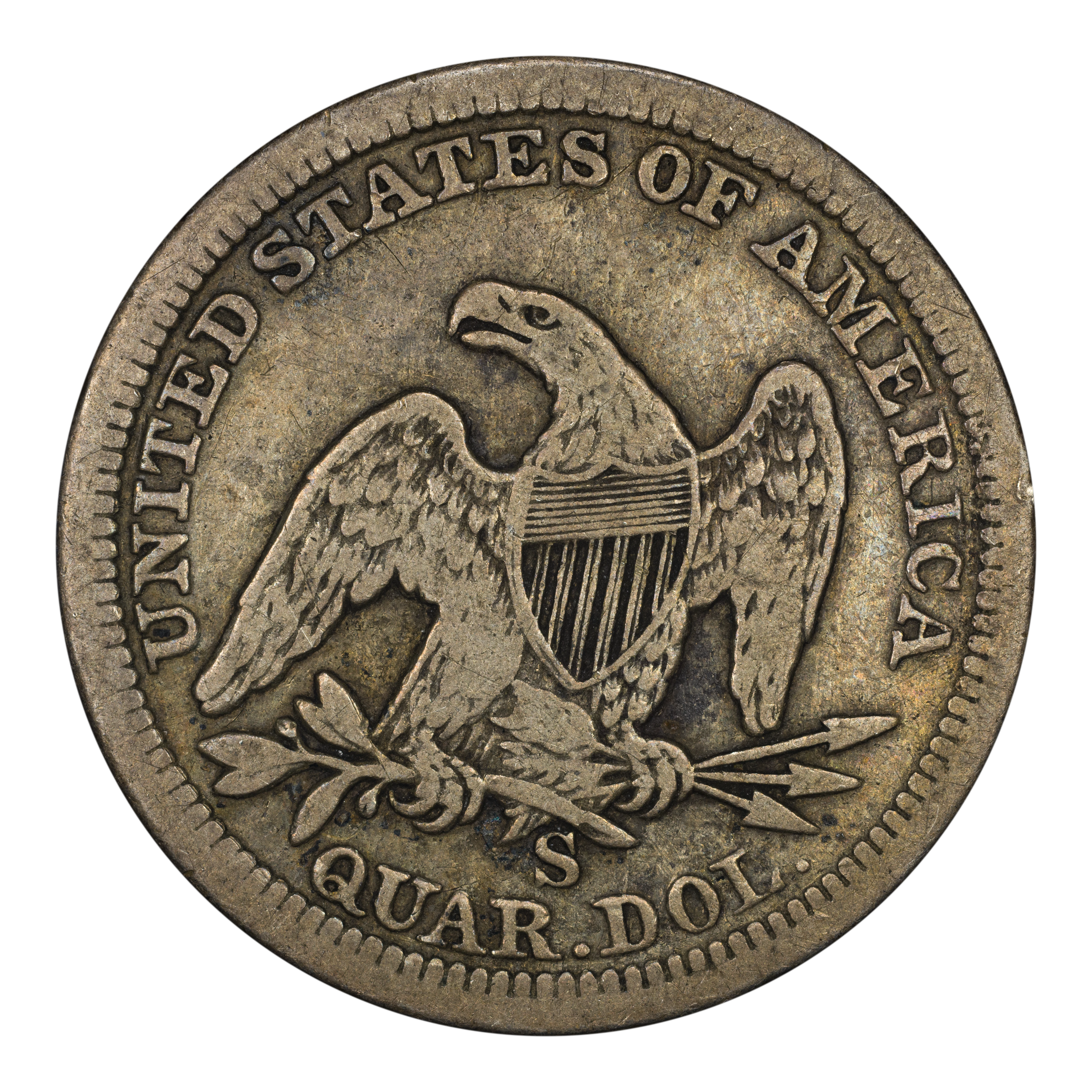 Reverse: The heraldic eagle is centered in the design with the words UNITED STATES OF AMERICA and QUAR. DOL. around the periphery.
