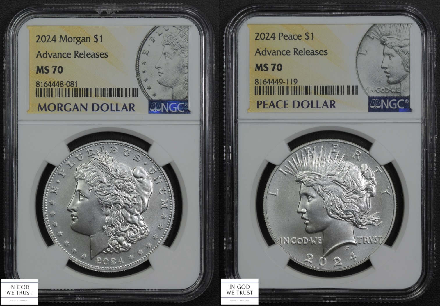 Reverse: The heraldic eagle is centered in the design with the words UNITED STATES OF AMERICA and ONE DOL. around the periphery. The motto IN GOD WE TRUST appears in a ribbon above the eagle's head.