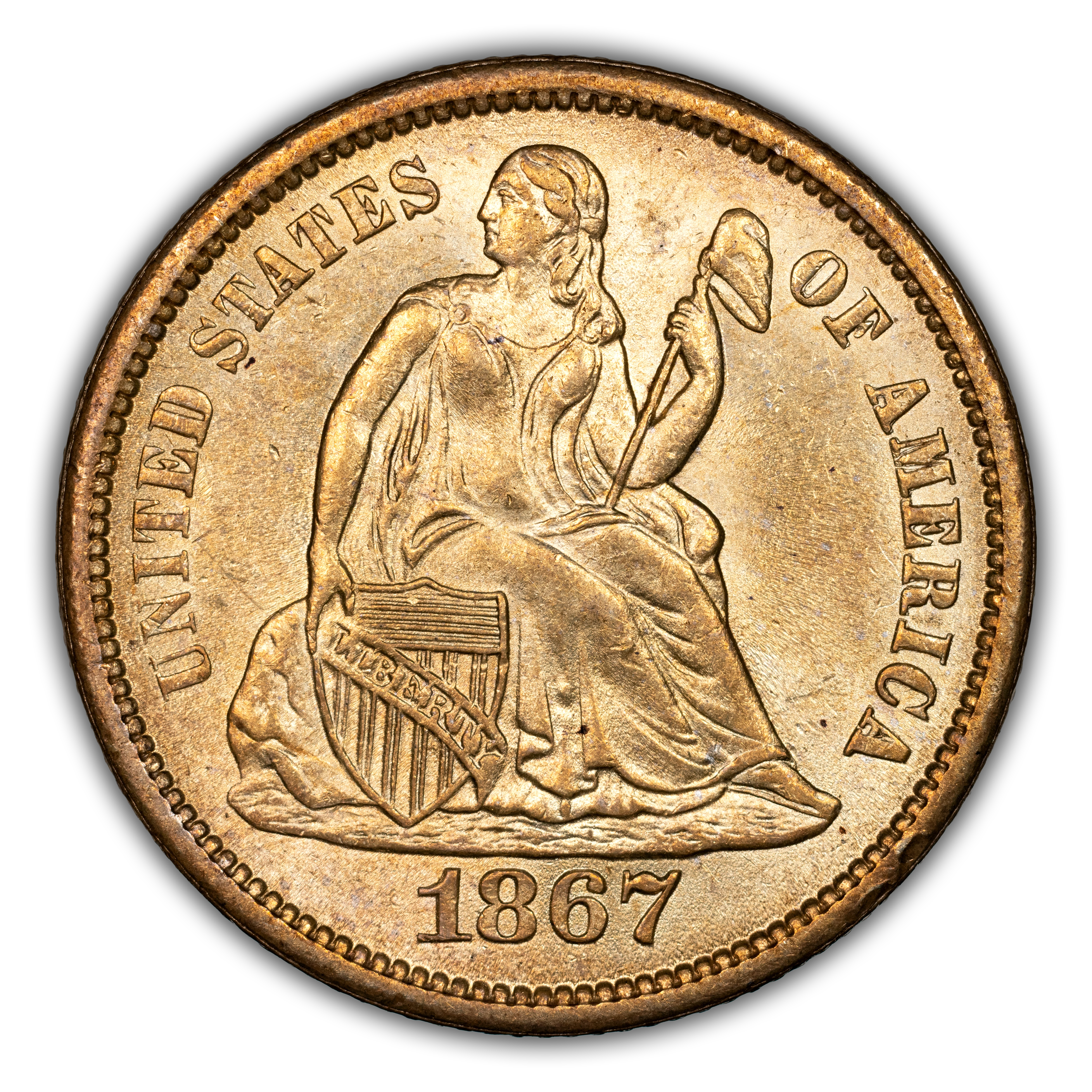 1867-S 10c PCGS/CAC VF20 - Scarce Date