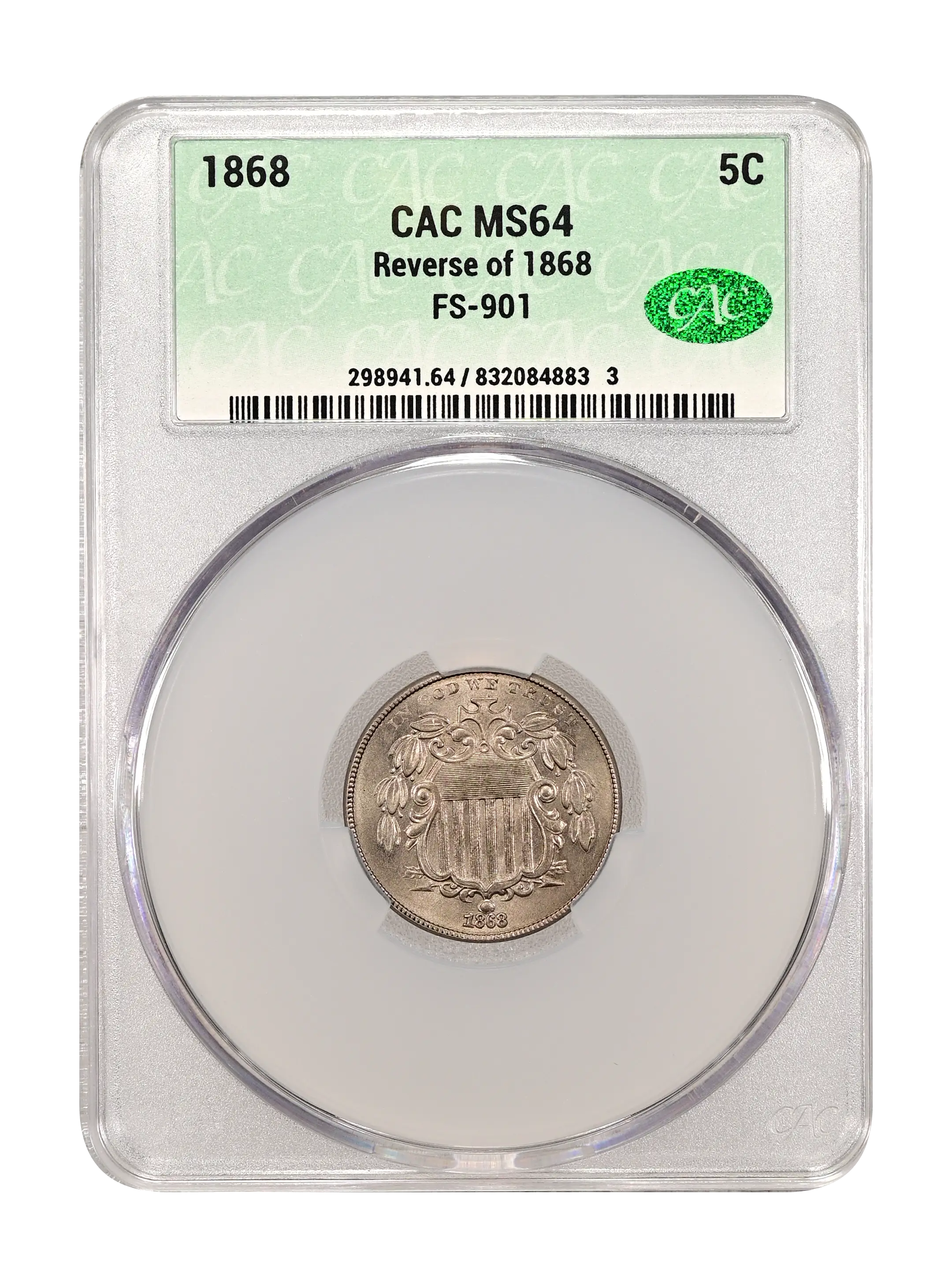 1868 Reverse of 1868 5c FS-901 CAC MS64