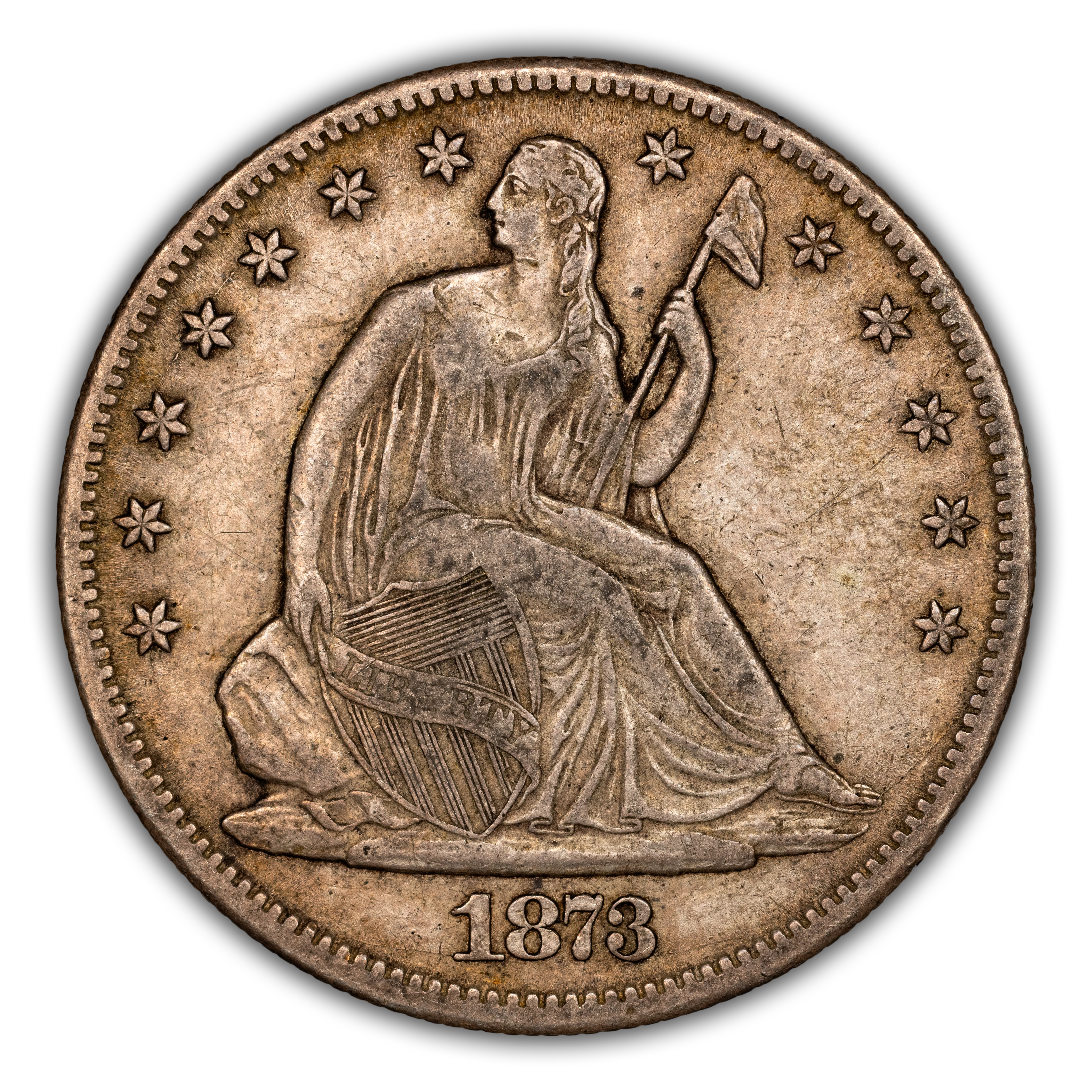 1873-CC 50C No Arrows VF30 PCGS. PCGS Population: (11/75 and 0/0+). NGC Census: (5/29 and 0/0+). CDN: $2,100 Whsle. Bid for...