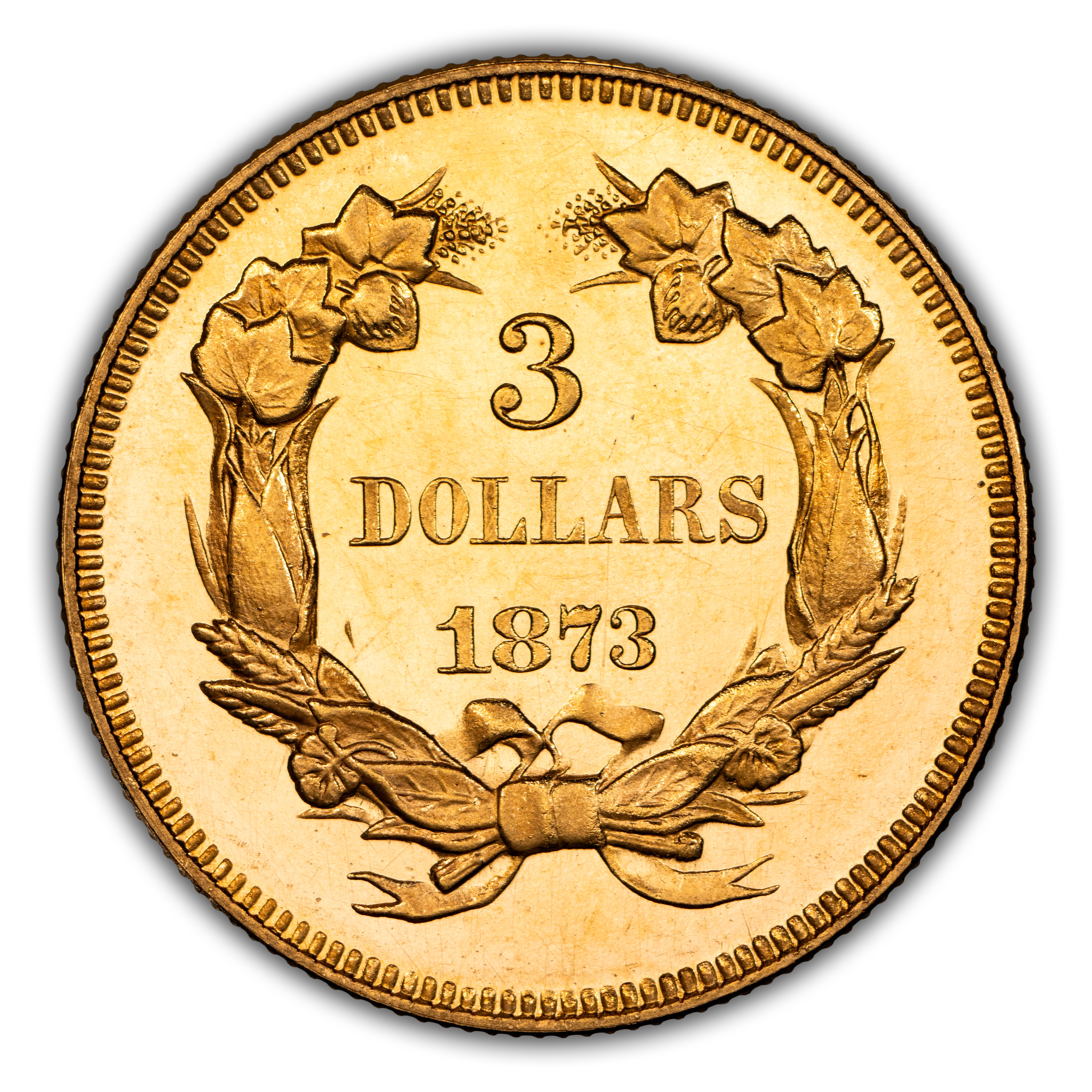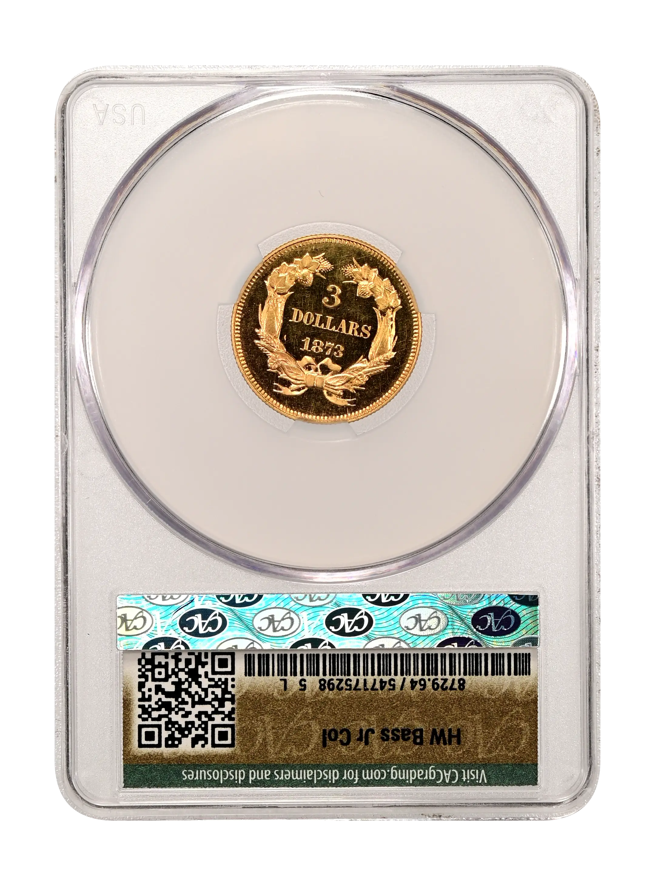 1873 $3 PCGS/CAC Proof 64 DCAM (Open 3)