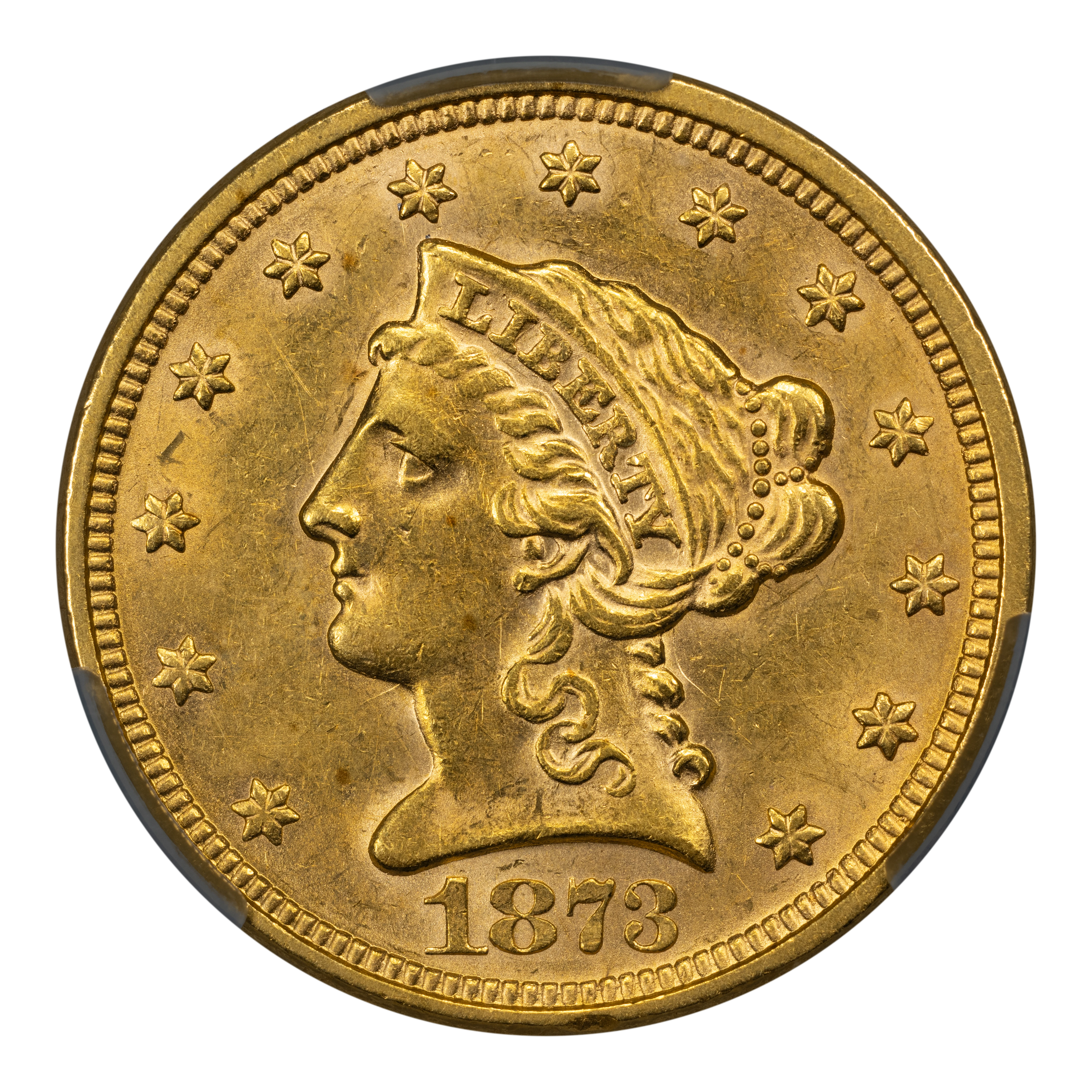 1873 $2 1/2 PCGS AU55 (Closed 3)