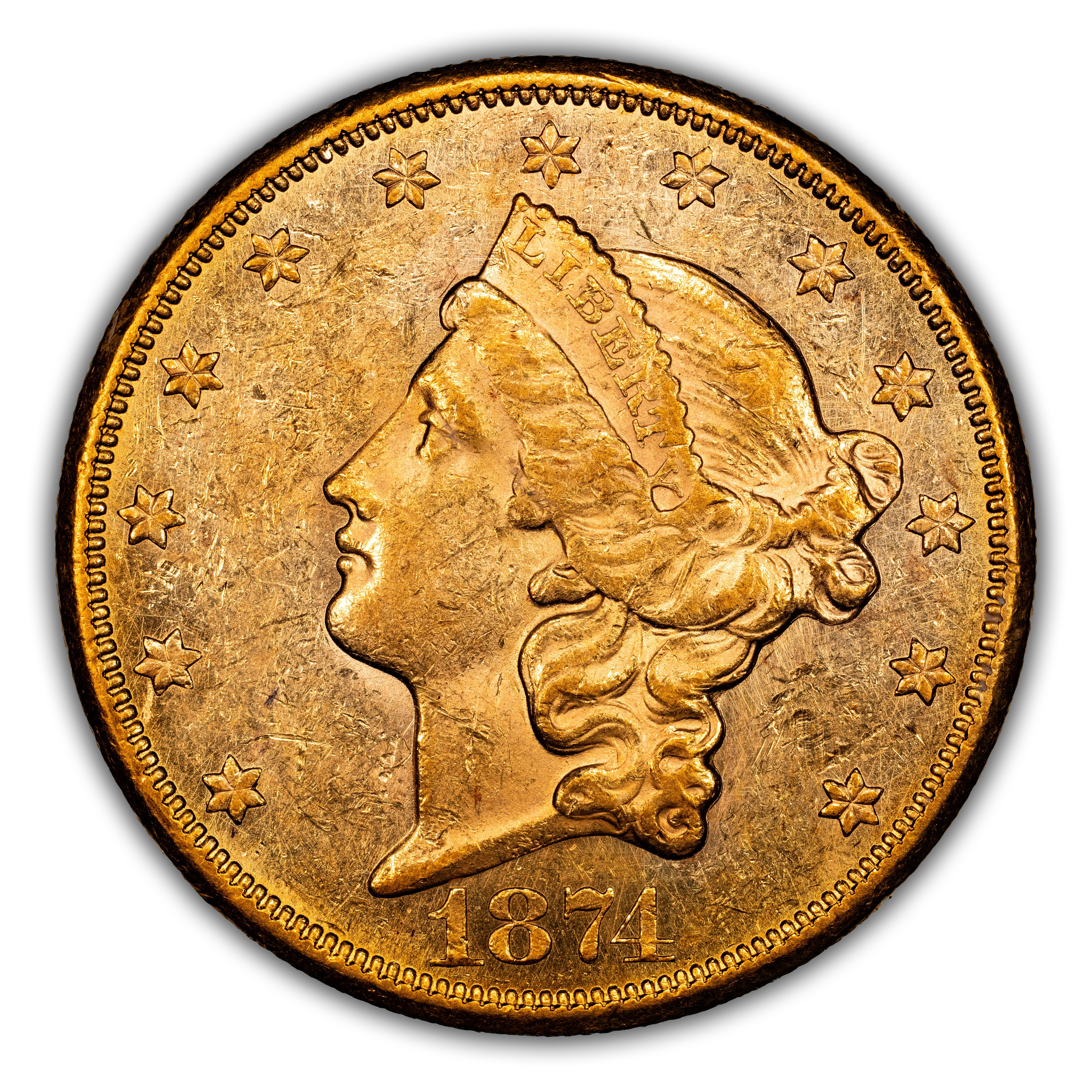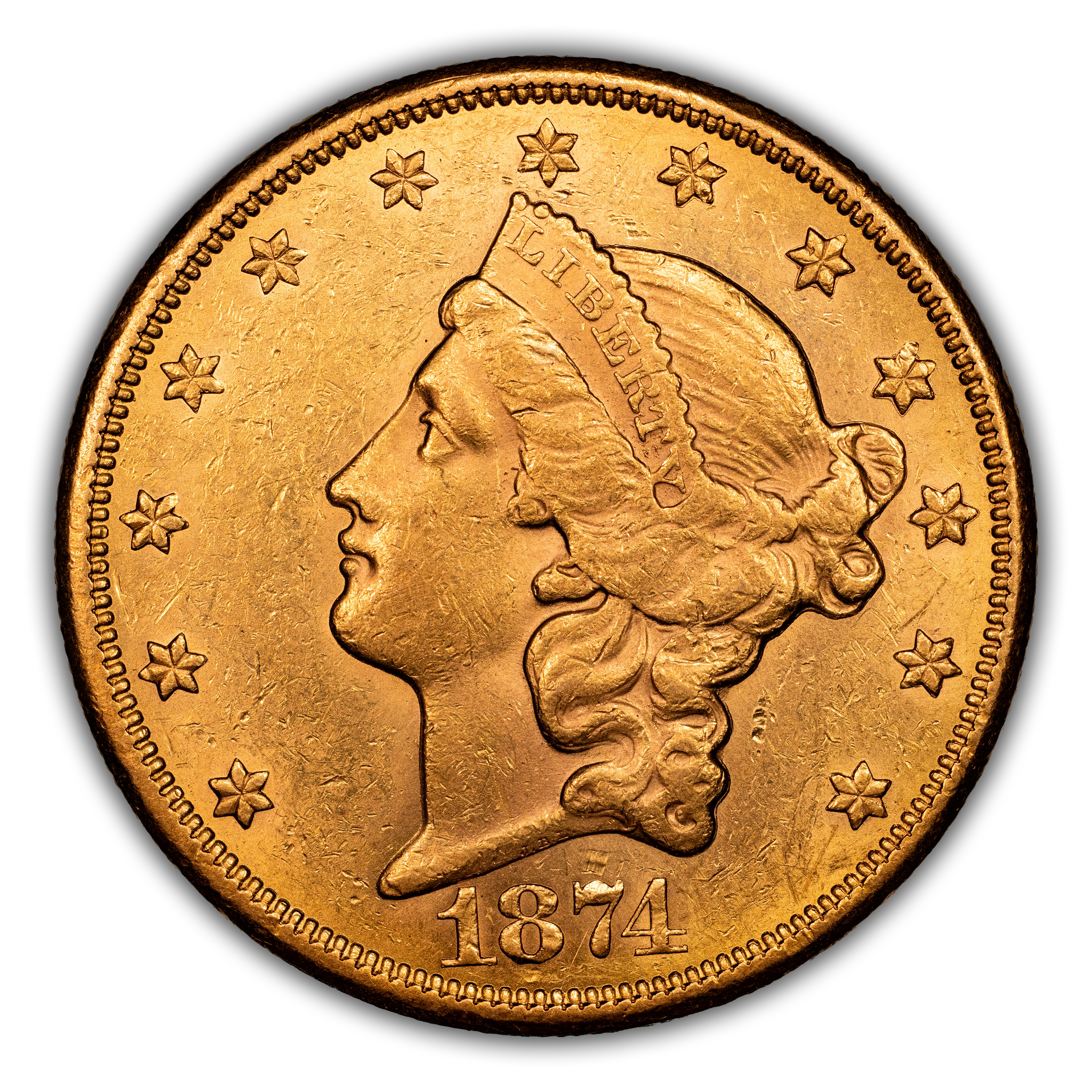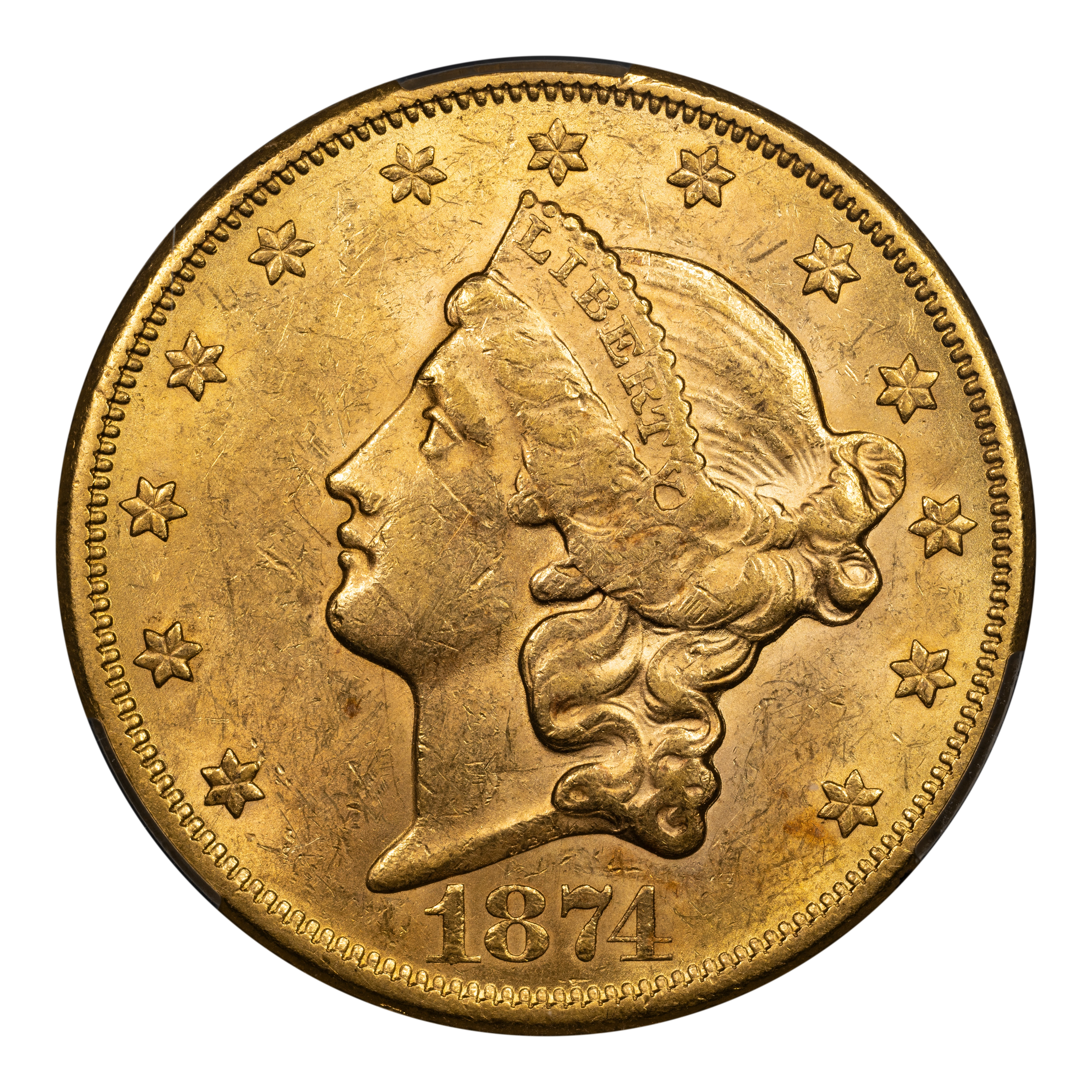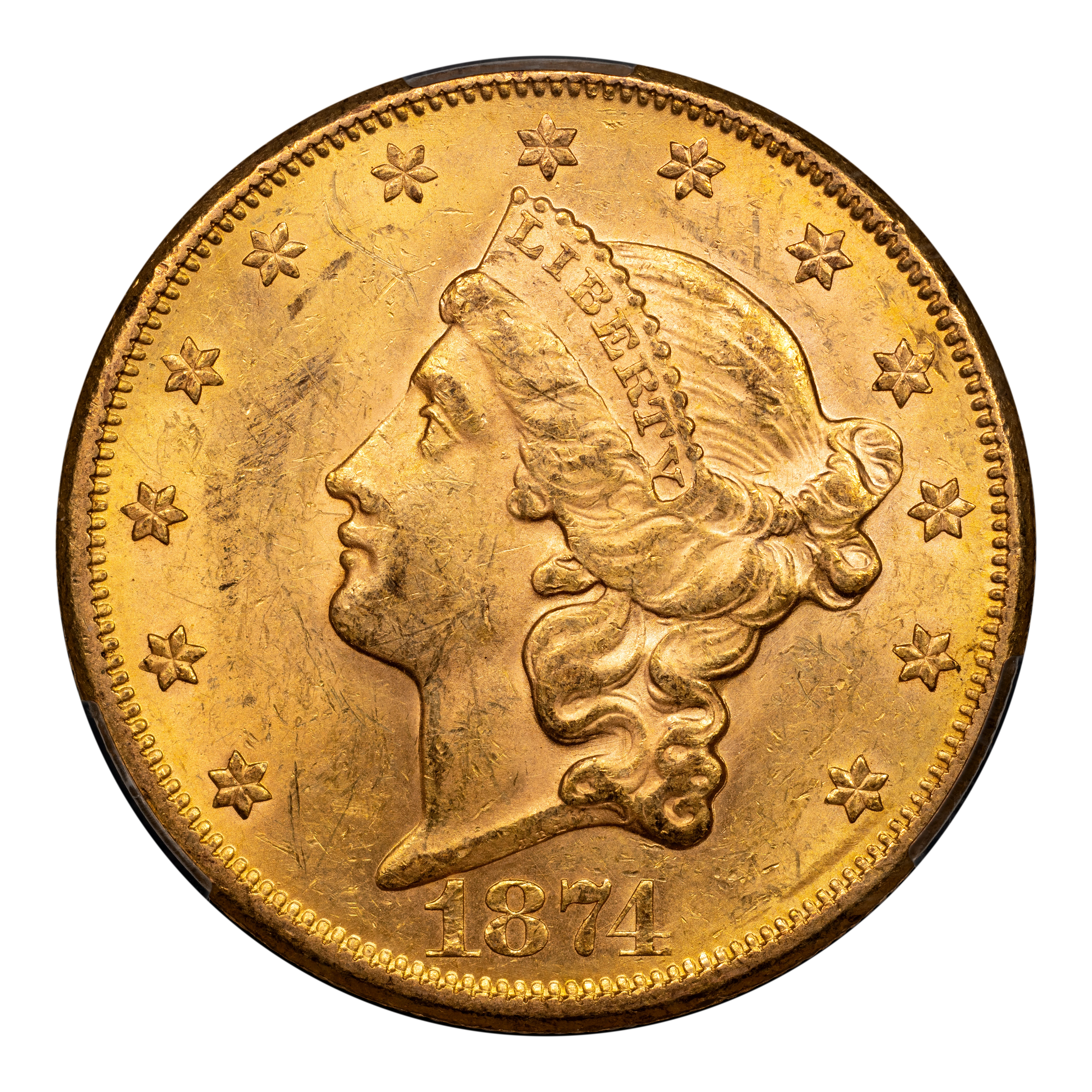 1874-CC $20 MS62 PCGS Secure. Variety 1-A....