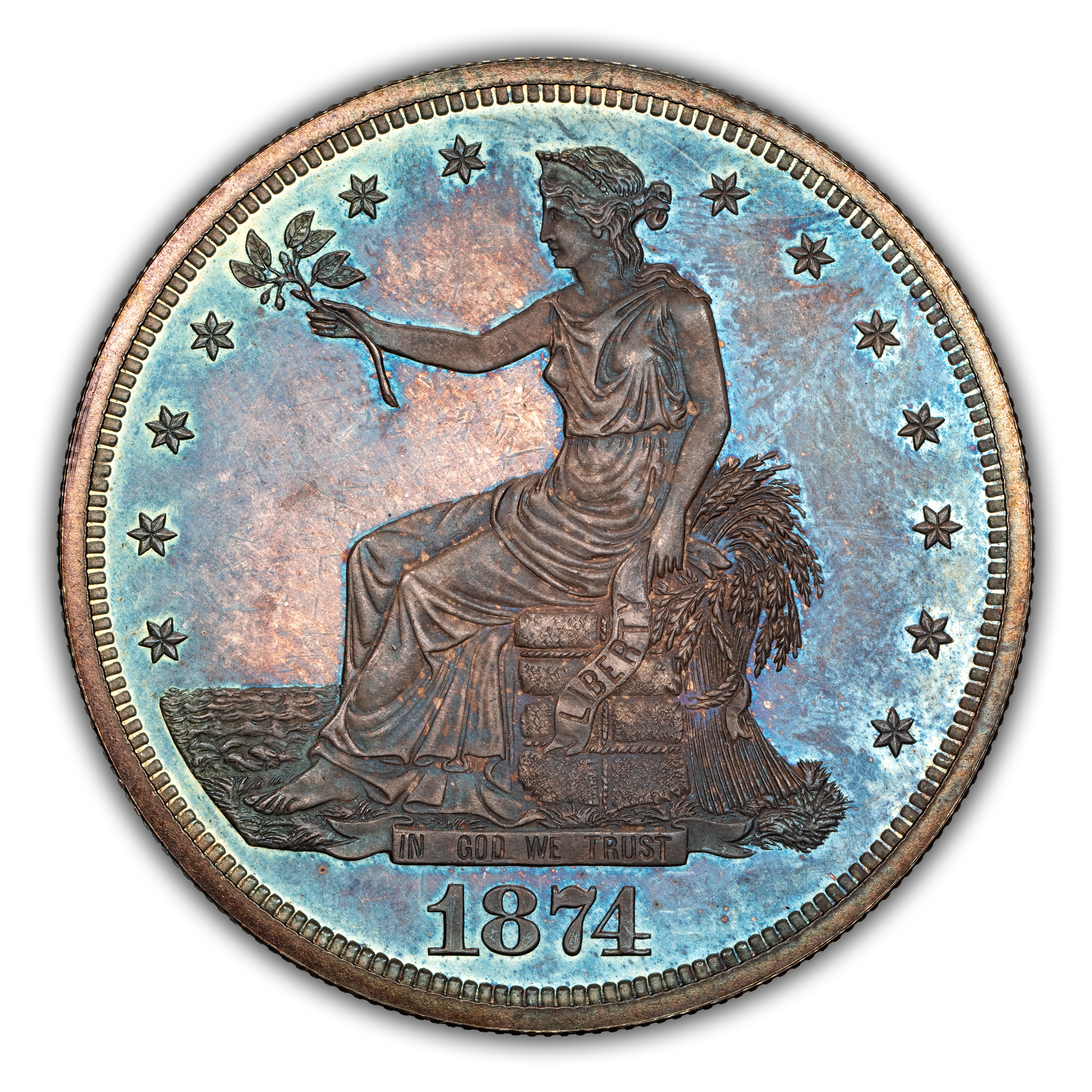 1874 Trade$ PCGS Proof 64 - Colorful Toning