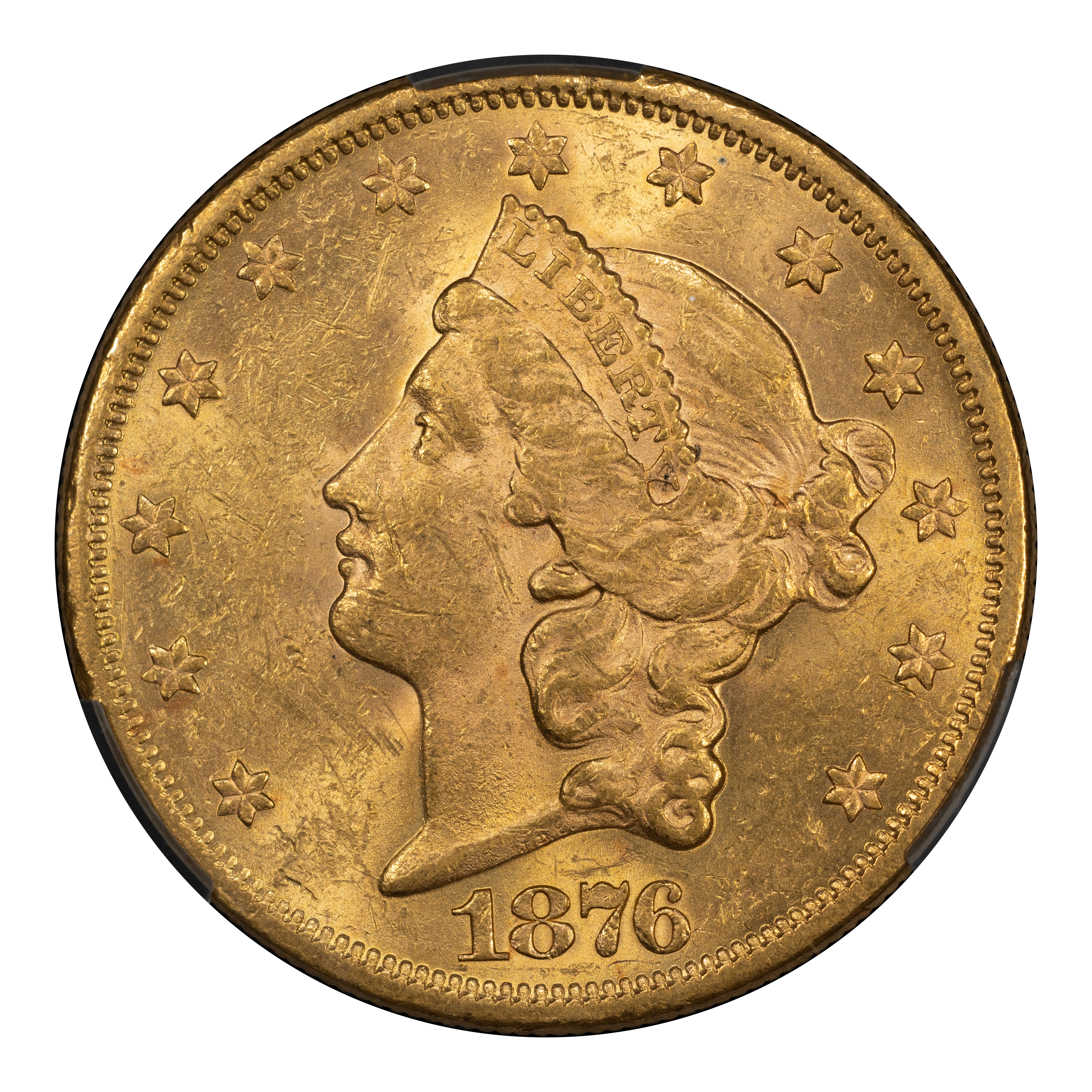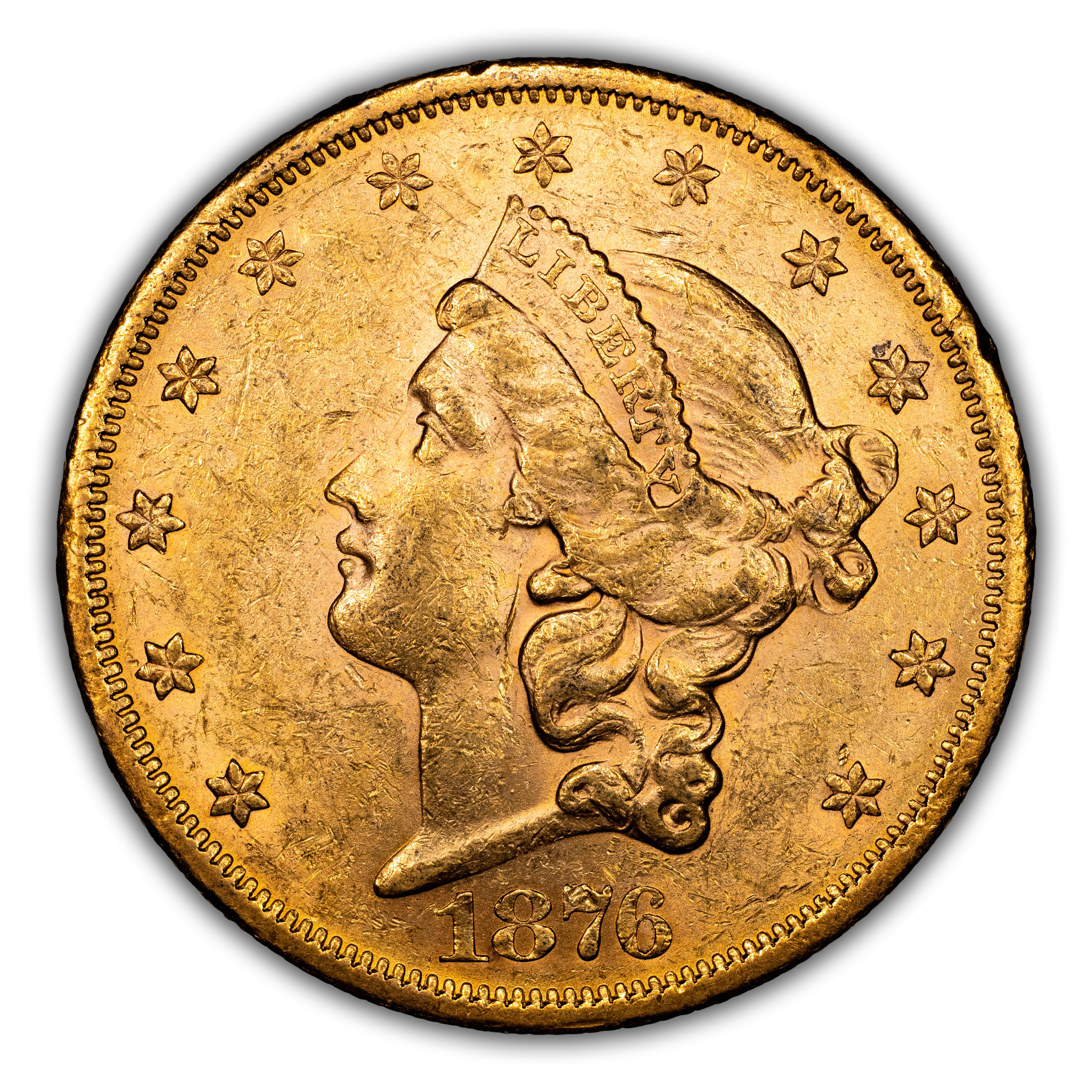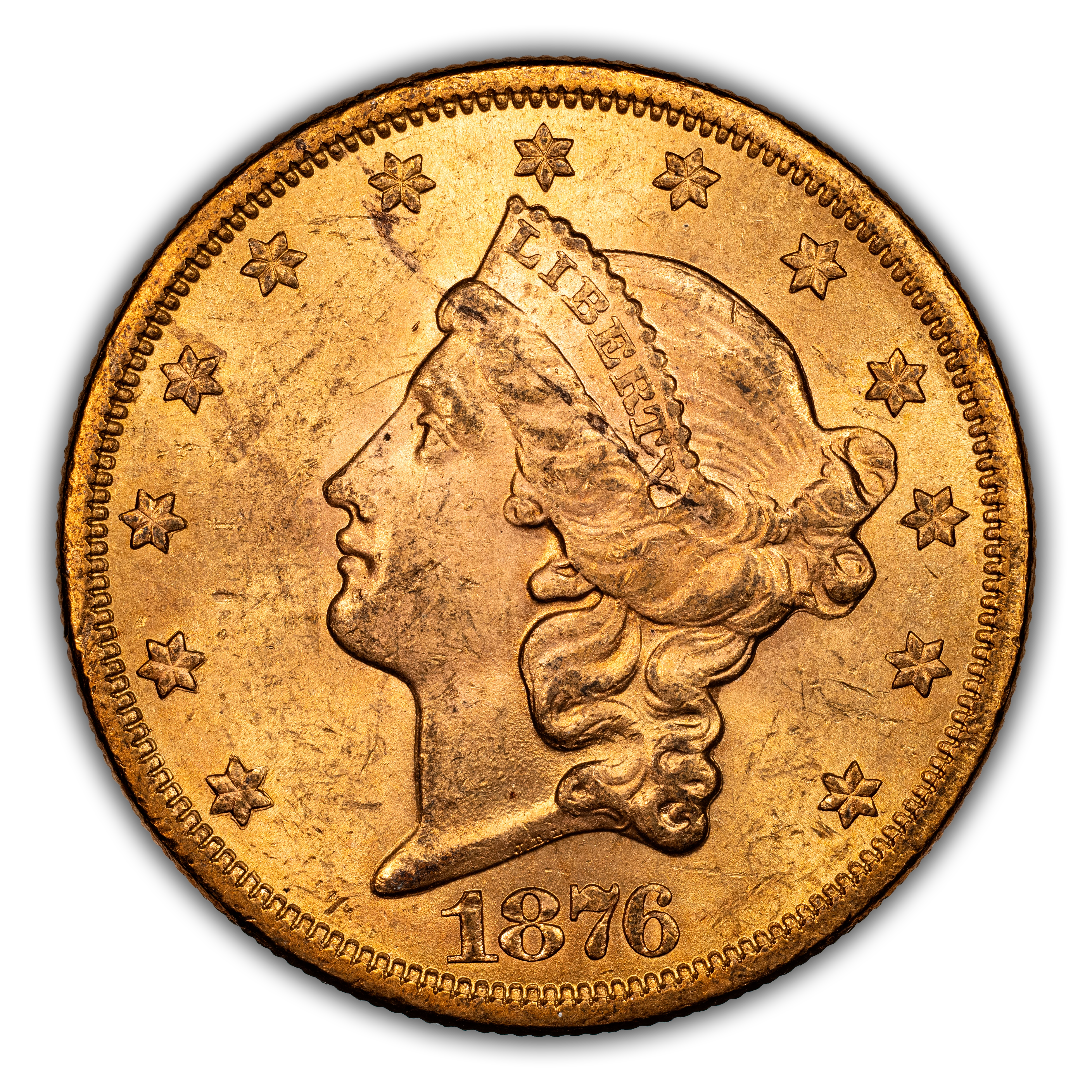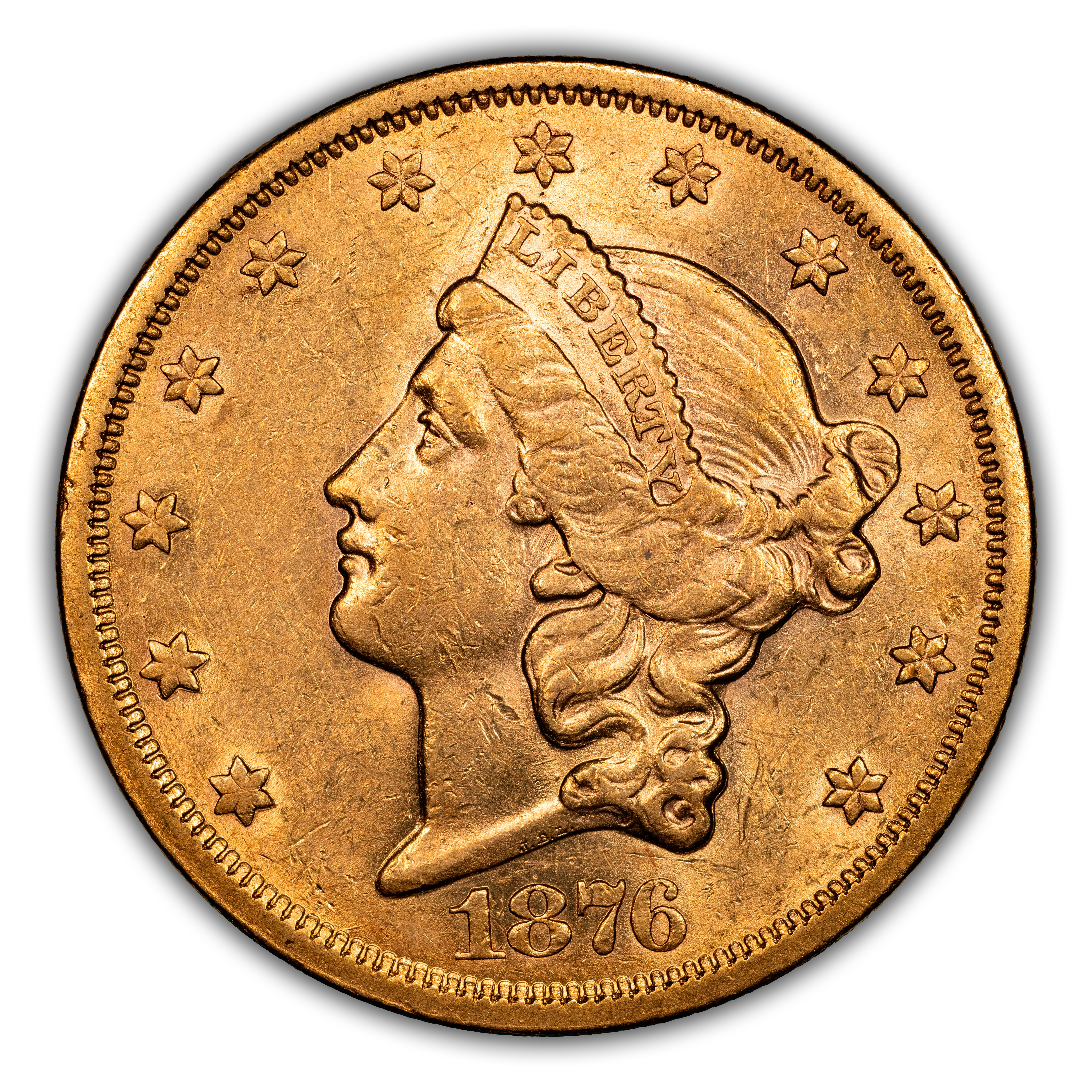 Reverse: Shielded eagle with wings outstretched holding arrows and olive branches. The words UNITED STATES OF AMERICA * TWENTY D. appear around the periphery. Mint mark, if any, appears below the eagle's tail, above the N in TWENTY.