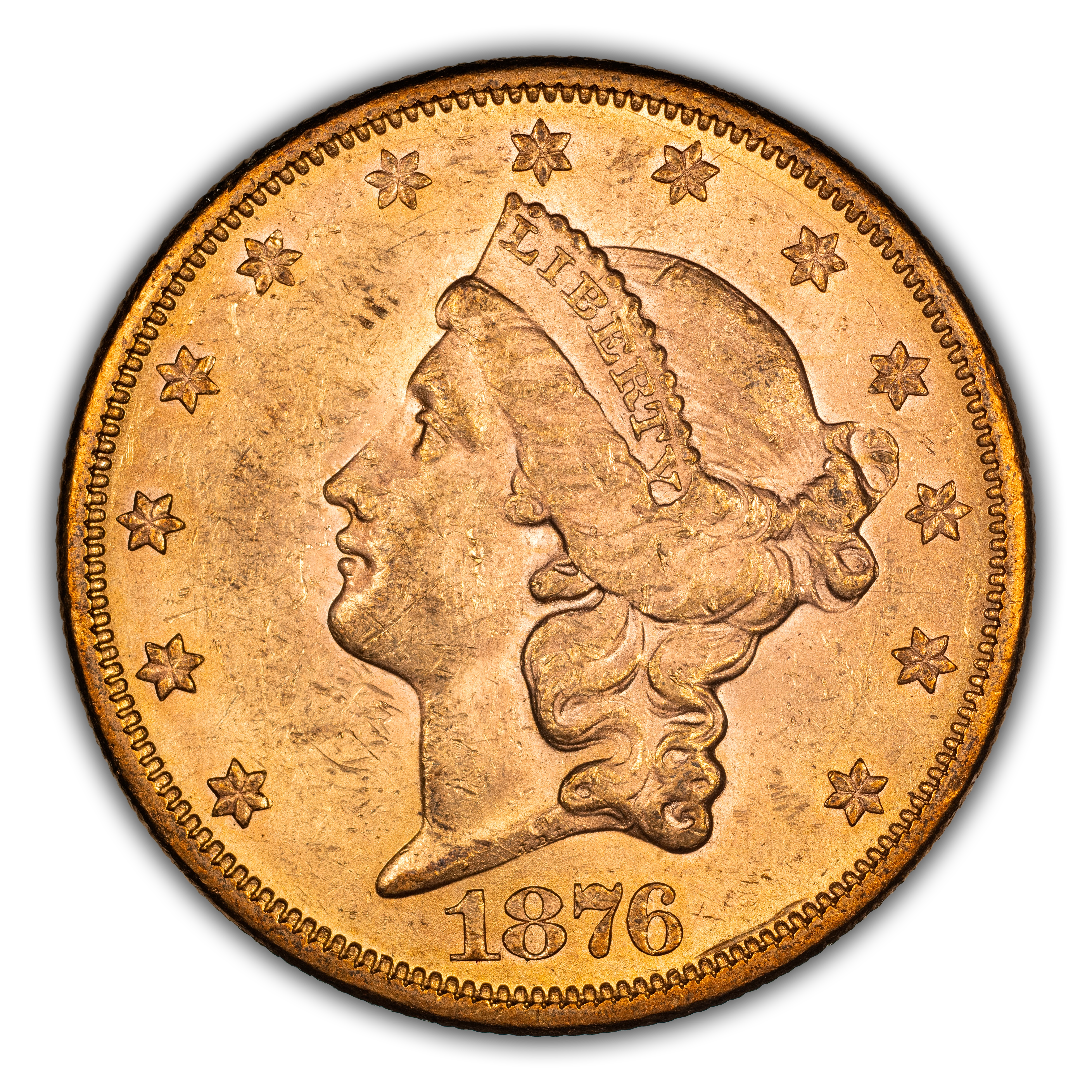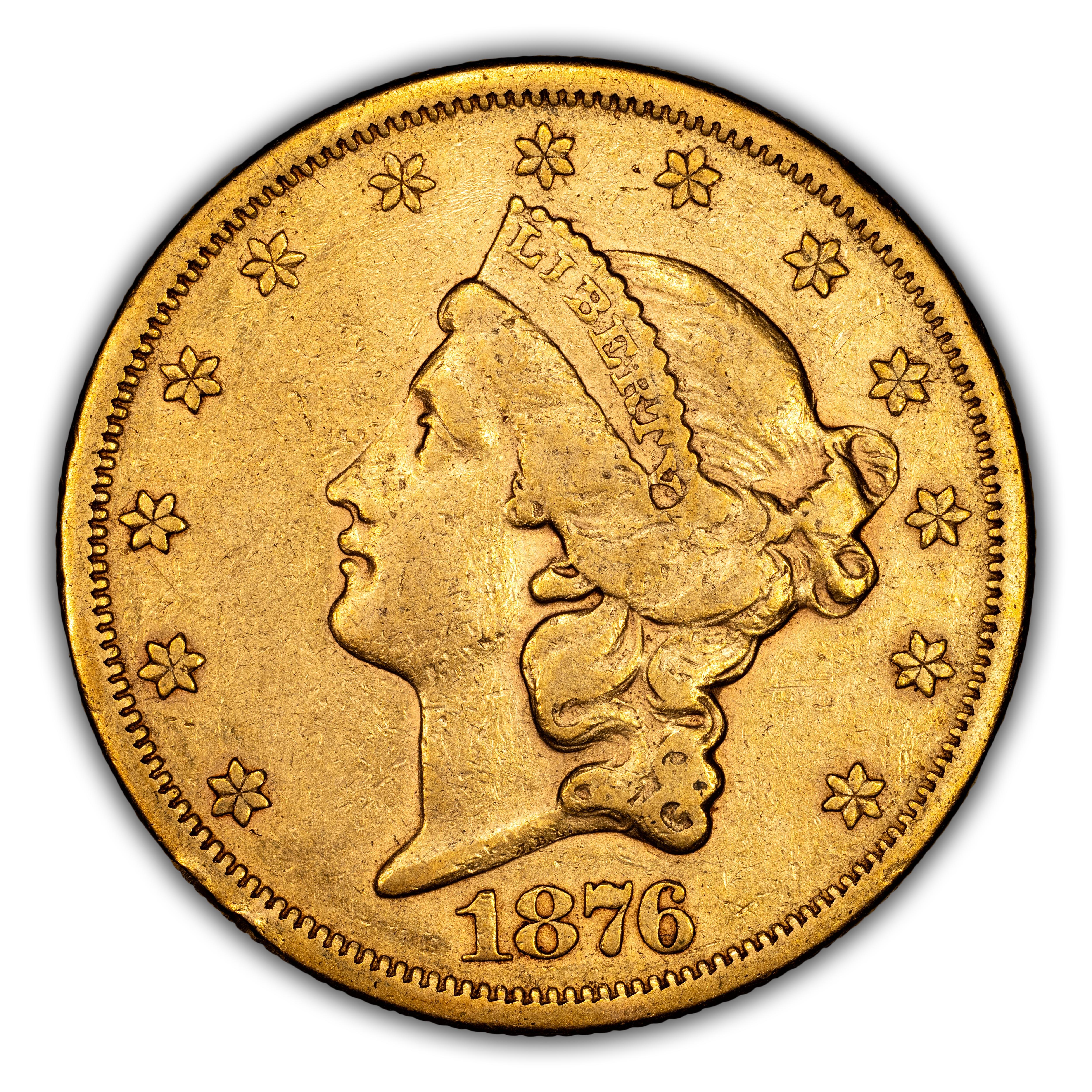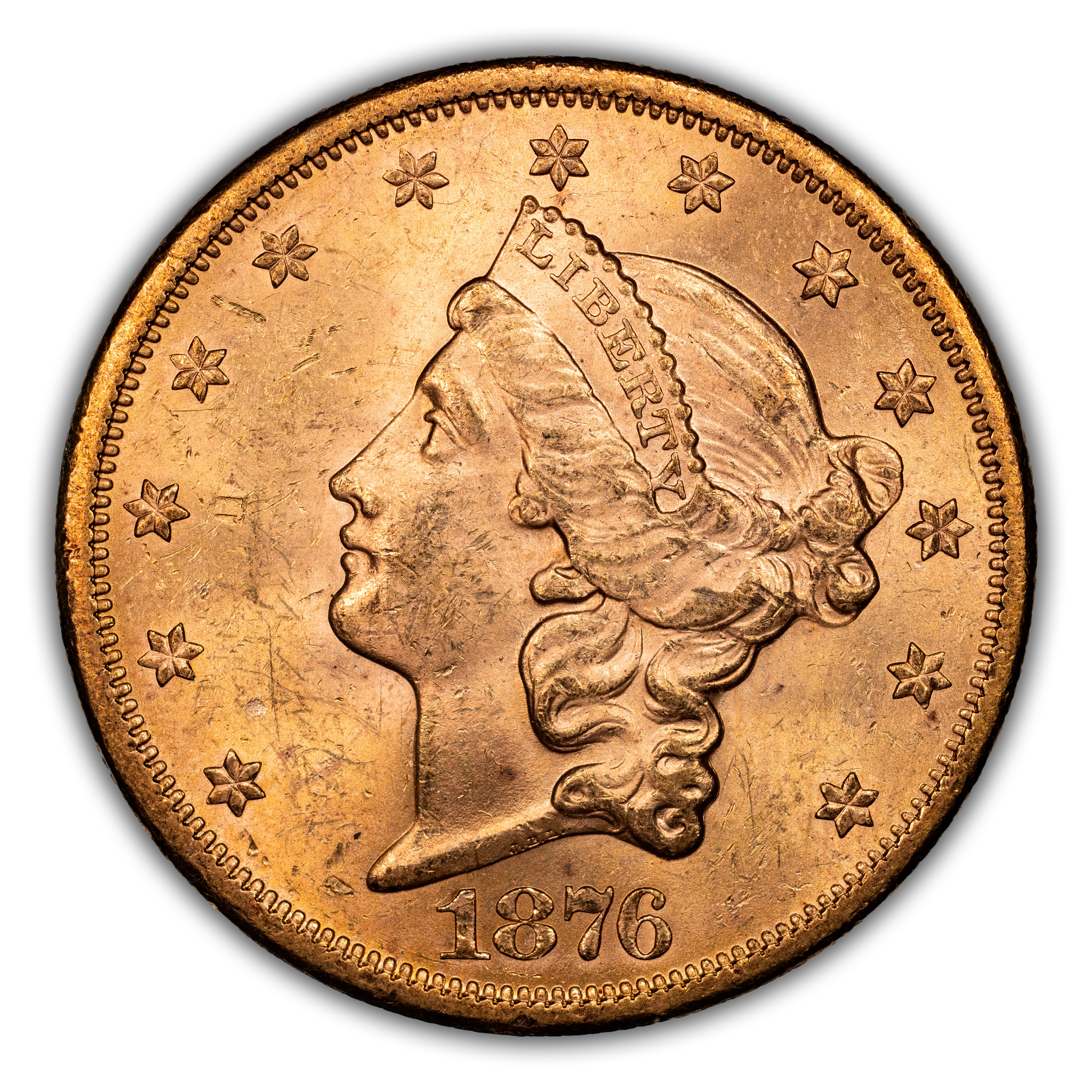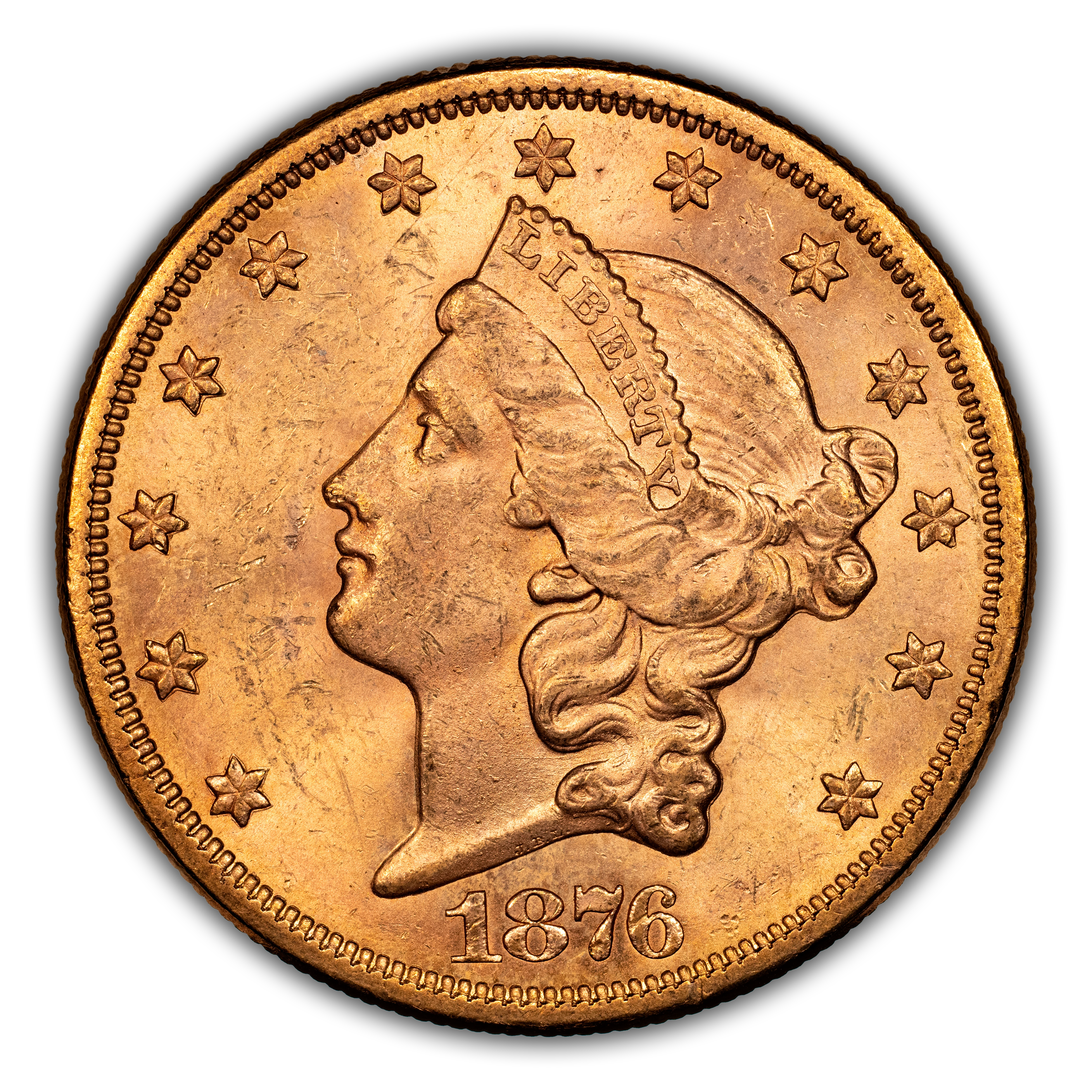 Reverse: Shielded eagle with wings outstretched holding arrows and olive branches. The words UNITED STATES OF AMERICA * TWENTY D. appear around the periphery. Mint mark, if any, appears below the eagle's tail, above the N in TWENTY.