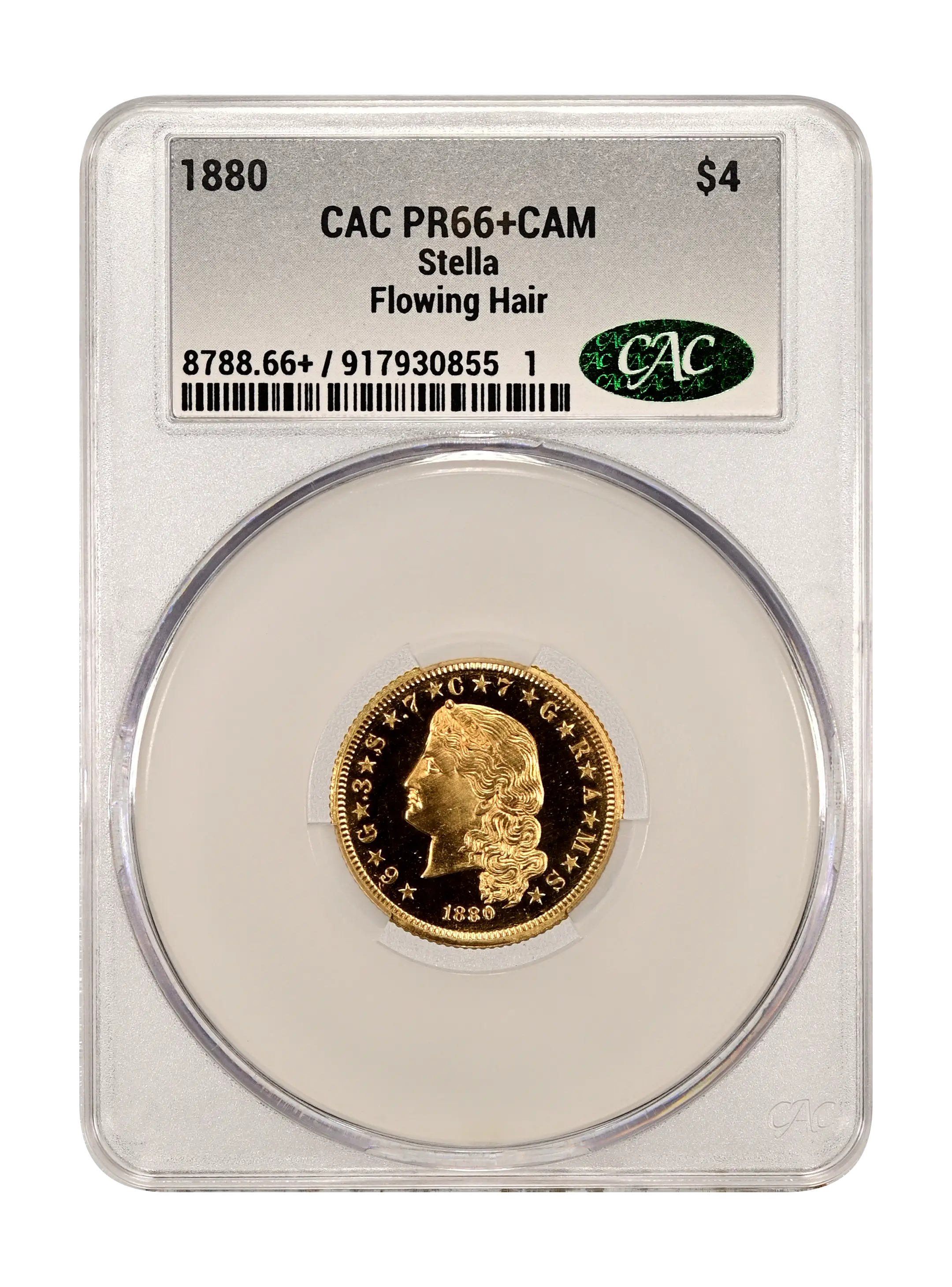 1880 Stella $4 Flowing Hair CAM (Proof) CAC PR66+CAM