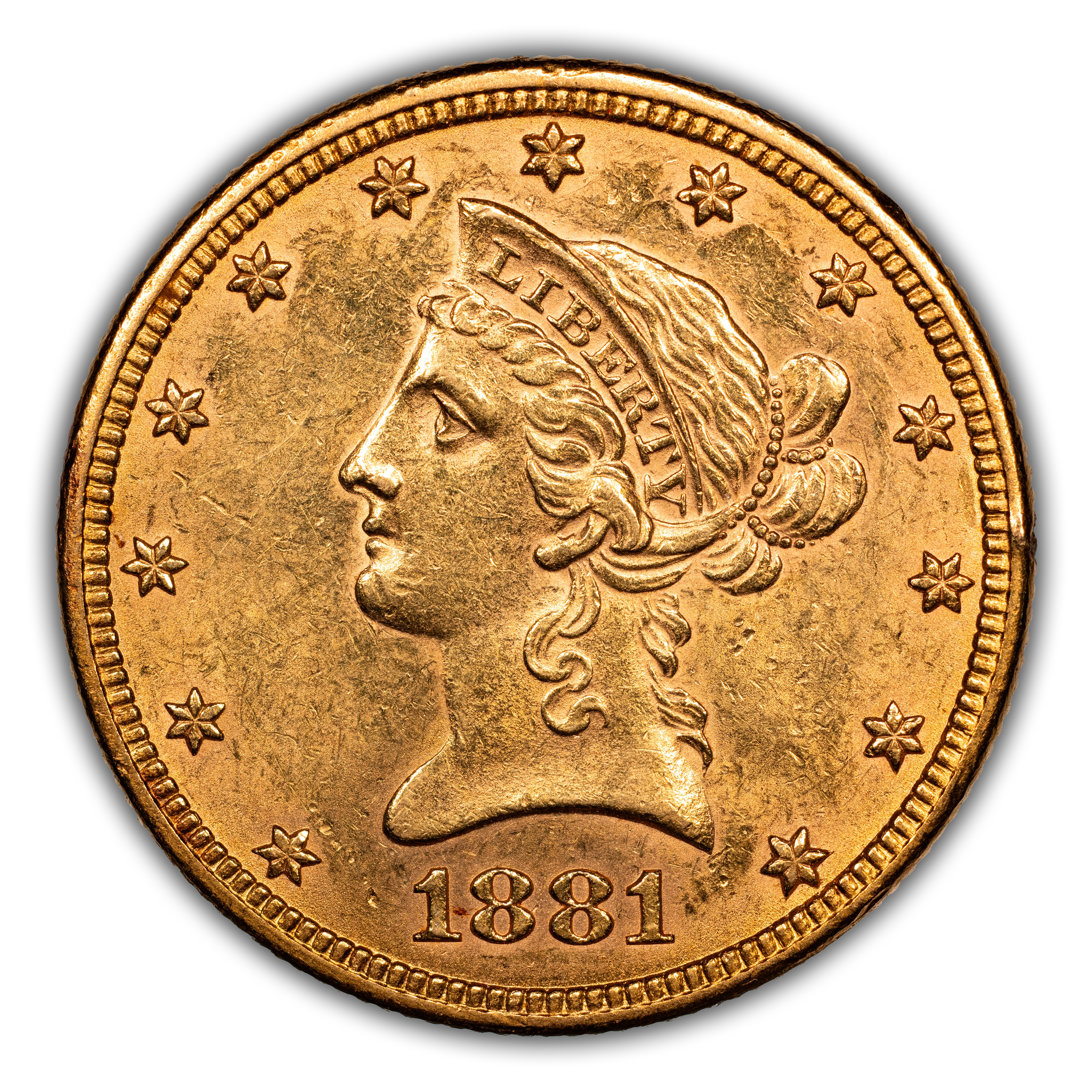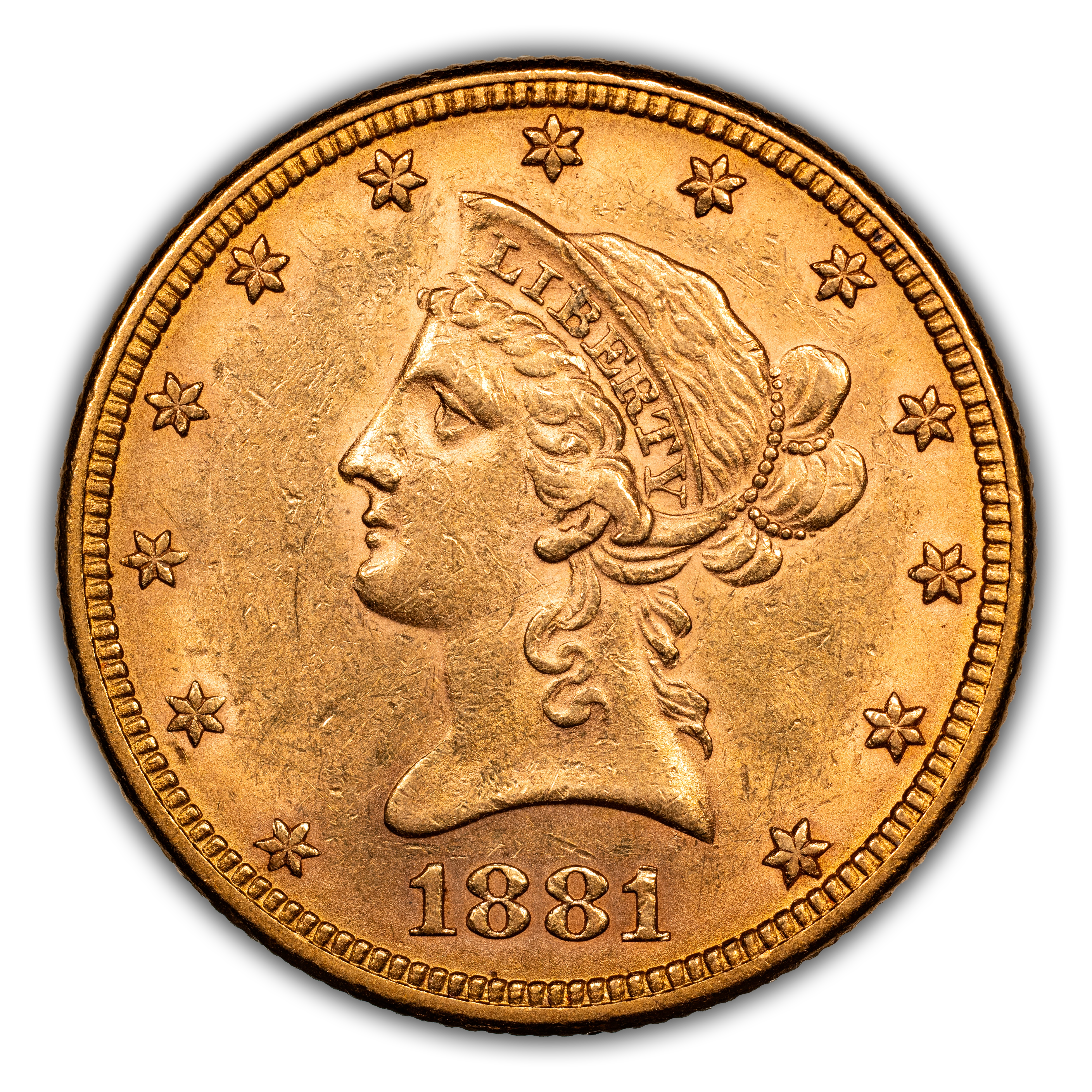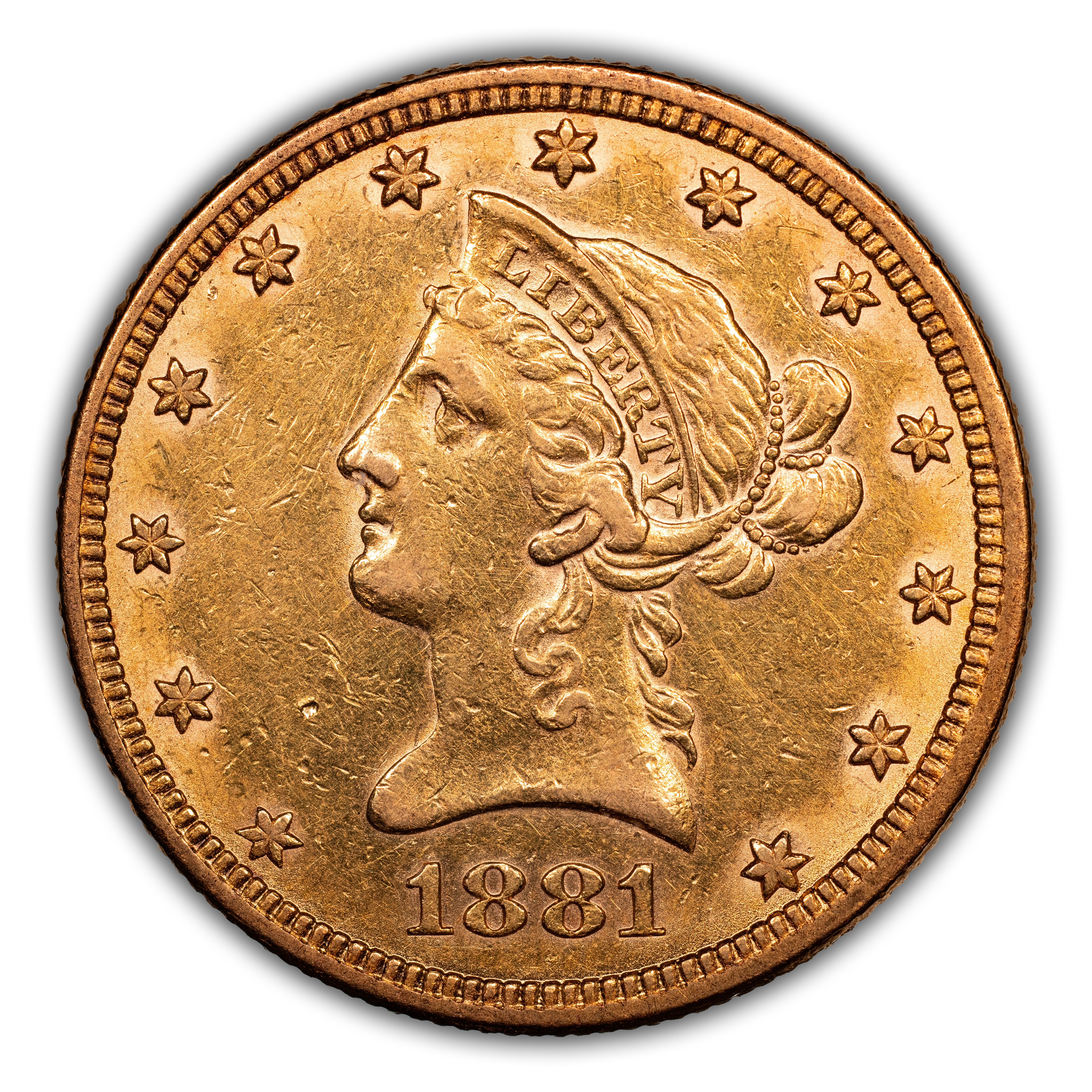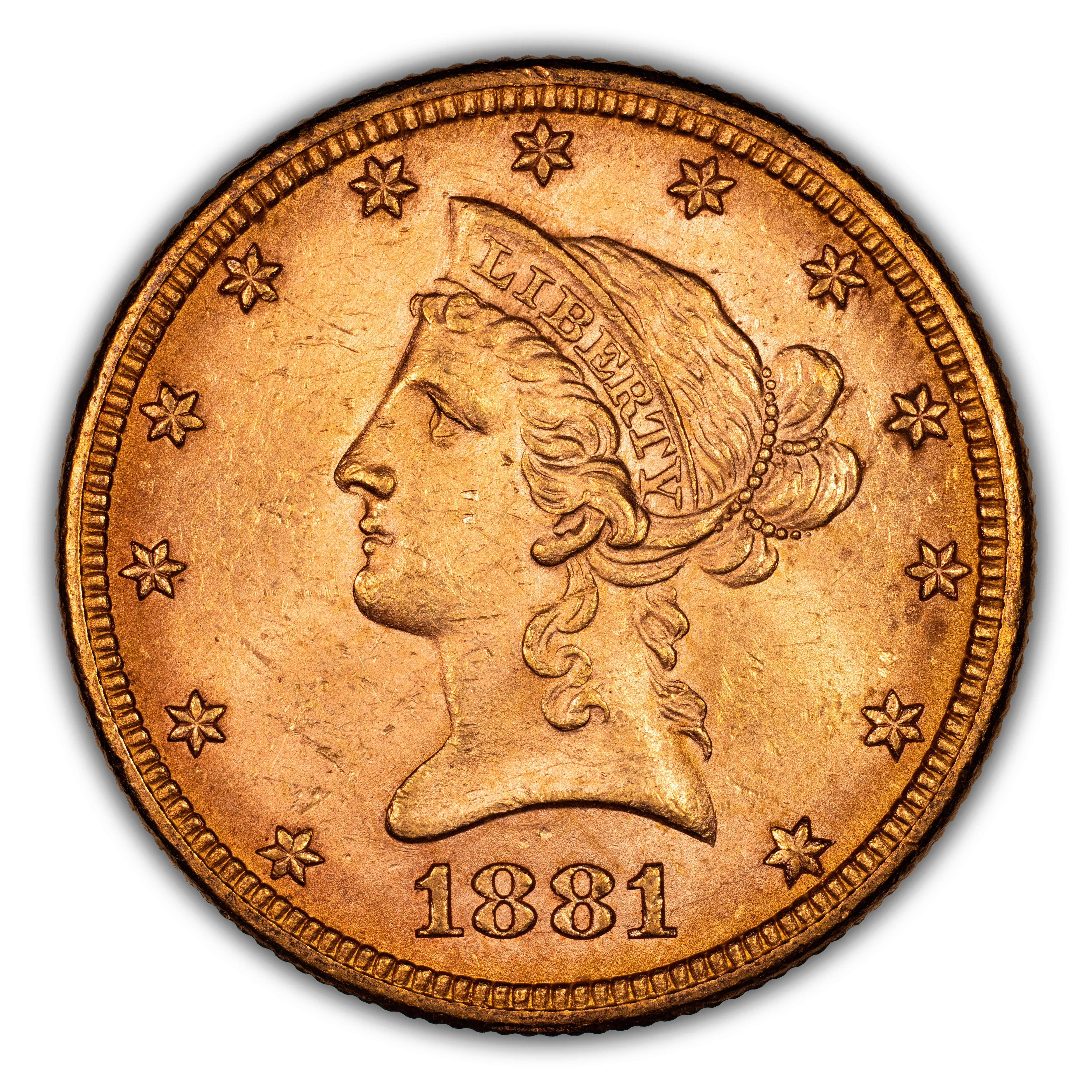 Reverse: Heraldic eagle holding arrows and branch in its claws is centered in the design with the words UNITED STATES OF AMERICA * TEN D. around the periphery.