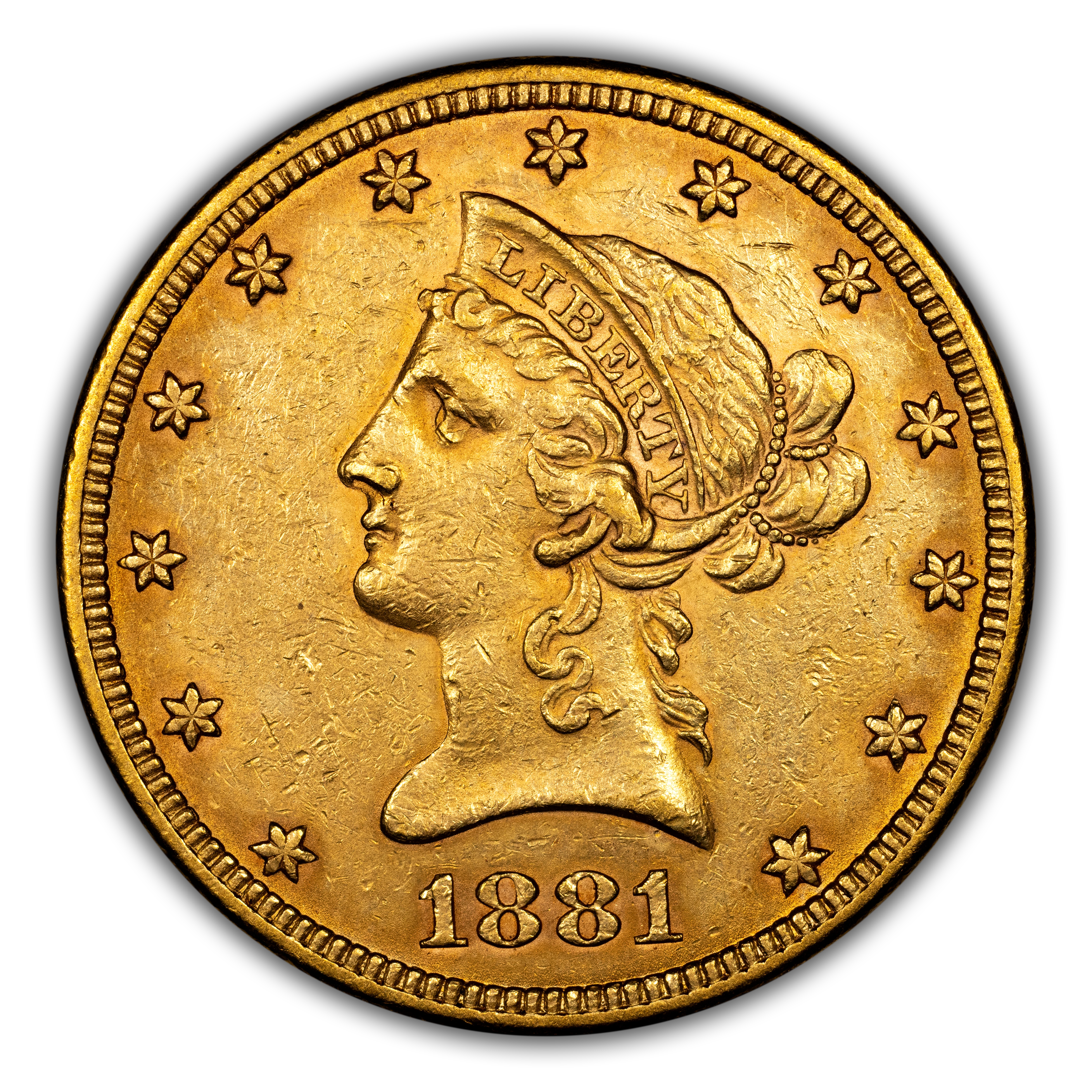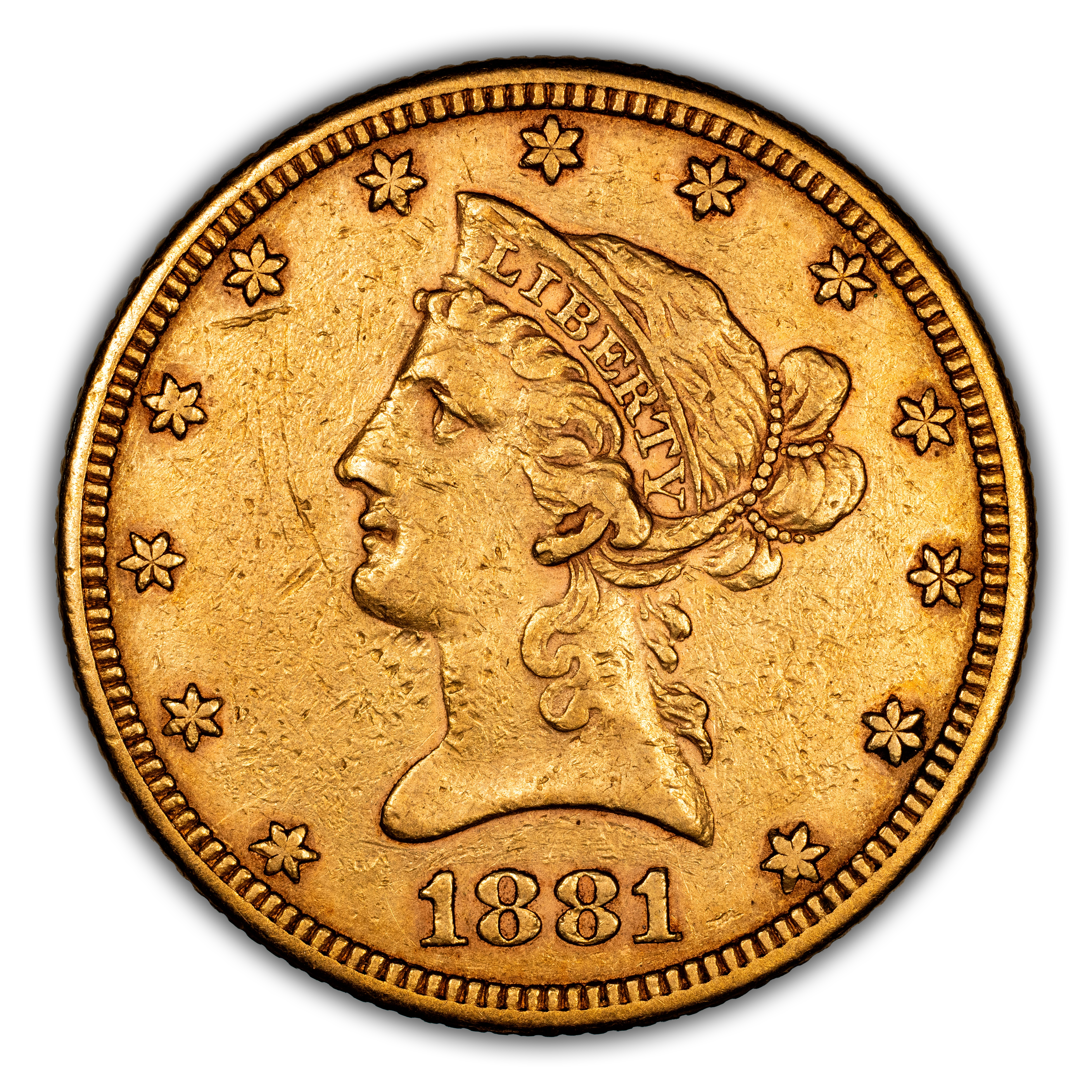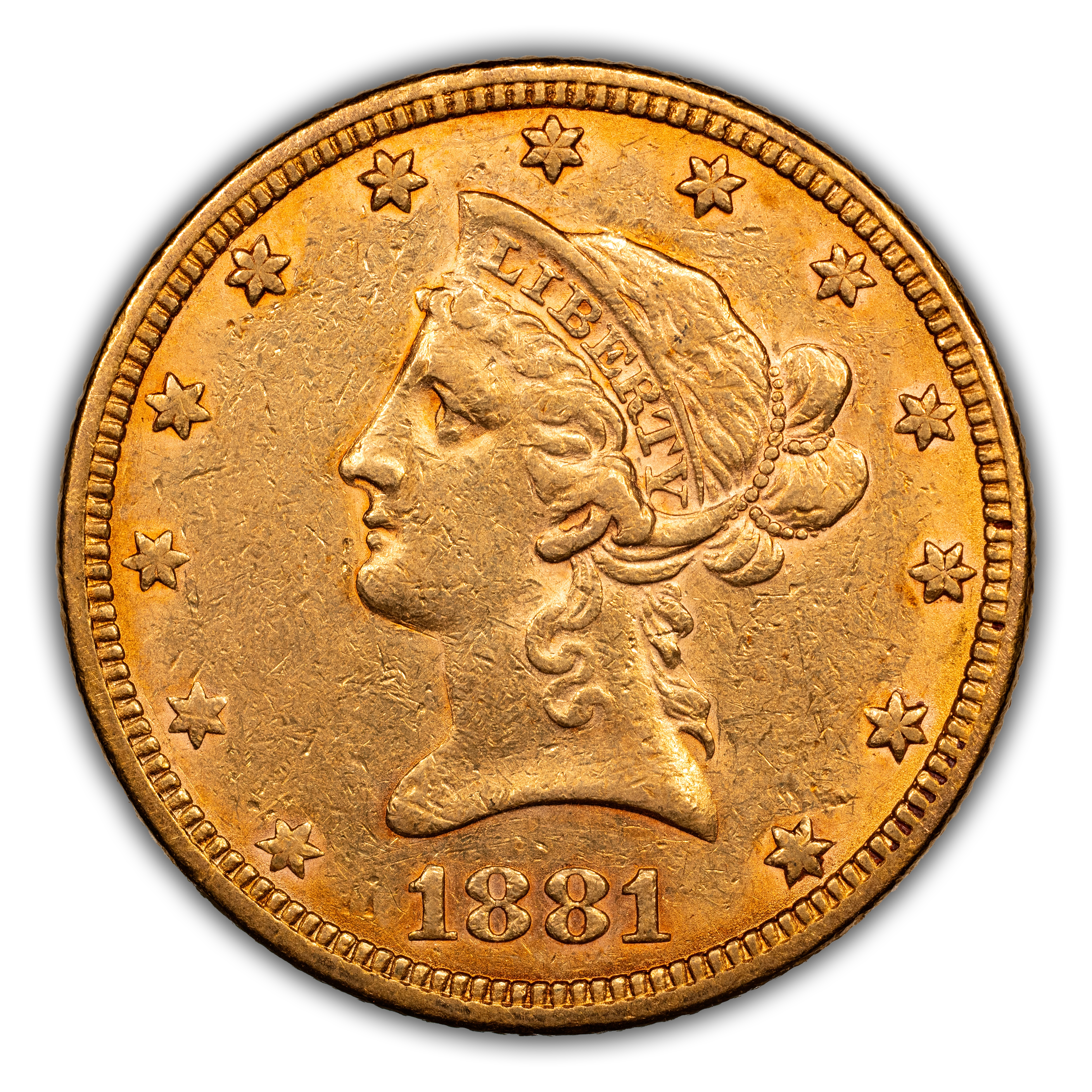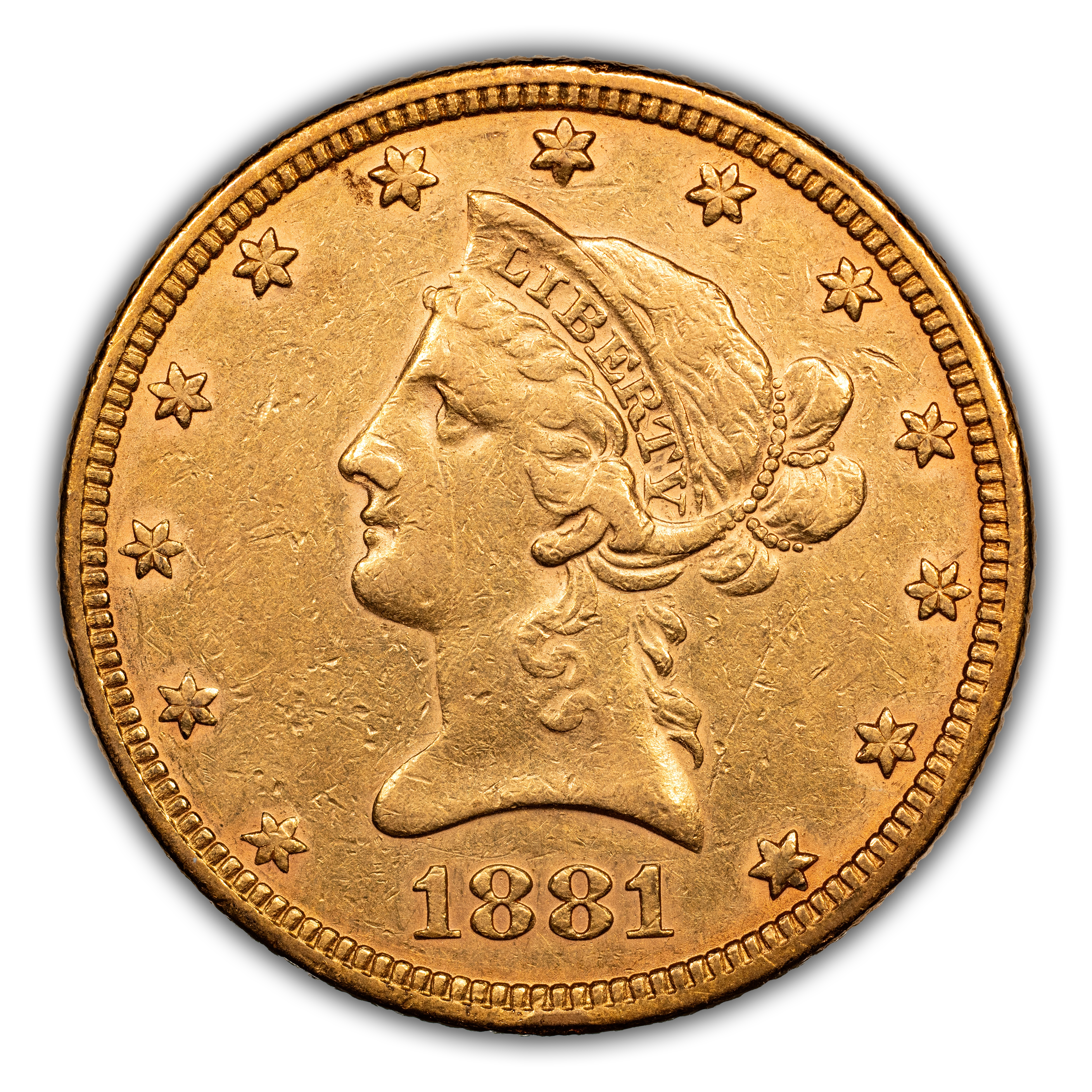Reverse: Heraldic eagle holding arrows and branch in its claws is centered in the design with the words UNITED STATES OF AMERICA * TEN D. around the periphery.