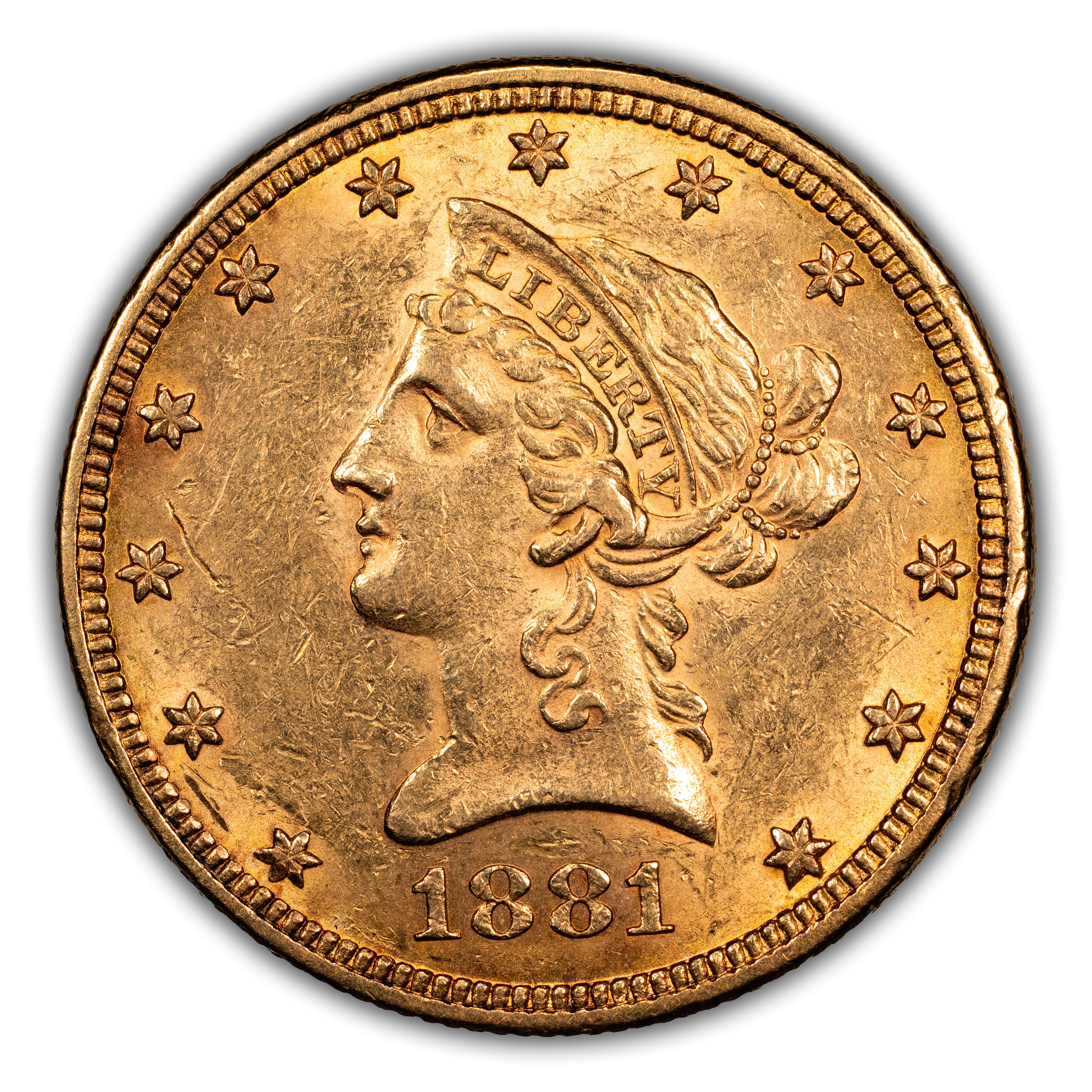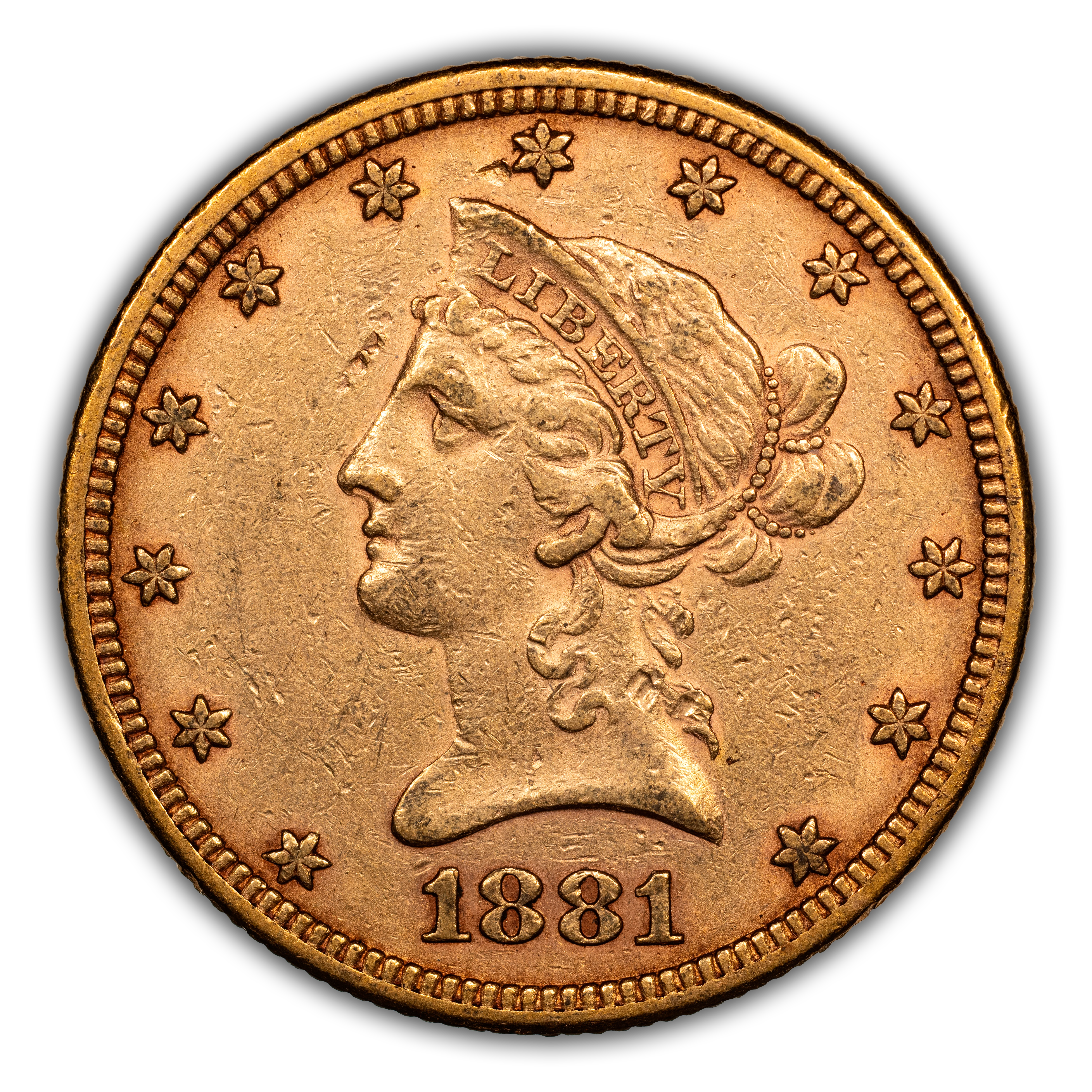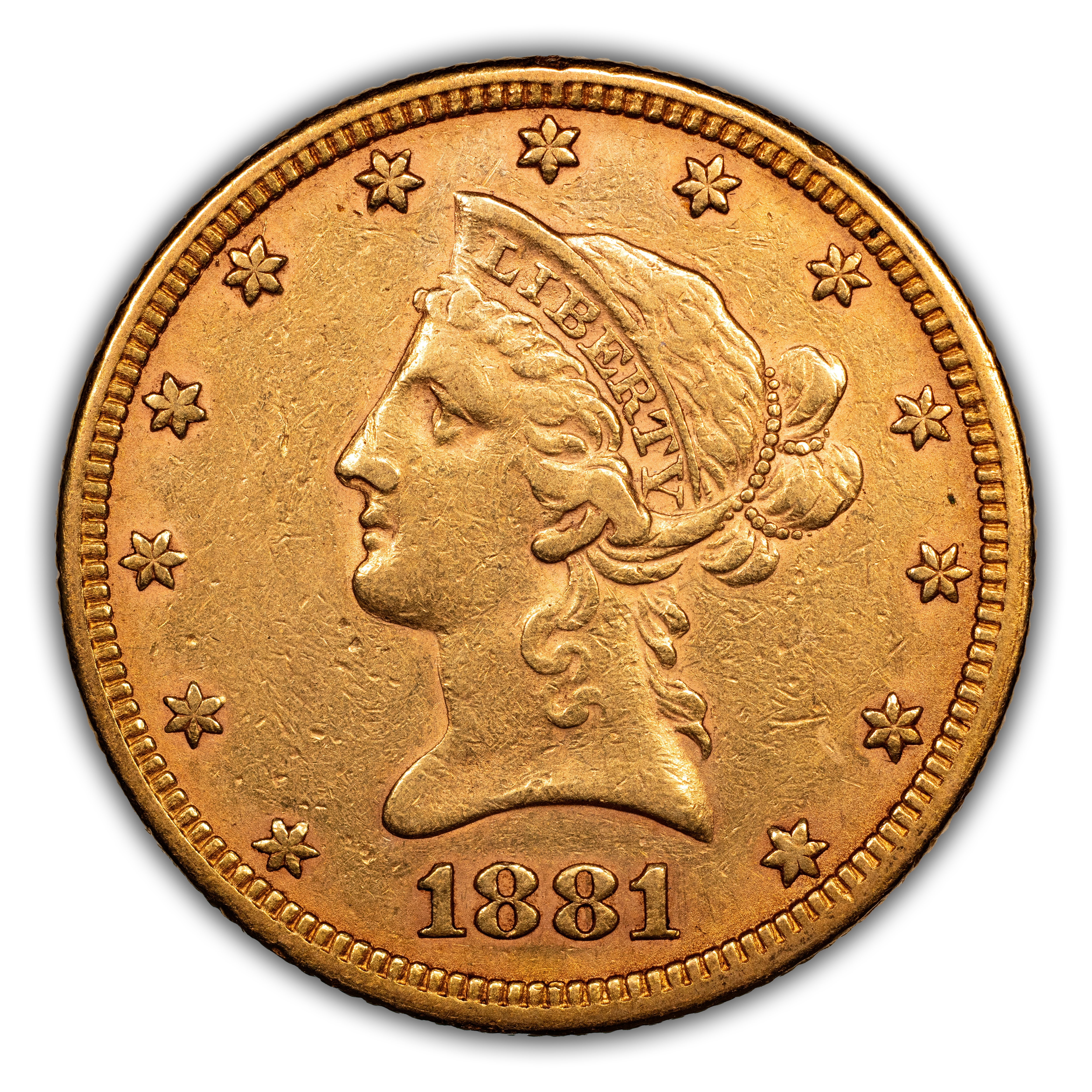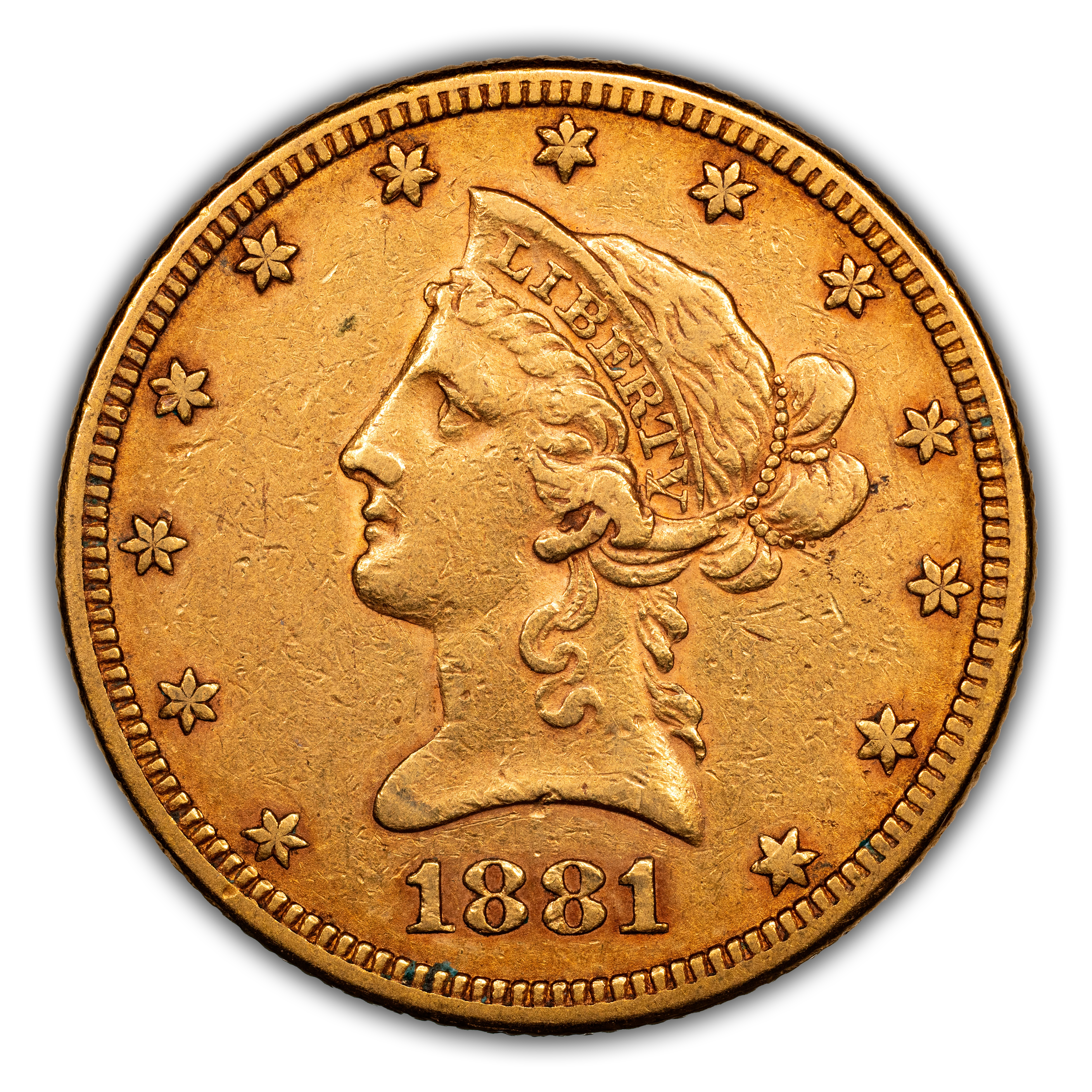 Reverse: Heraldic eagle holding arrows and branch in its claws is centered in the design with the words UNITED STATES OF AMERICA * TEN D. around the periphery.