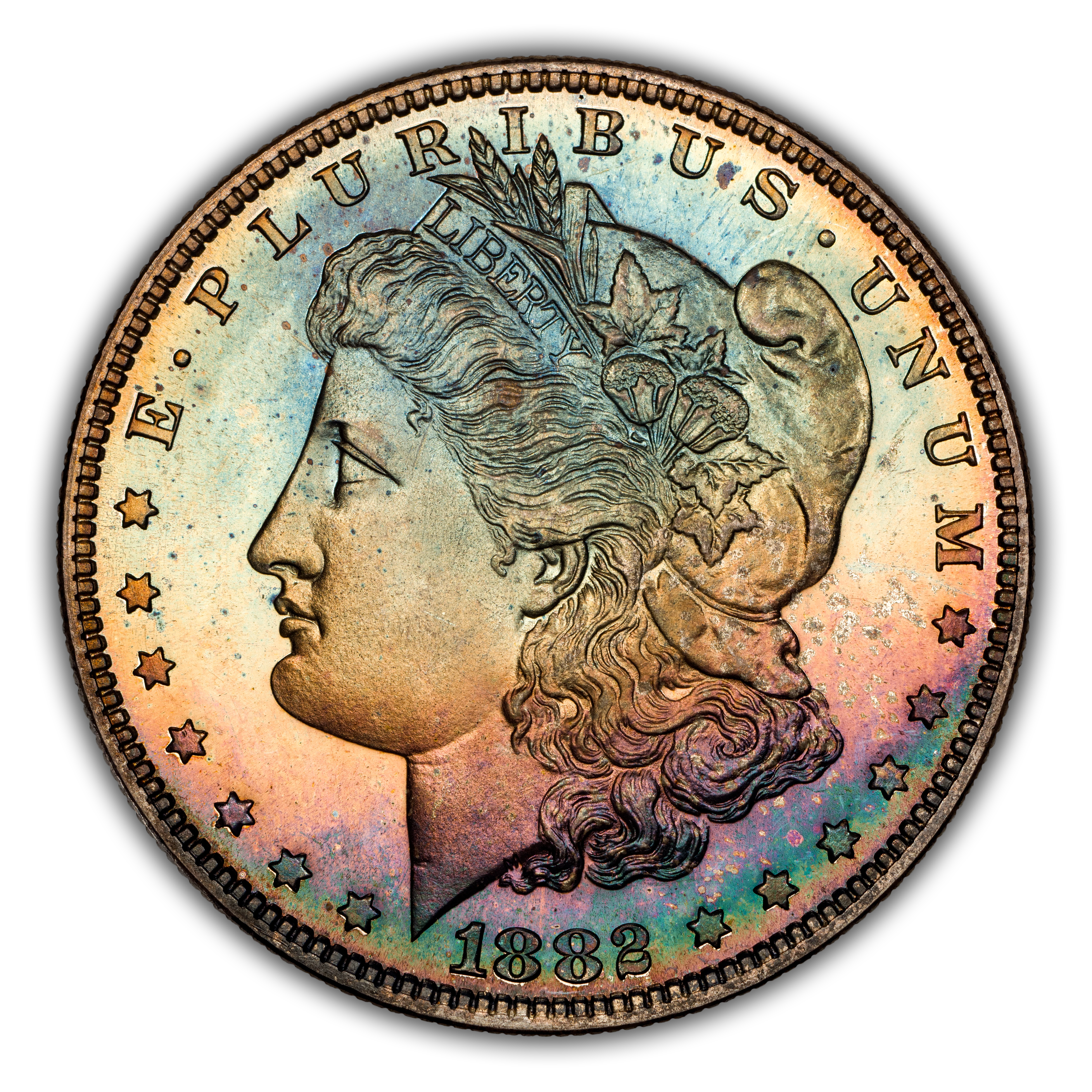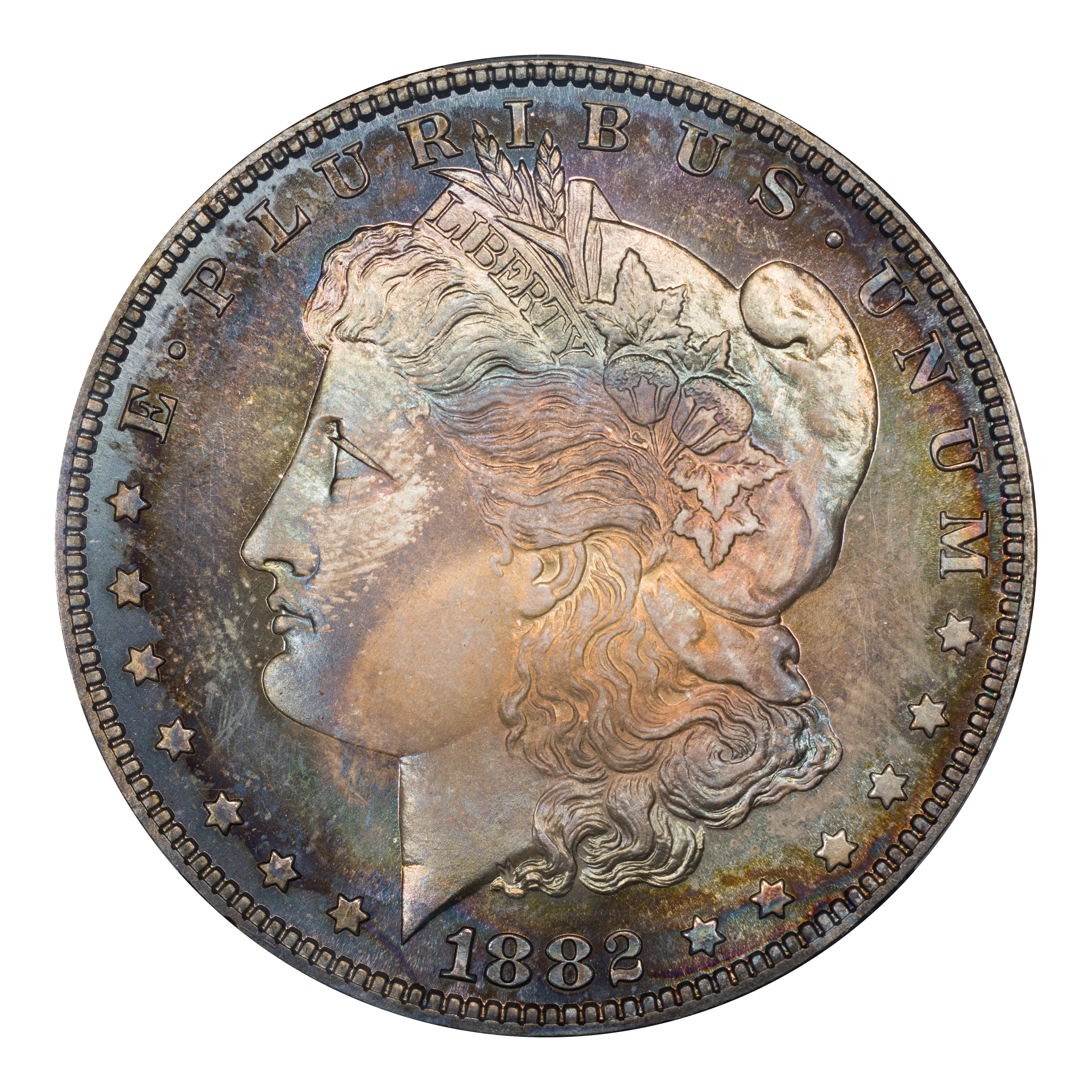 Proof 1882 Morgan dollars are beautiful coins, most of which are very well struck and show some degree of cameo contrast. In fact, only a small minority of known survivors do not boast some type of cameo contrast, with most designated as cameos and many boasting deep cameo contrast. While most 1882 proofs are found with nice surfaces and good overall eye appeal, only a small share are known in PR65 or higher; most are known in PR60-64.