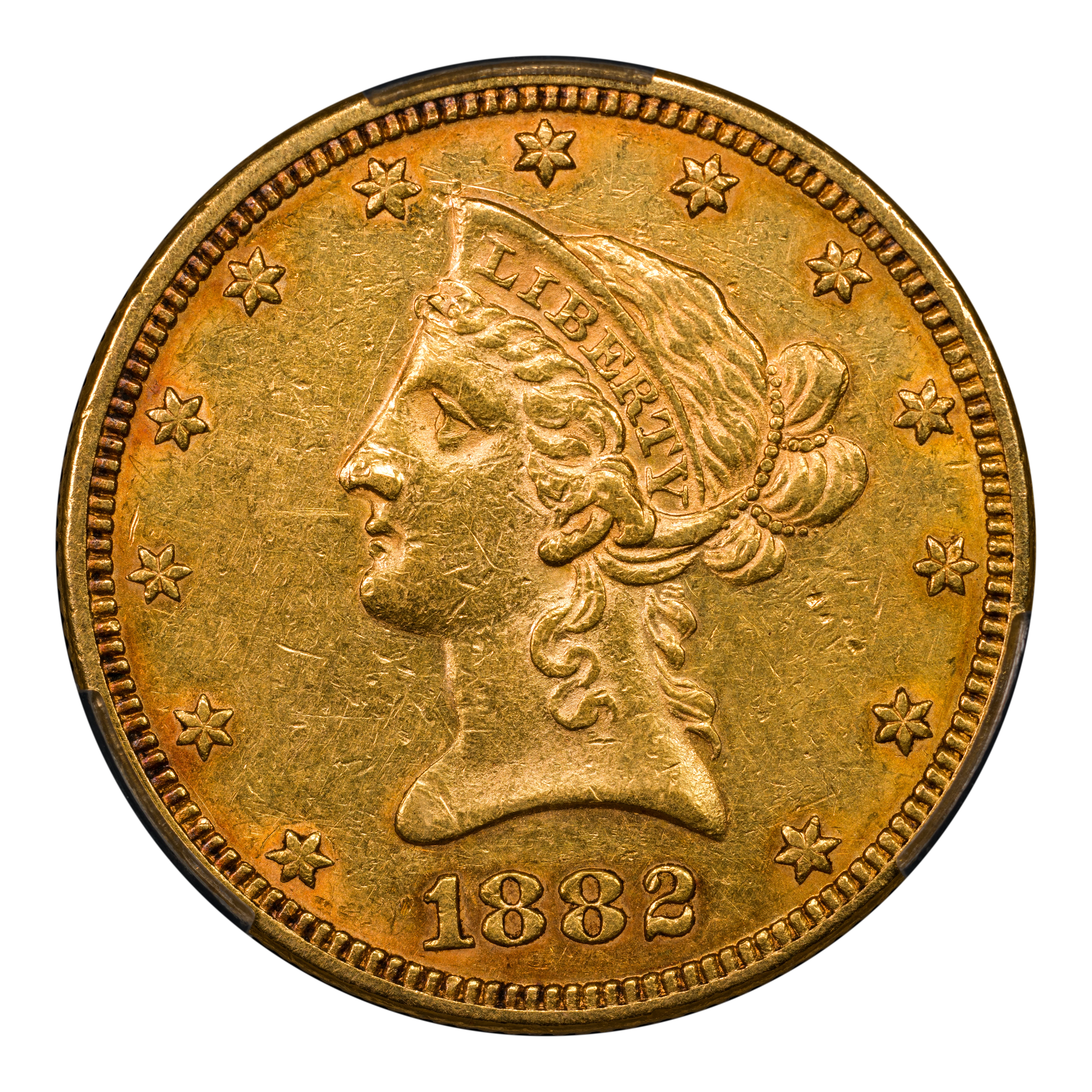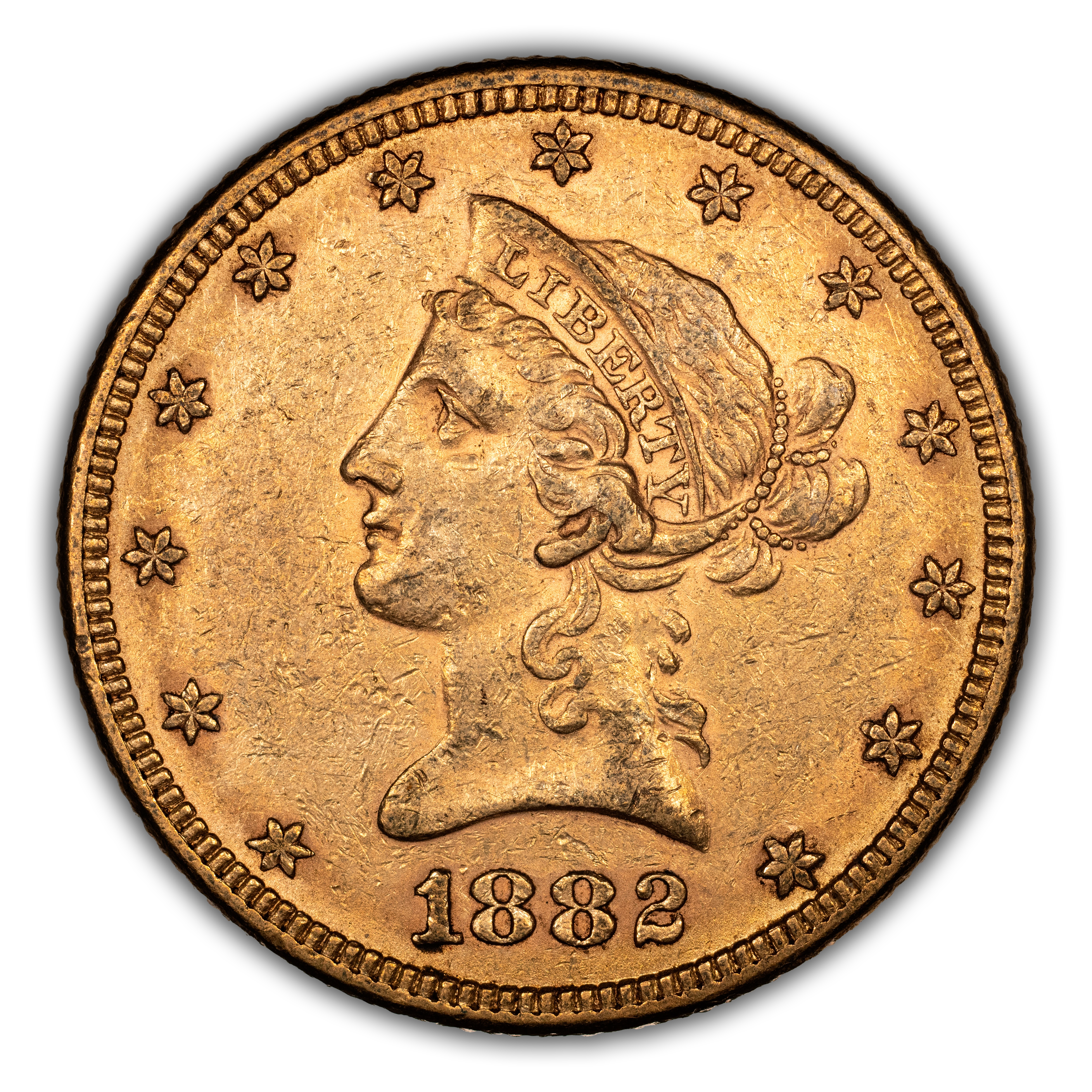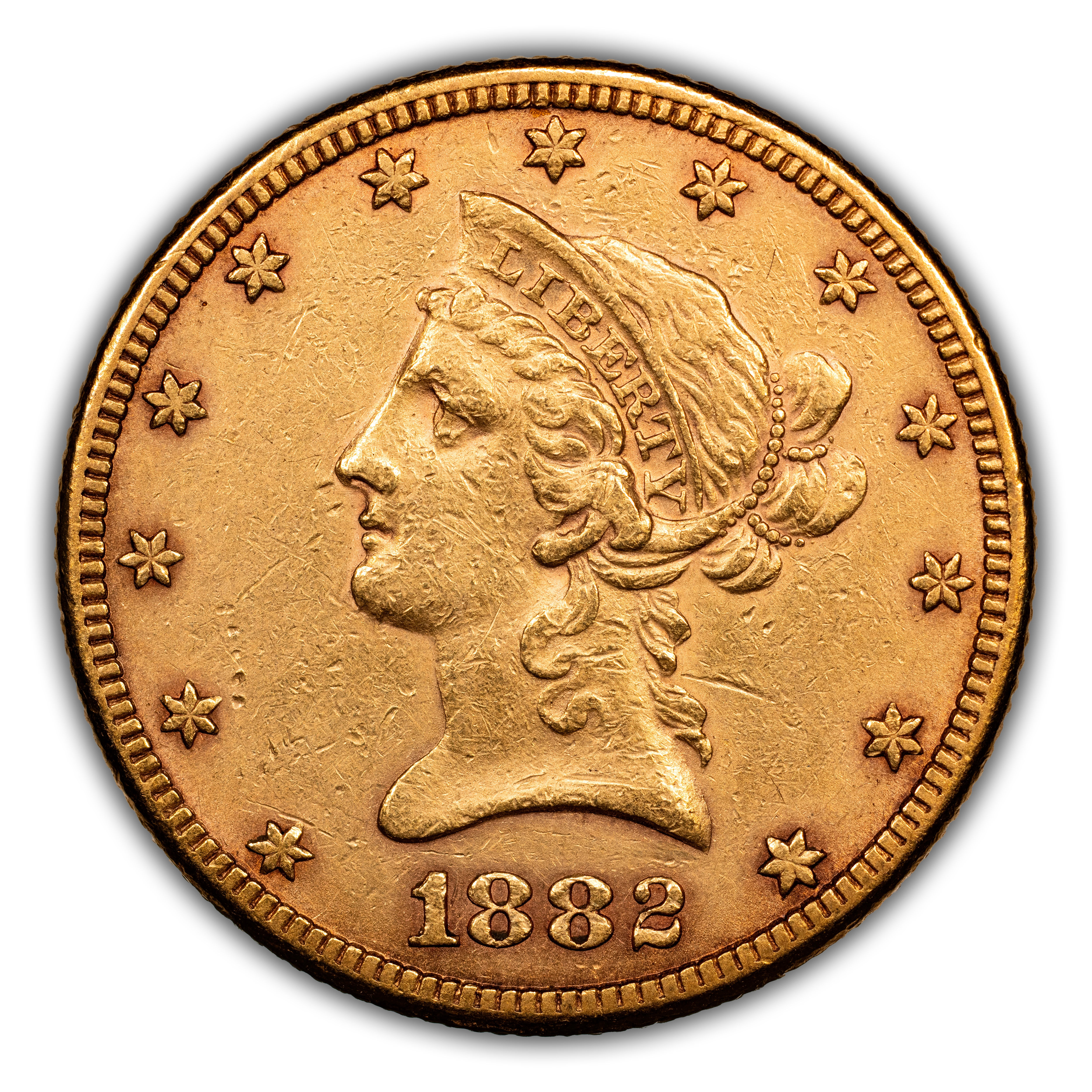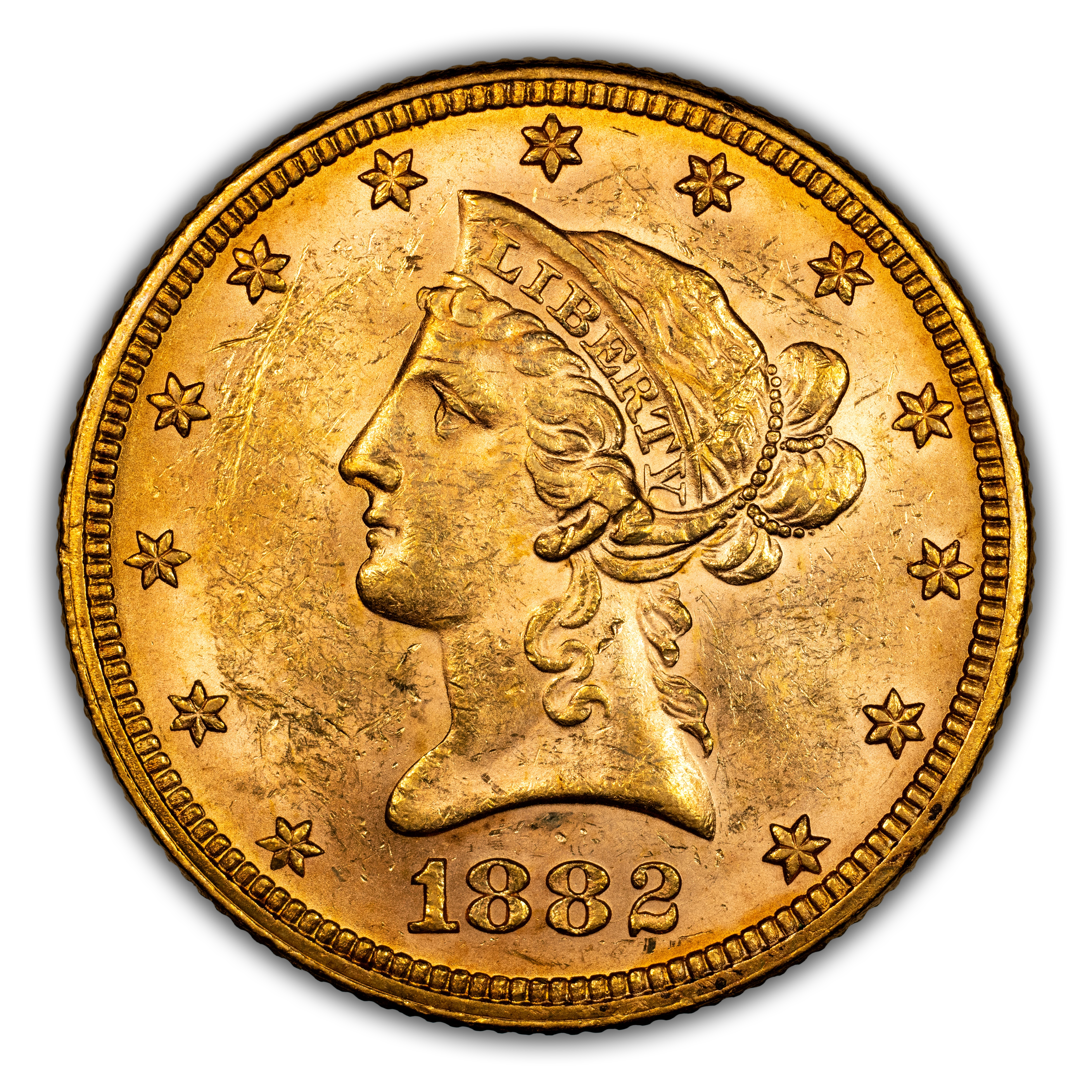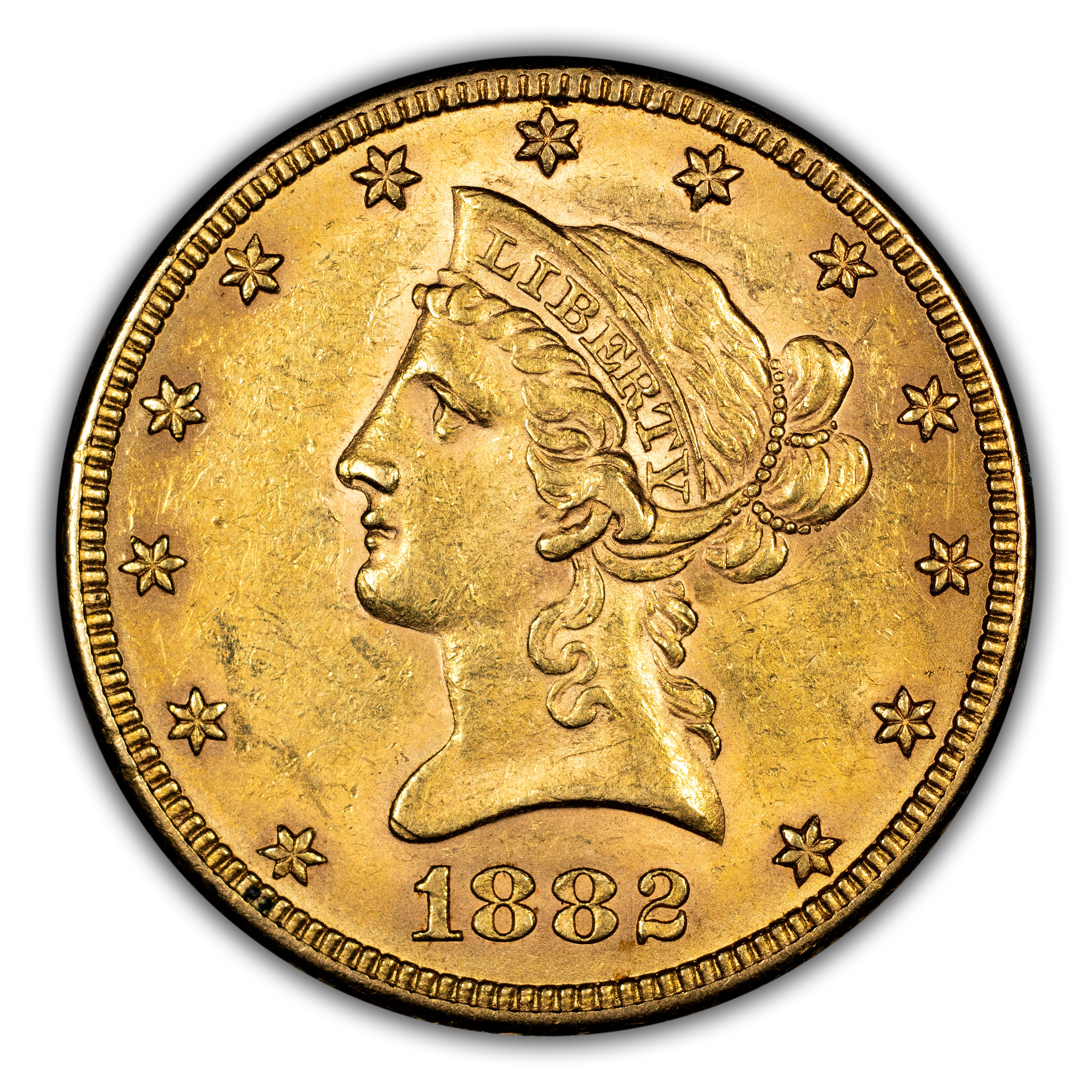 Reverse: Heraldic eagle holding arrows and branch in its claws is centered in the design with the words UNITED STATES OF AMERICA * TEN D. around the periphery.