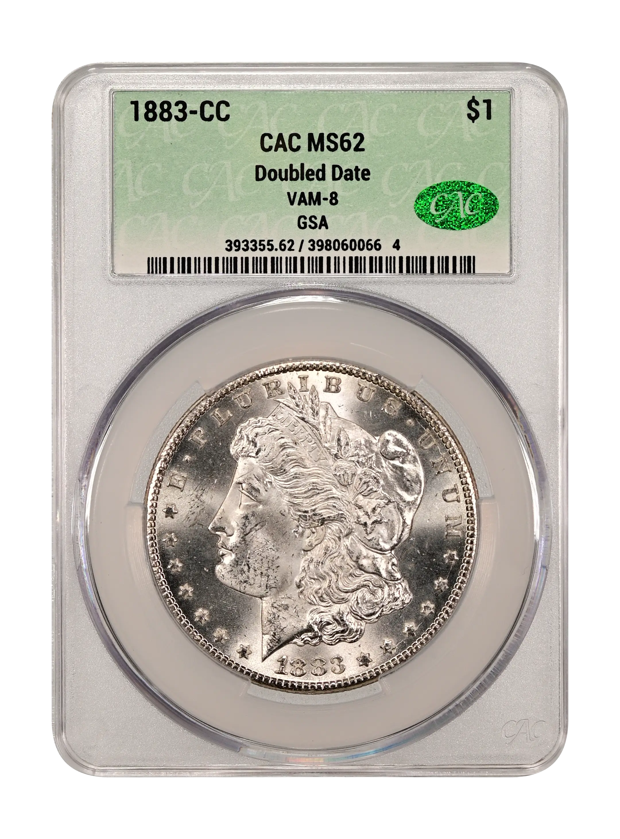 1883-CC Doubled Date $1 VAM-8 CAC MS62