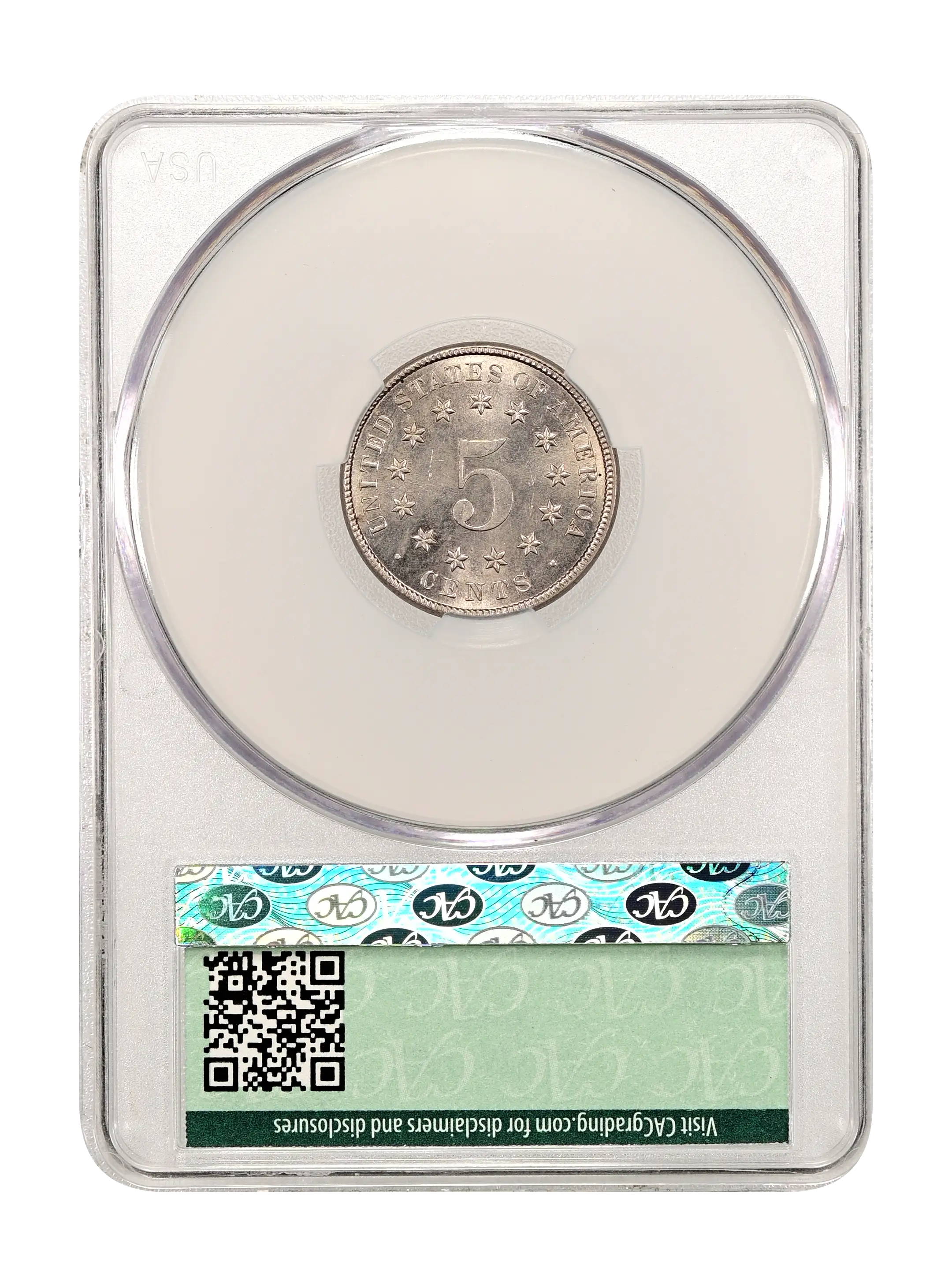 Reverse: A large numeral 5 surrounded by 13 stars centered in the design with UNITED STATES OF AMERICA * CENTS around the periphery.