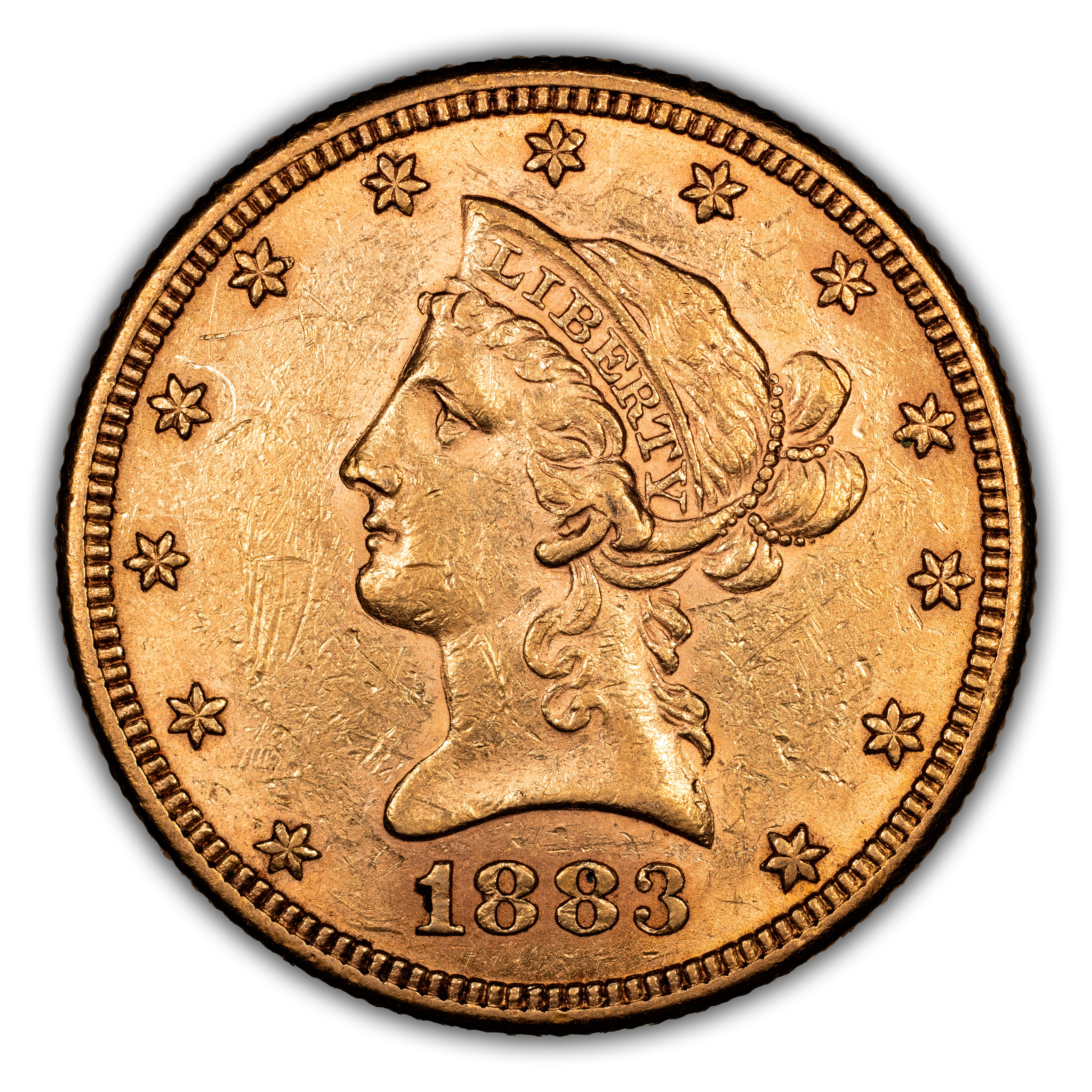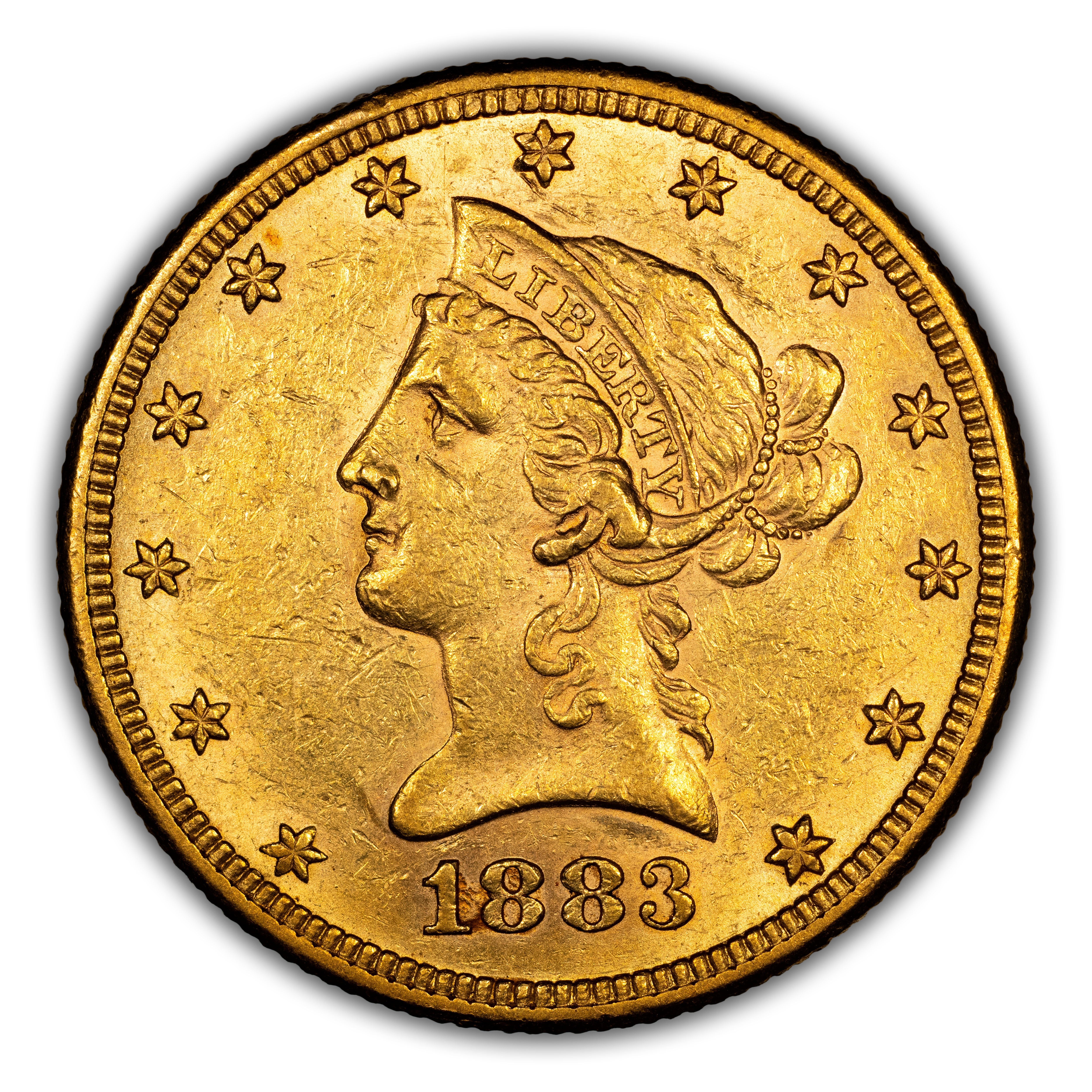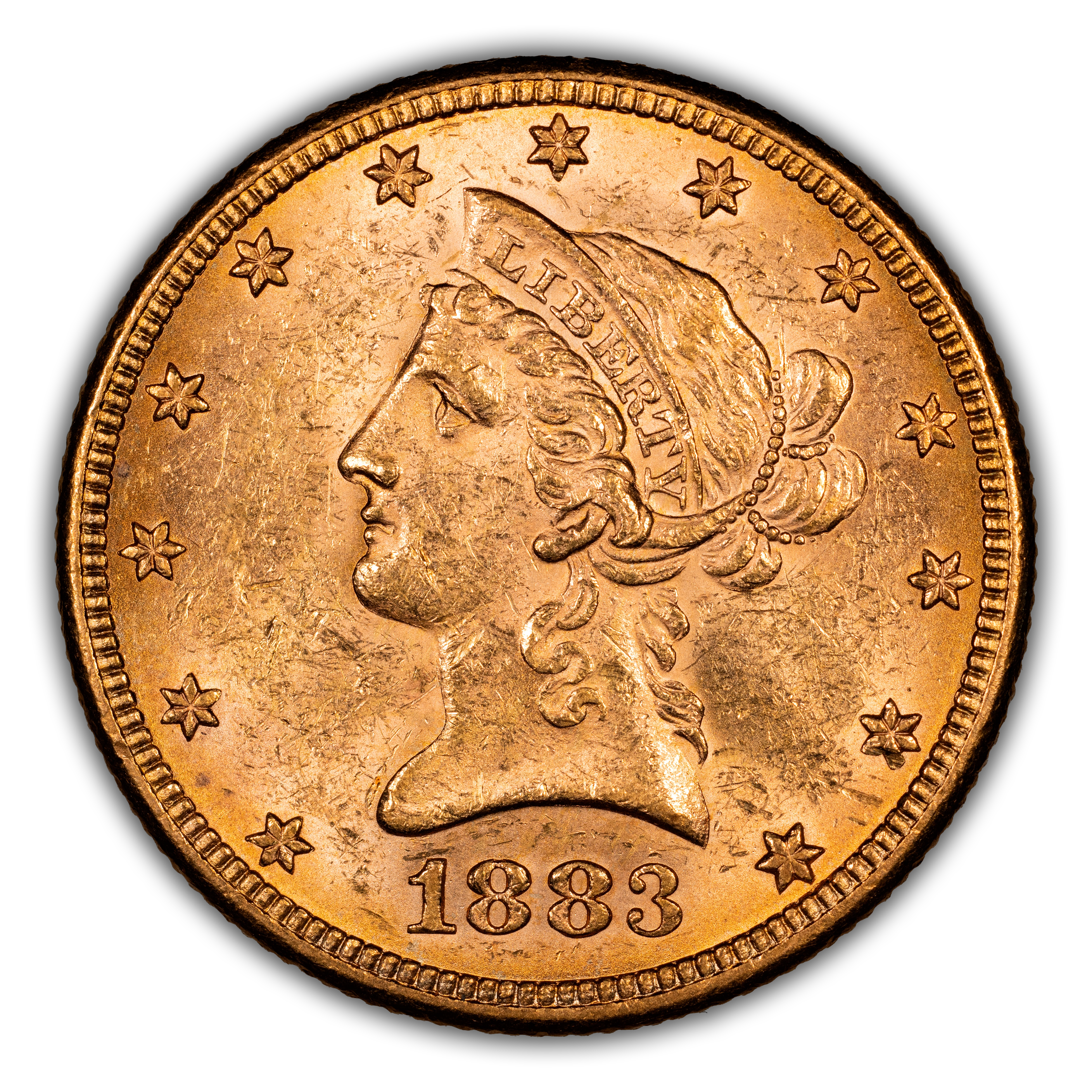 1883 $10 MS63 PCGS. PCGS Population: (125/4). NGC Census: (155/3). CDN: $800 Whsle. Bid for problem-free NGC/PCGS MS63. Min...
