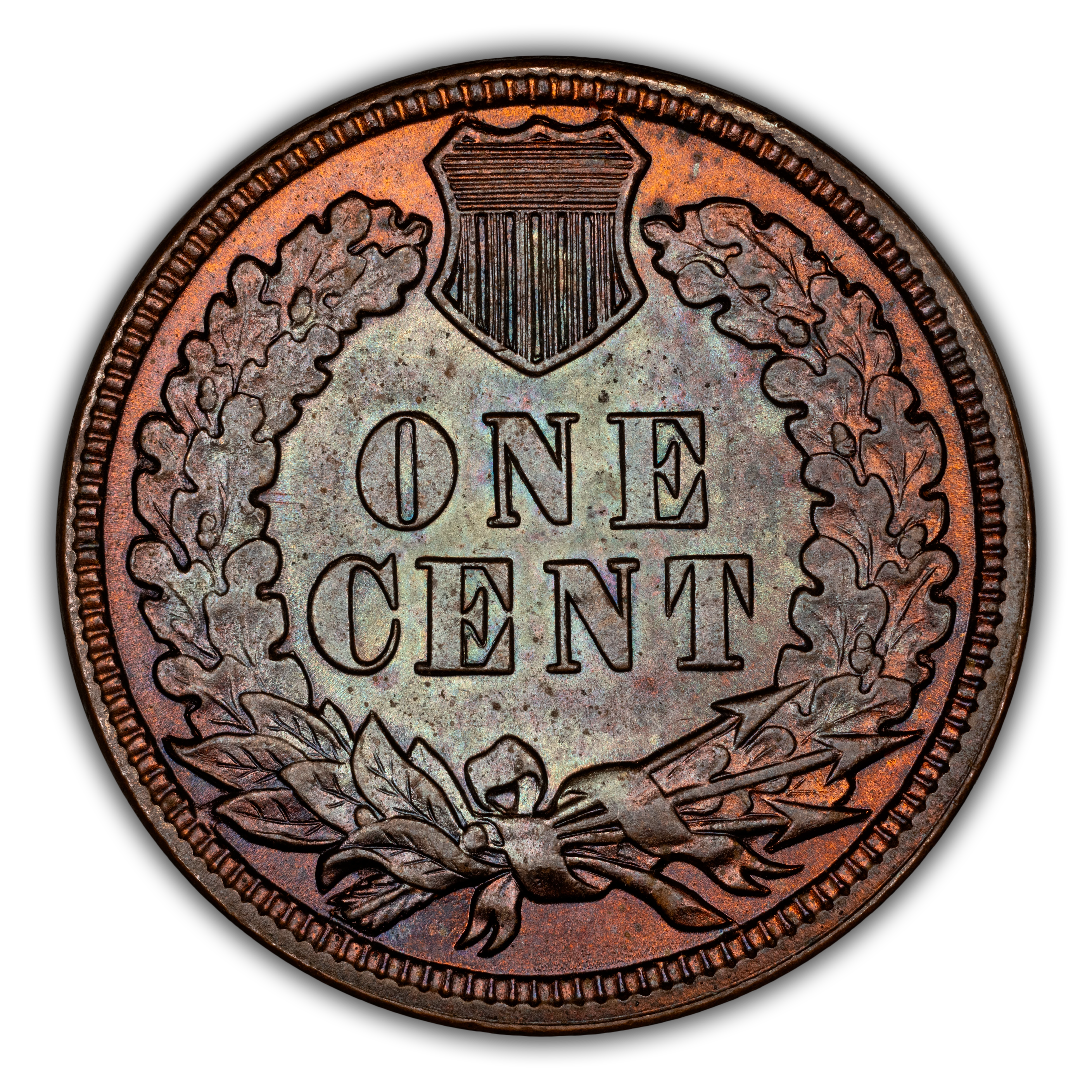 Reverse: The reverse bears the denomination of ONE CENT in the center surrounded by a wreath bearing a ribbon with arrows tied in at the bottom center.