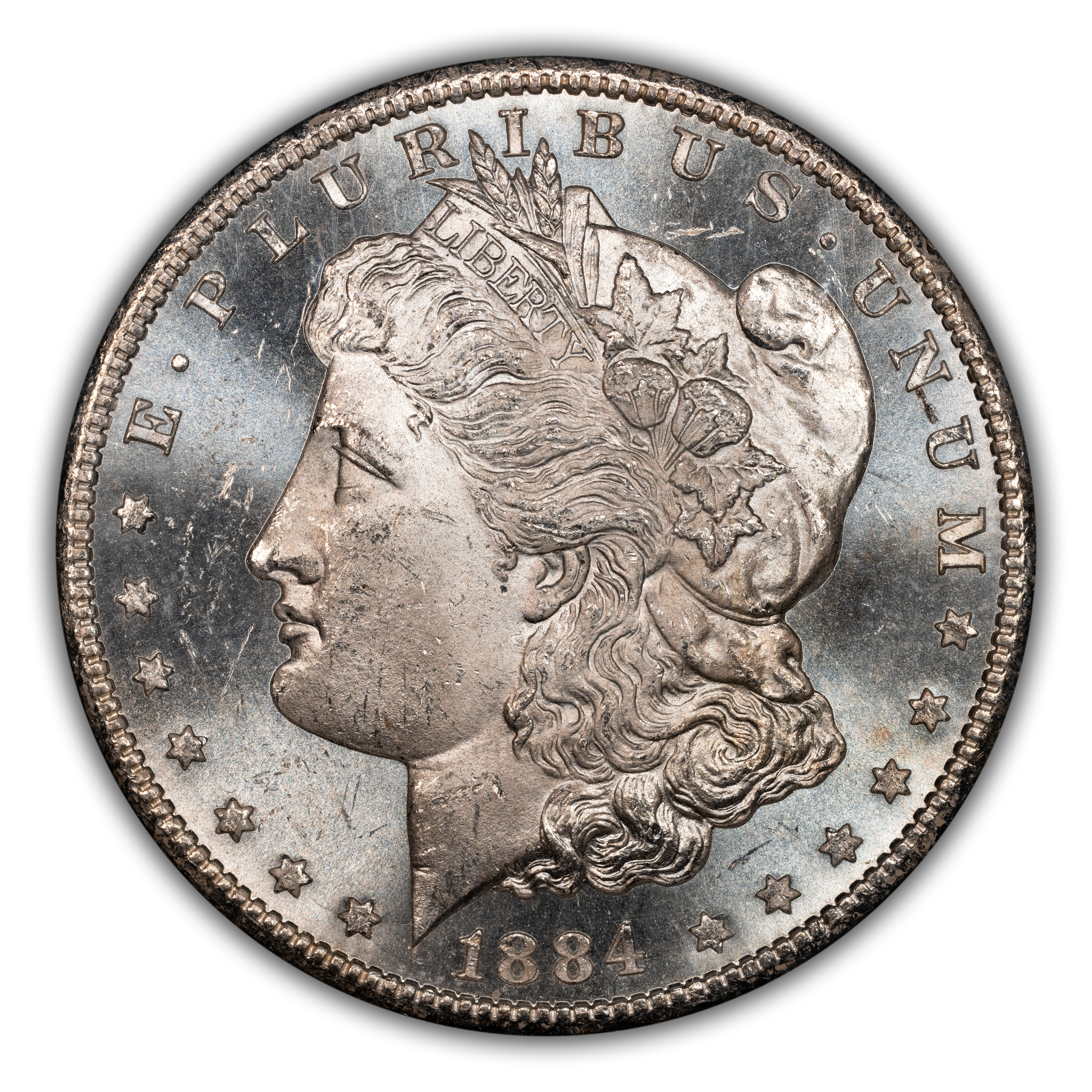 - 1884-CC $1 GSA Hoard, Die Gouge Cheek, VAM-7 MS PL