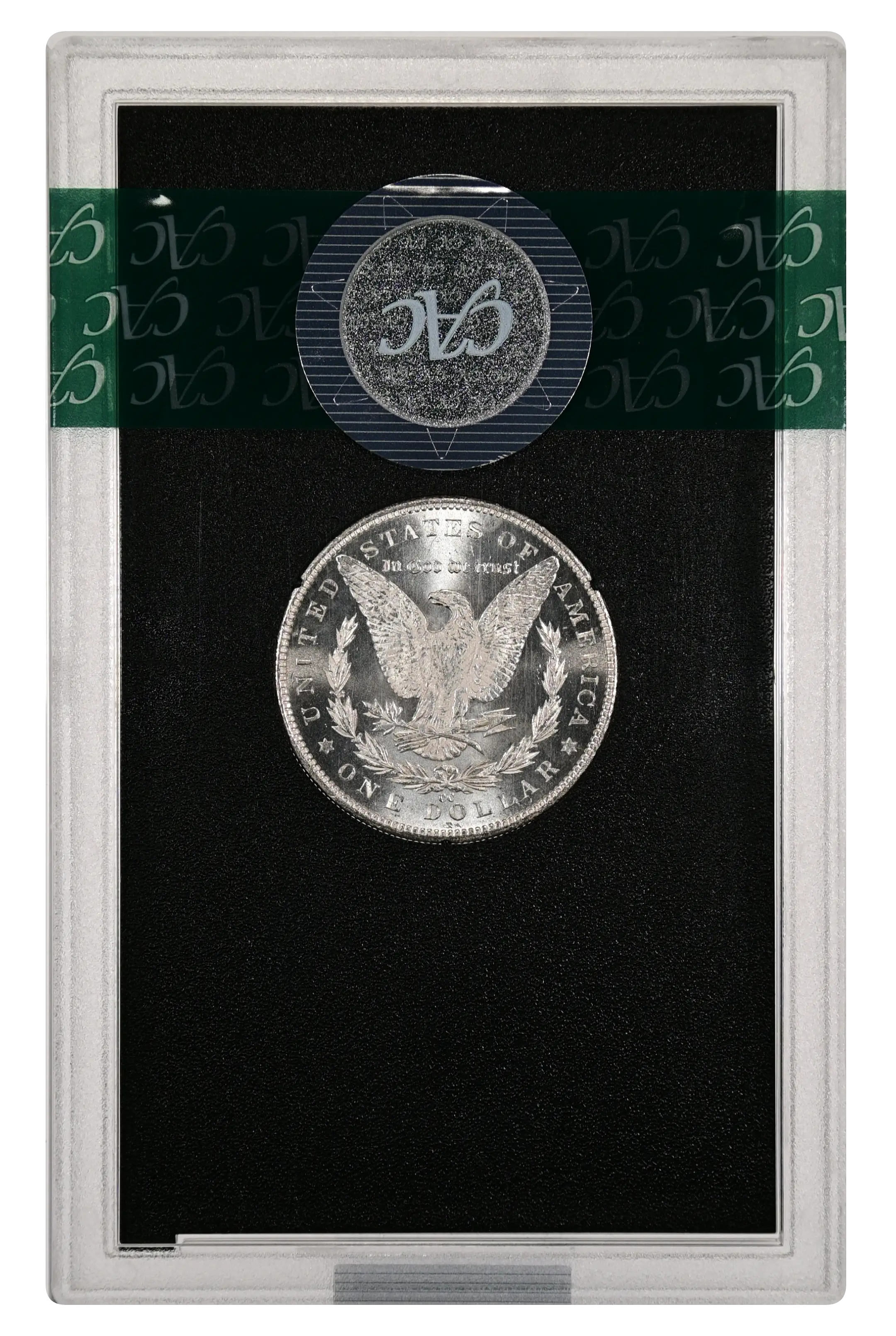 The 1884-CC GSA Morgan dollar is the most common of all GSA Hoard silver dollars, counting for a remarkable 962,638 examples out of a total production of 1,136,000. Number crunchers will see that the total sum of 1884-CC GSA Morgan dollars accounts for approximately half of all GSA silver dollars sold in the 1970s and early 1980s as part of the Great Silver Sale. While relatively common, buyers place a premium on examples still in their original government GSA packaging, and PLs or DMPLs found within are highly desirable.