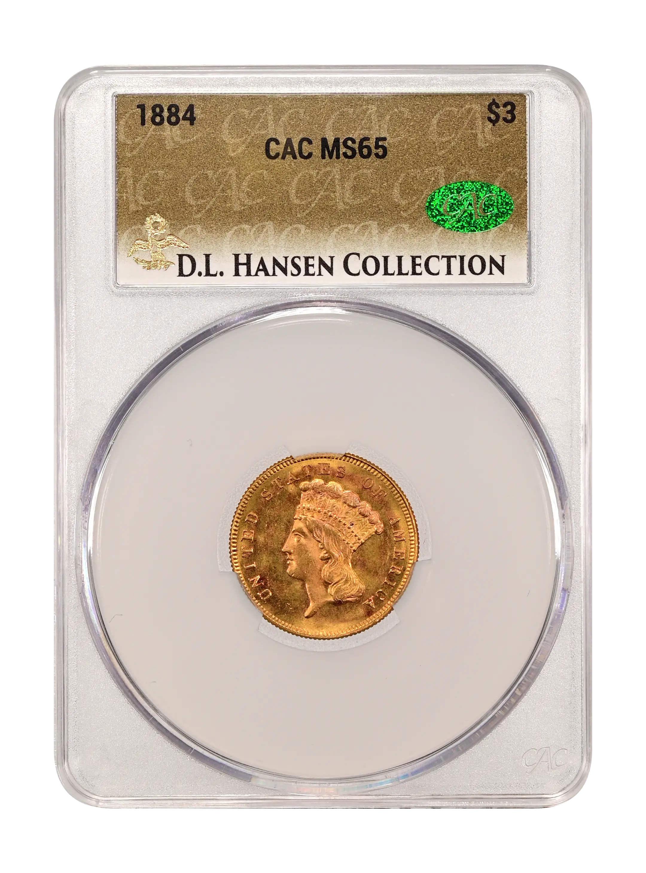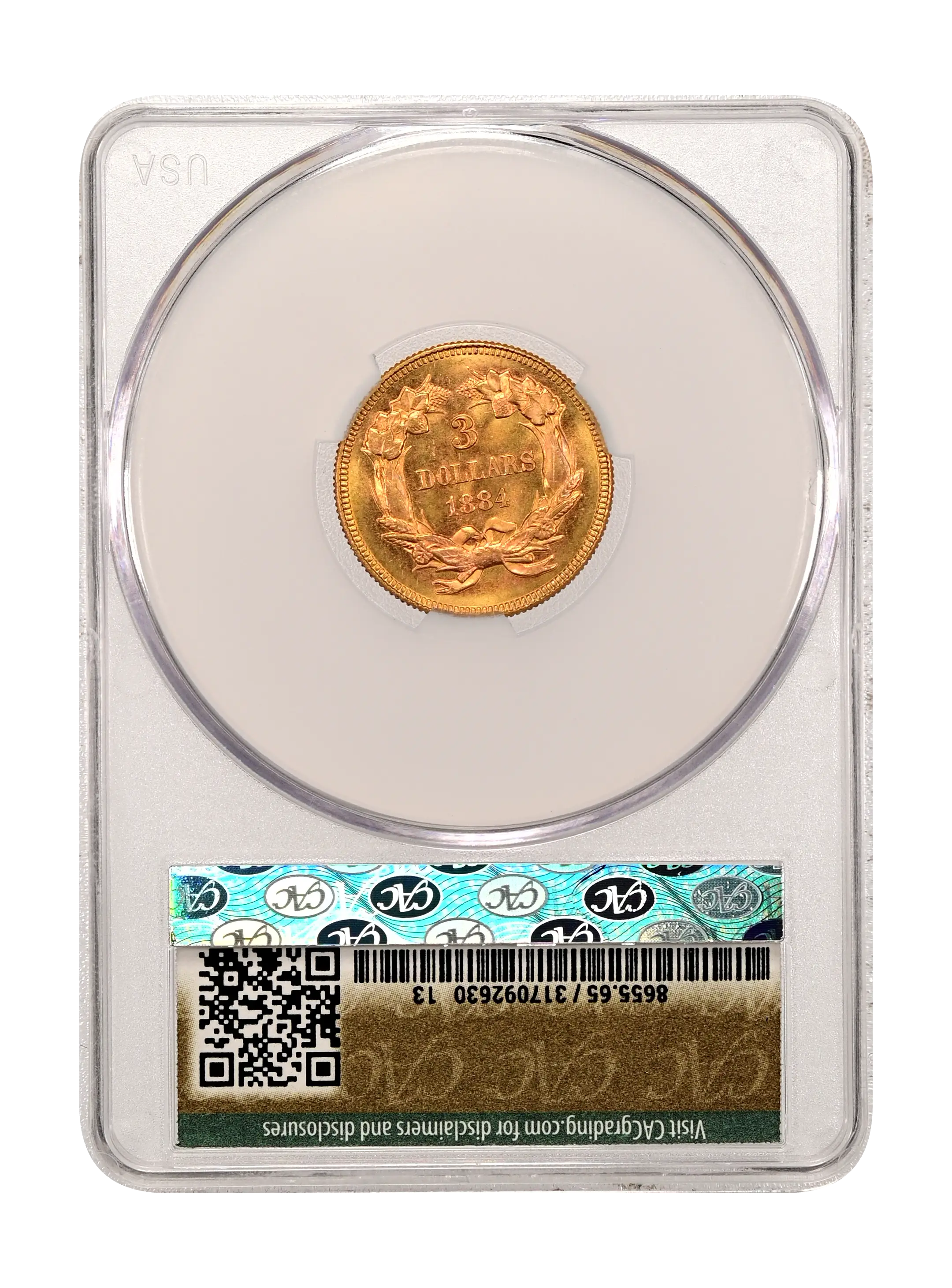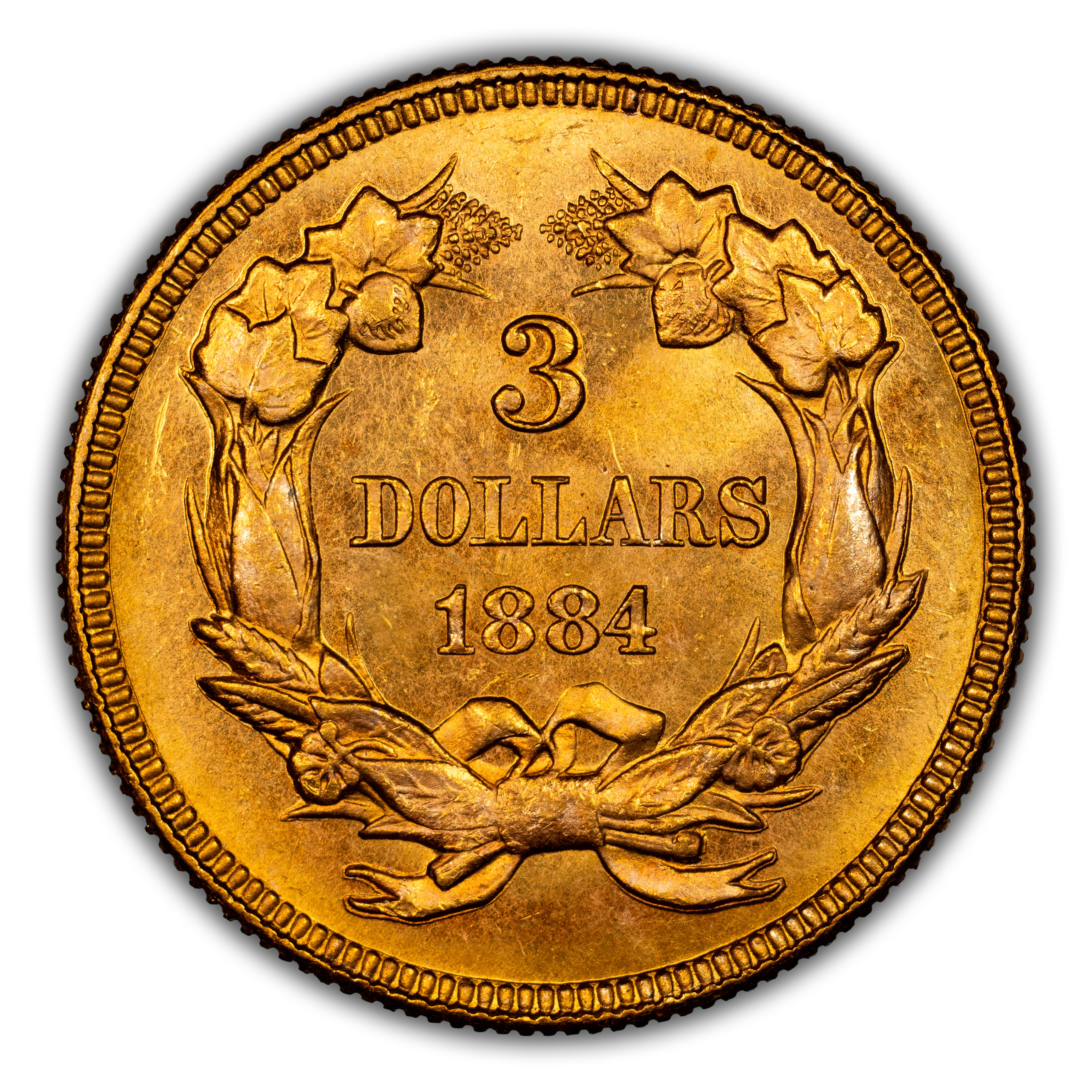 1884 Three-Dollar Gold Piece. MS-62 (PCGS).