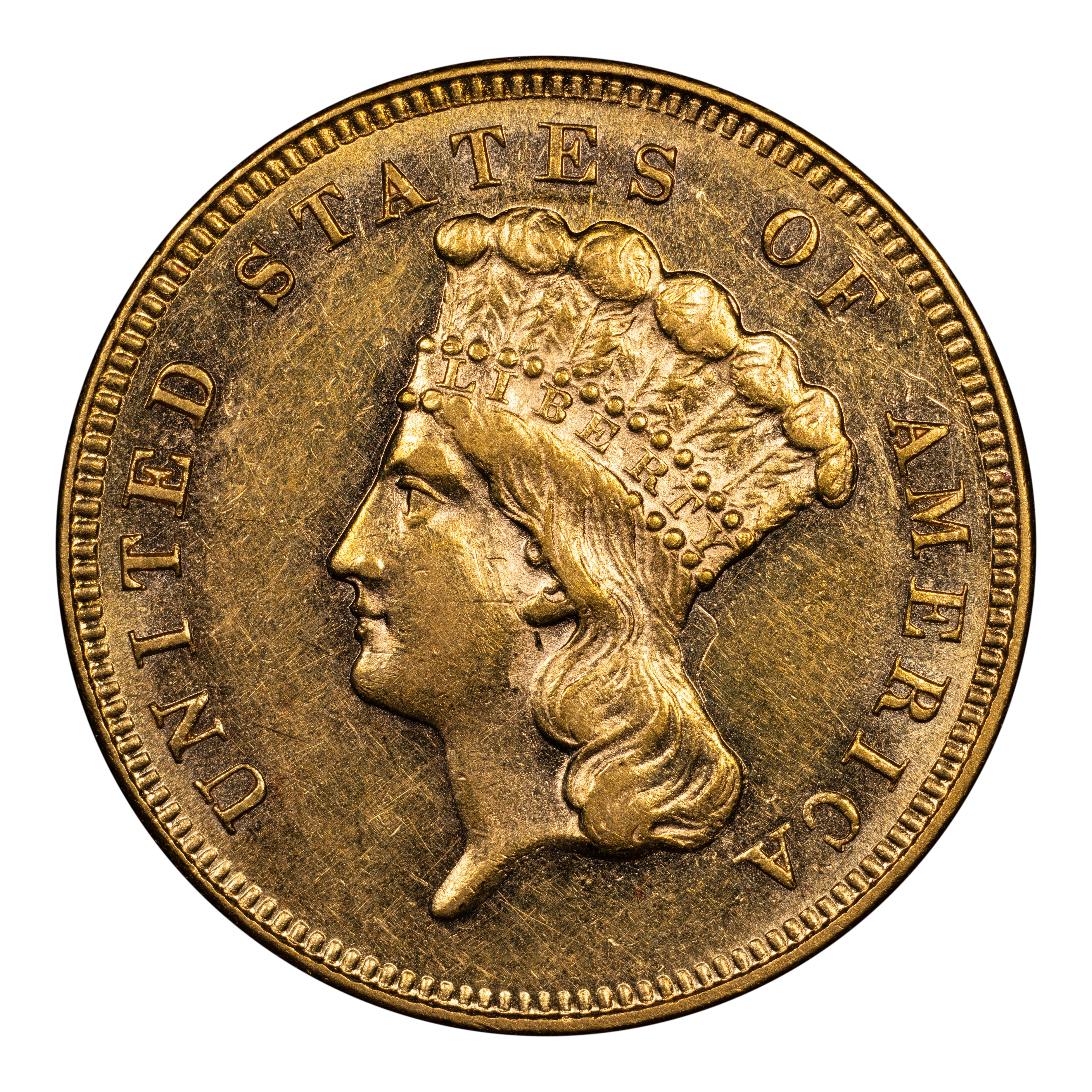 1886 $3 PCGS/CAC AU58 - Low Mintage Princess Gold