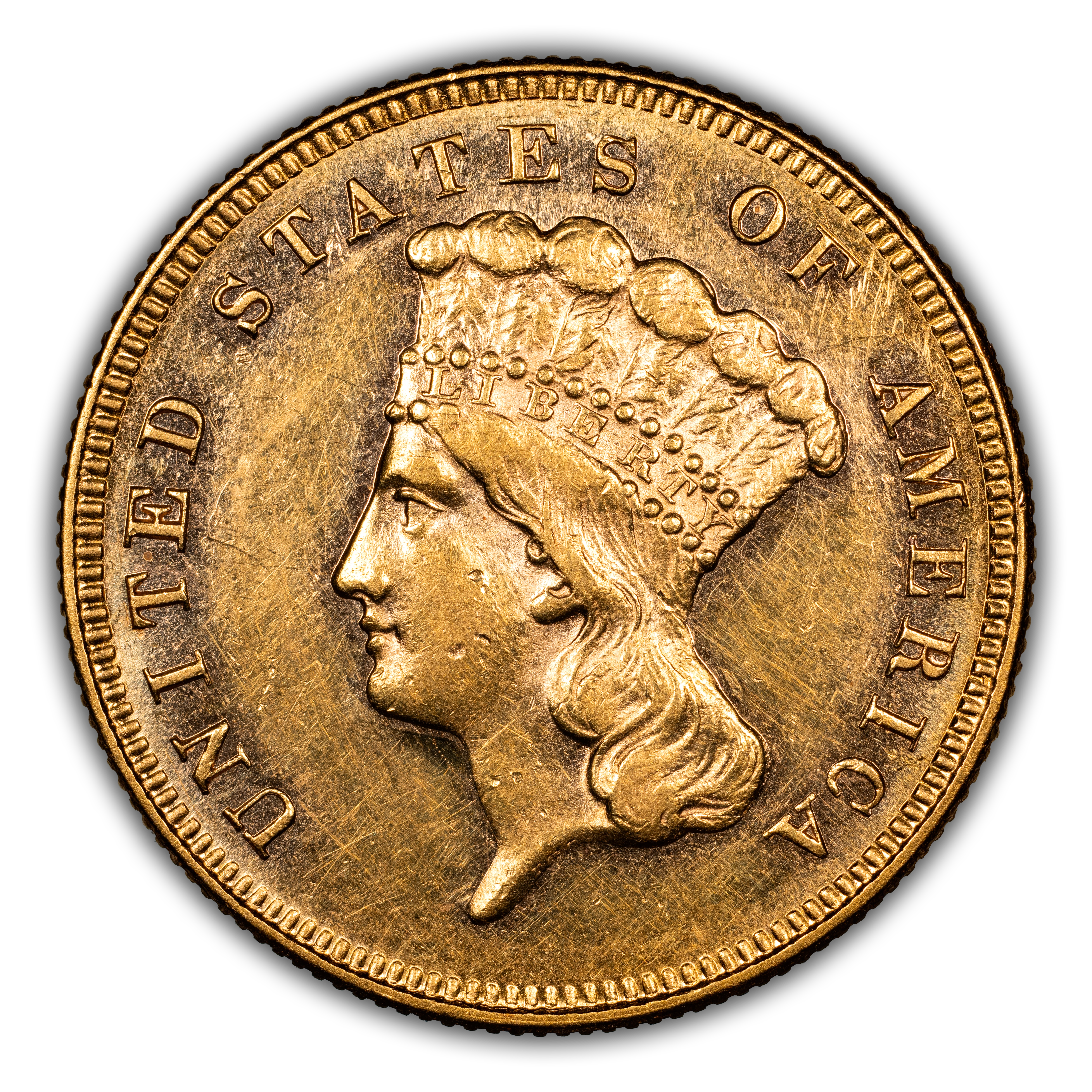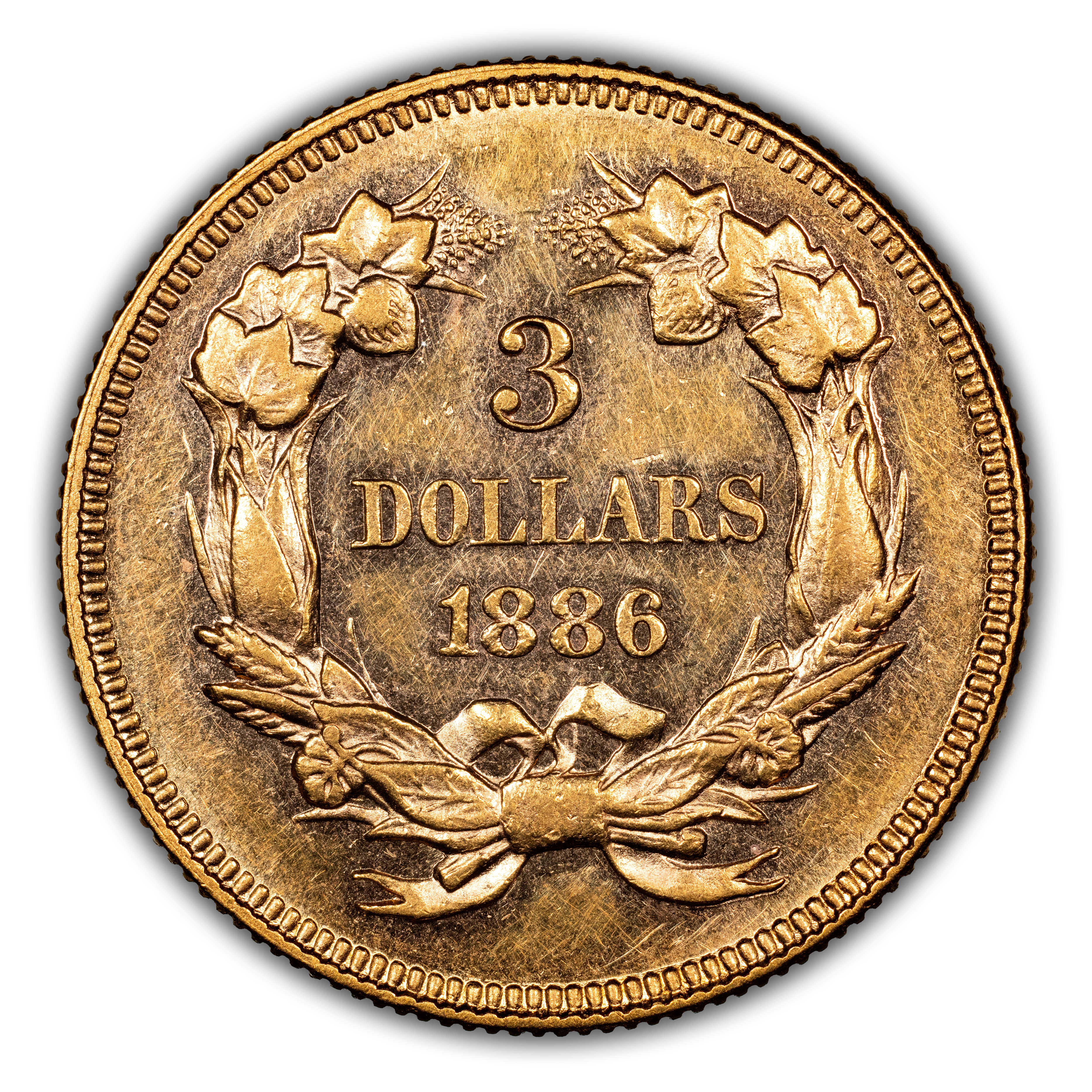 1886 $3 PCGS/CAC AU55 - Low Mintage Princess Gold