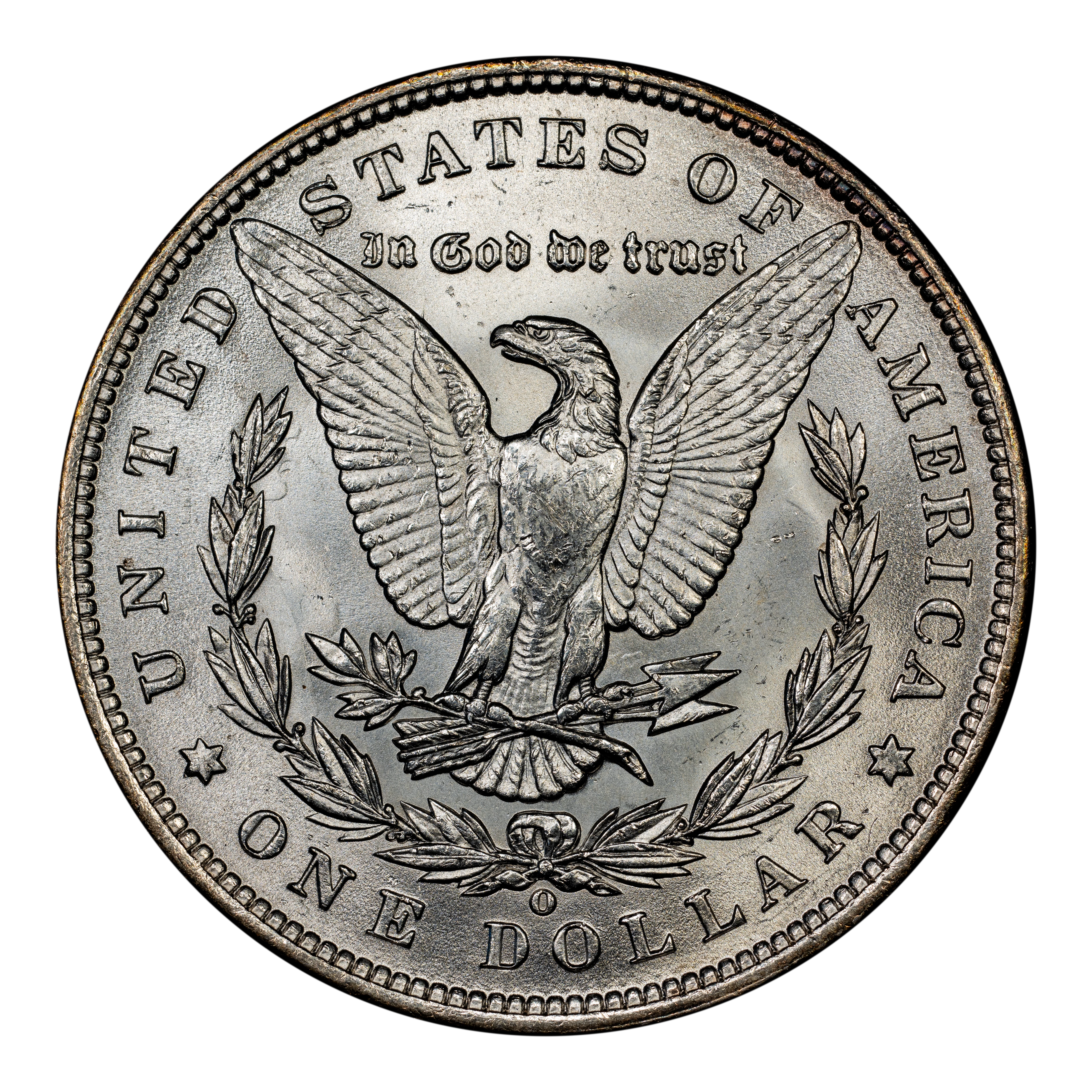 Reverse: The heraldic eagle is centered holding a bunch of arrows and branch surrounded by and olive leaves. The words UNITED STATES OF AMERICA * ONE DOLLAR frame the periphery. Mint mark, if any, appears above the letters DO of DOLLAR.