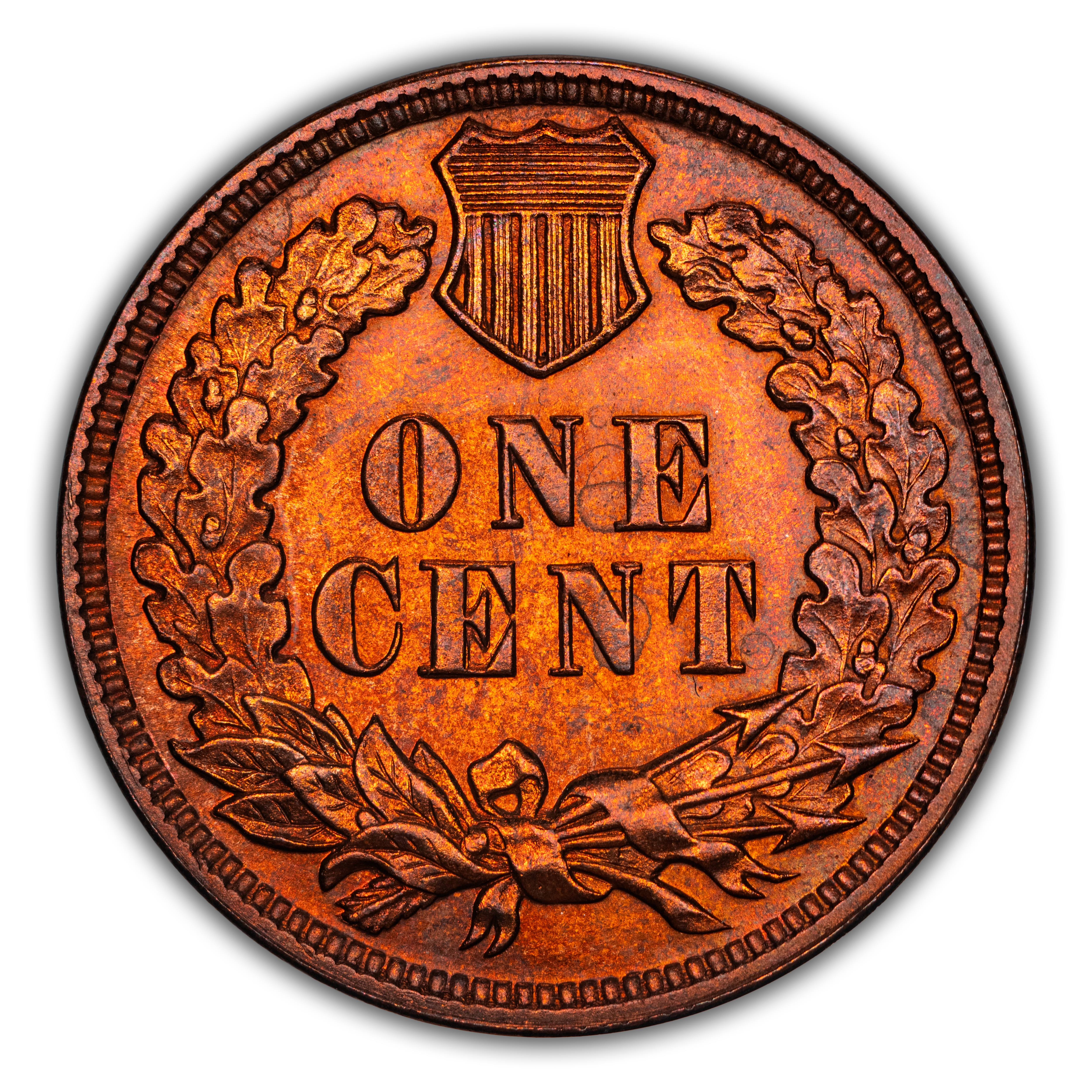 Reverse: The reverse bears the denomination of ONE CENT in the center surrounded by a wreath bearing a ribbon with arrows tied in at the bottom center.