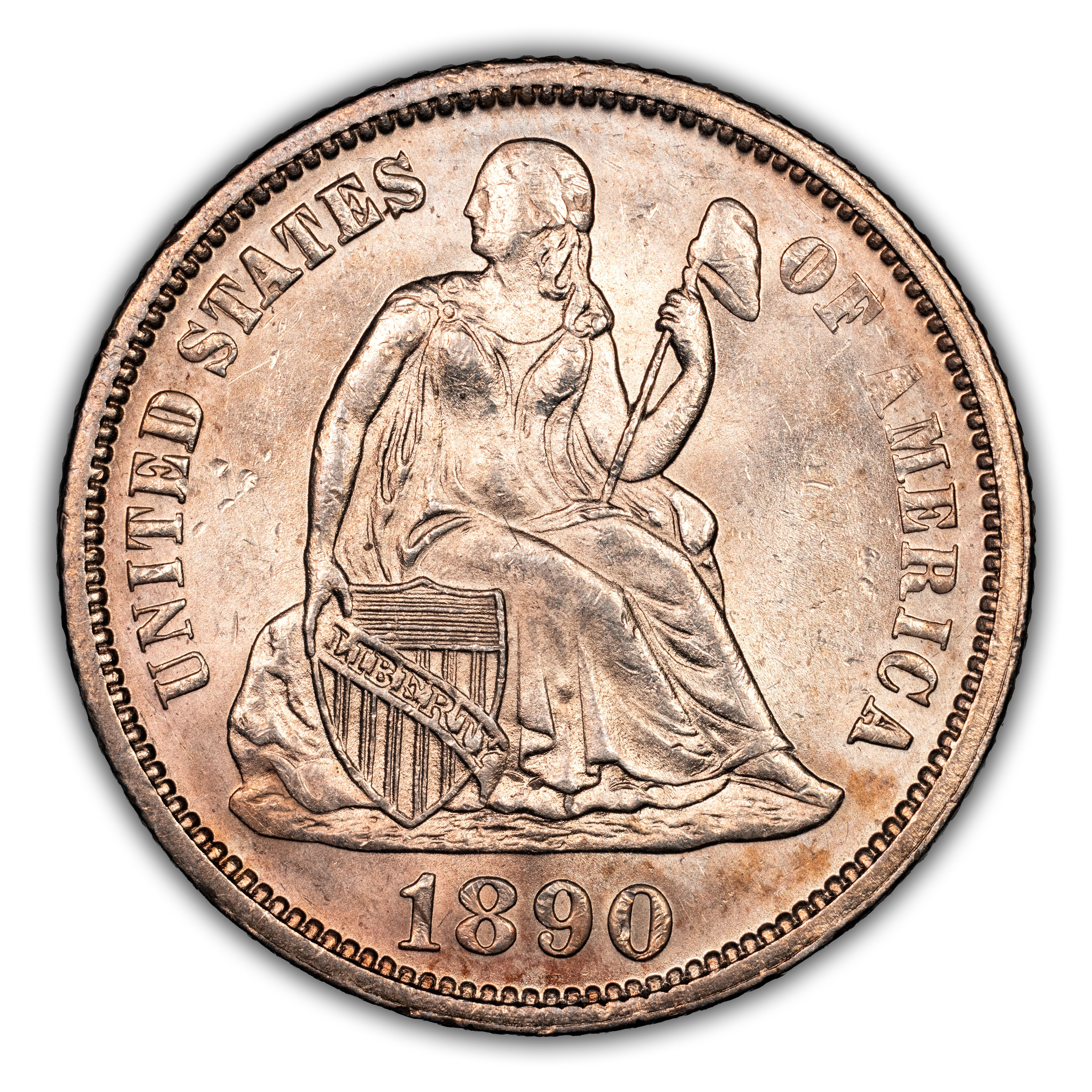 1890 10C Misplaced Date, MPD-002, FS-302, MS65 NGC. Mintage 9,911,541.Flynn Reference and Cross Reference: MPD-002,...