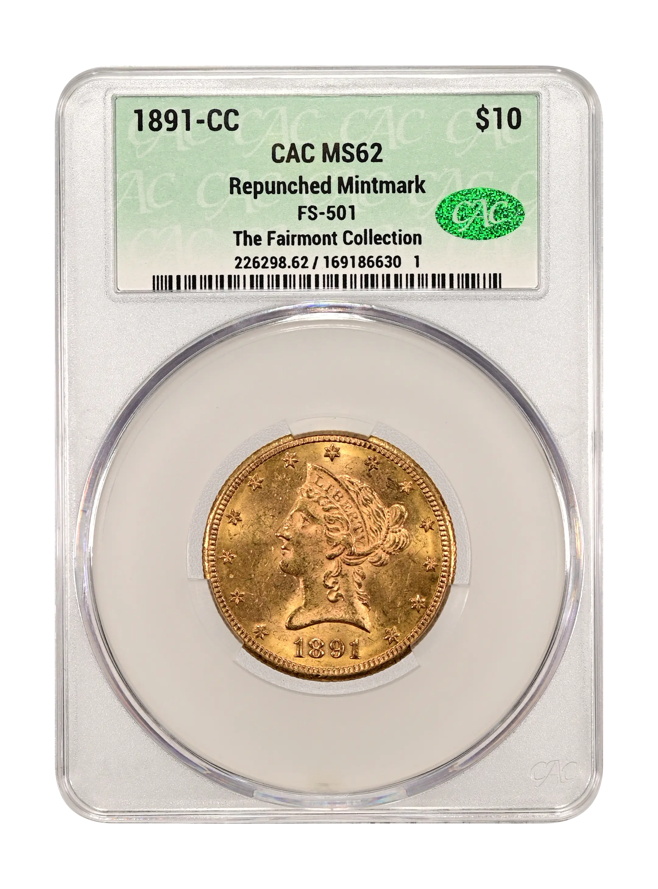 1891-CC Repunched Mintmark $10 FS-501 CAC MS62