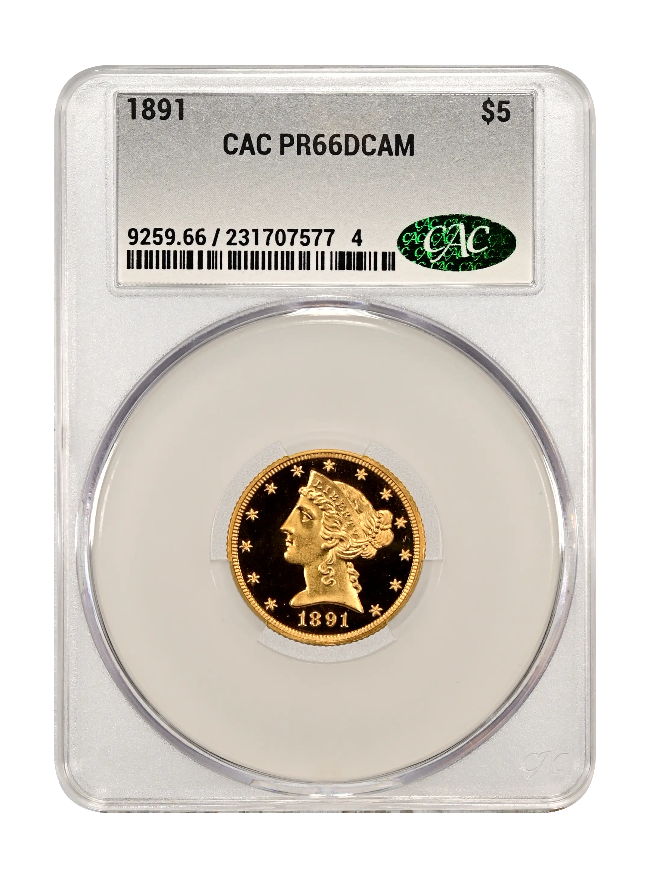 1891 $5 DCAM (Proof) CAC PR66DCAM