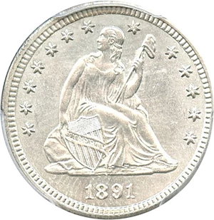 1891-S 25C MS65 PCGS. PCGS Population: (23/7 and 0/1+). NGC Census: (8/5 and 1/0+). CDN: $1,300 Whsle. Bid for problem-free...