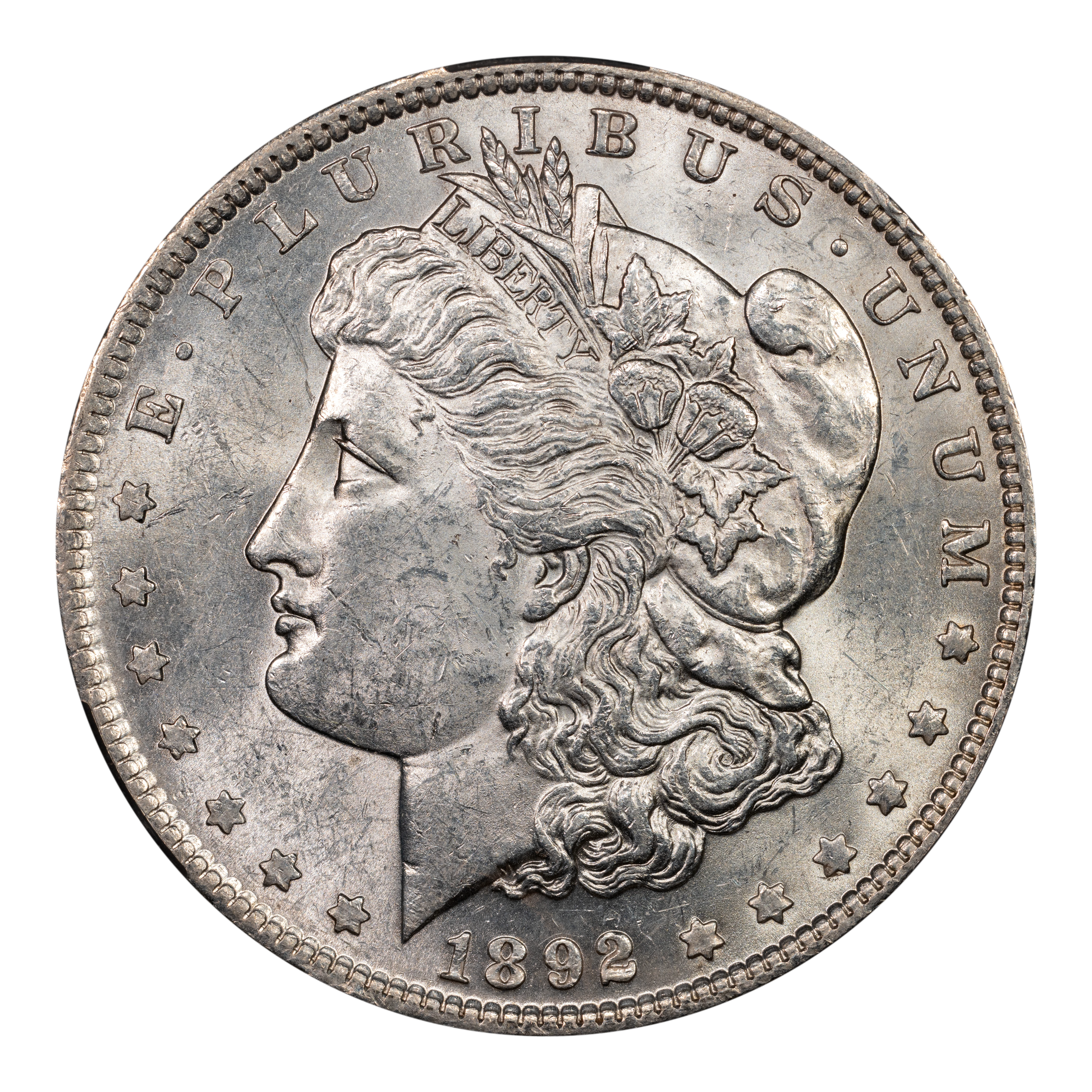 The 1892 Morgan dollar is a tougher date in all regards, though circulated examples are much easier to locate than uncirculated pieces. This issue is very scarce in MS65 and rare in grades above that. Uncirculated examples are either found with great strike and luster or with flatter strike and dullish appearance. Certainly, the nicer examples garner stronger premiums than those with relatively lesser eye appeal. PLs and DMPLs are scarce in all grades and extremely rare in Gem levels.