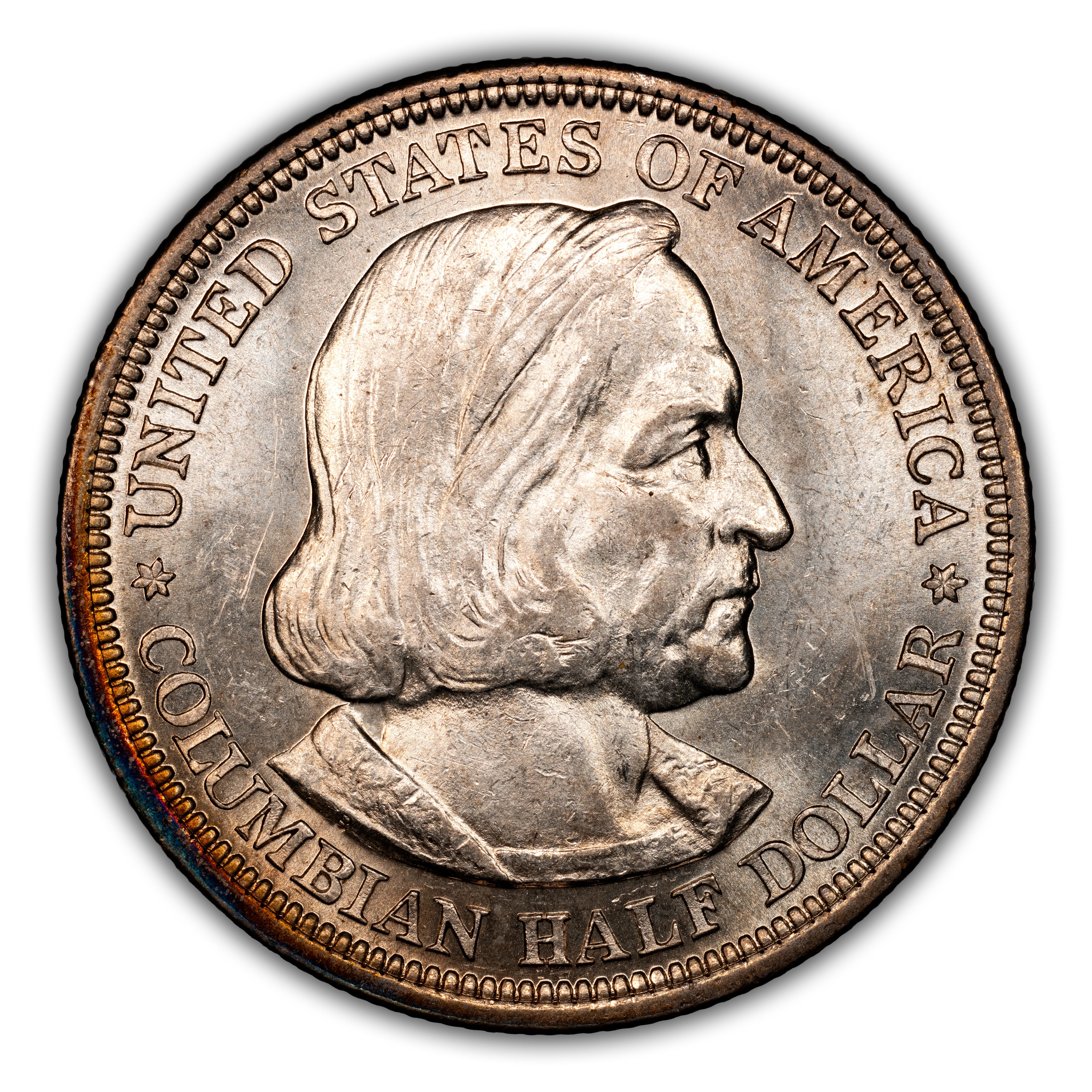 The Columbian Exposition half dollars were designed by Charles E. Barber and George T. Morgan. Though seeing a large mintage, the 1893 Columbian half dollar was widely distributed, many did not wind up in proper coin collections but rather were squirreled away in change jars and boxes and eventually spent. In fact, most Columbian halves encountered today show wear. Gem uncirculated specimens are tough, with MS66s very scarce and examples grading MS67 or better quite rare.