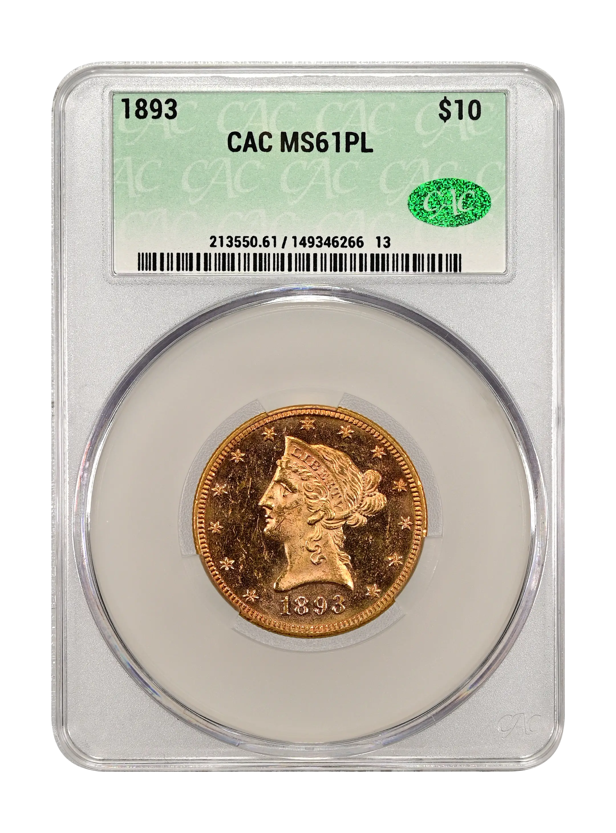 1893 $10 PL CAC MS61PL