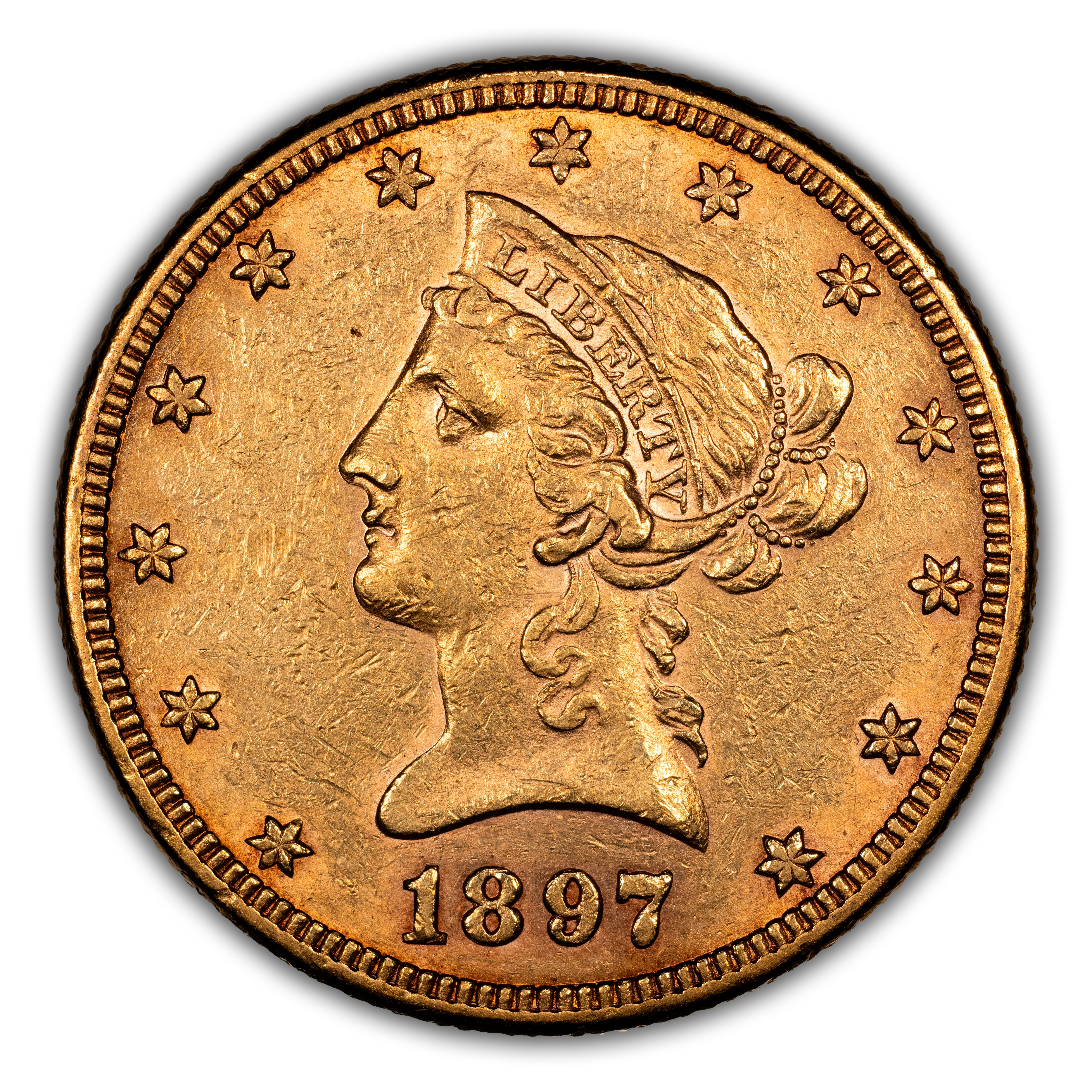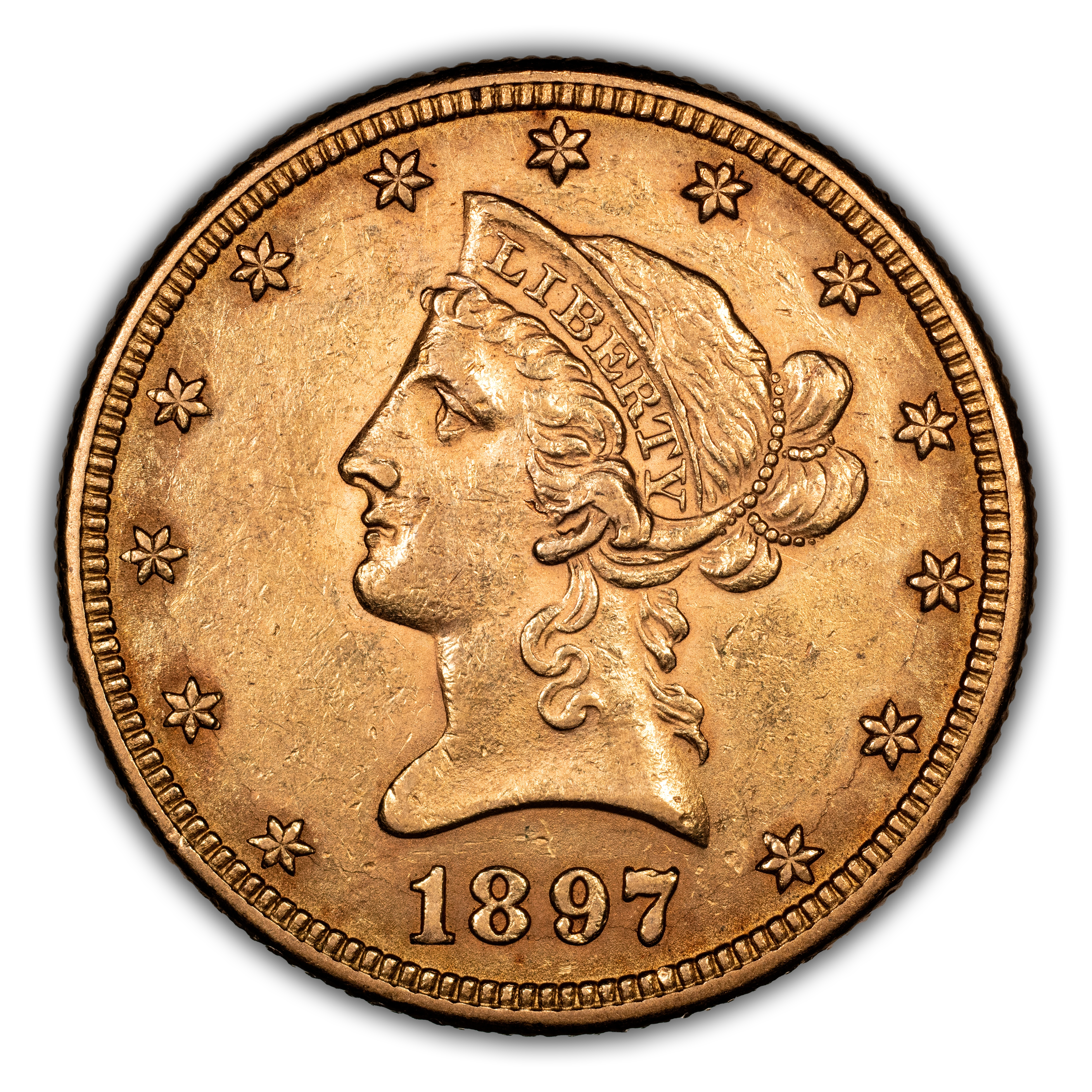 1897 $10 MS64+ PCGS. PCGS Population: (178/19). NGC Census: (176/27). CDN: $1,200 Whsle. Bid for NGC/PCGS MS64. Mintage 1,0...
