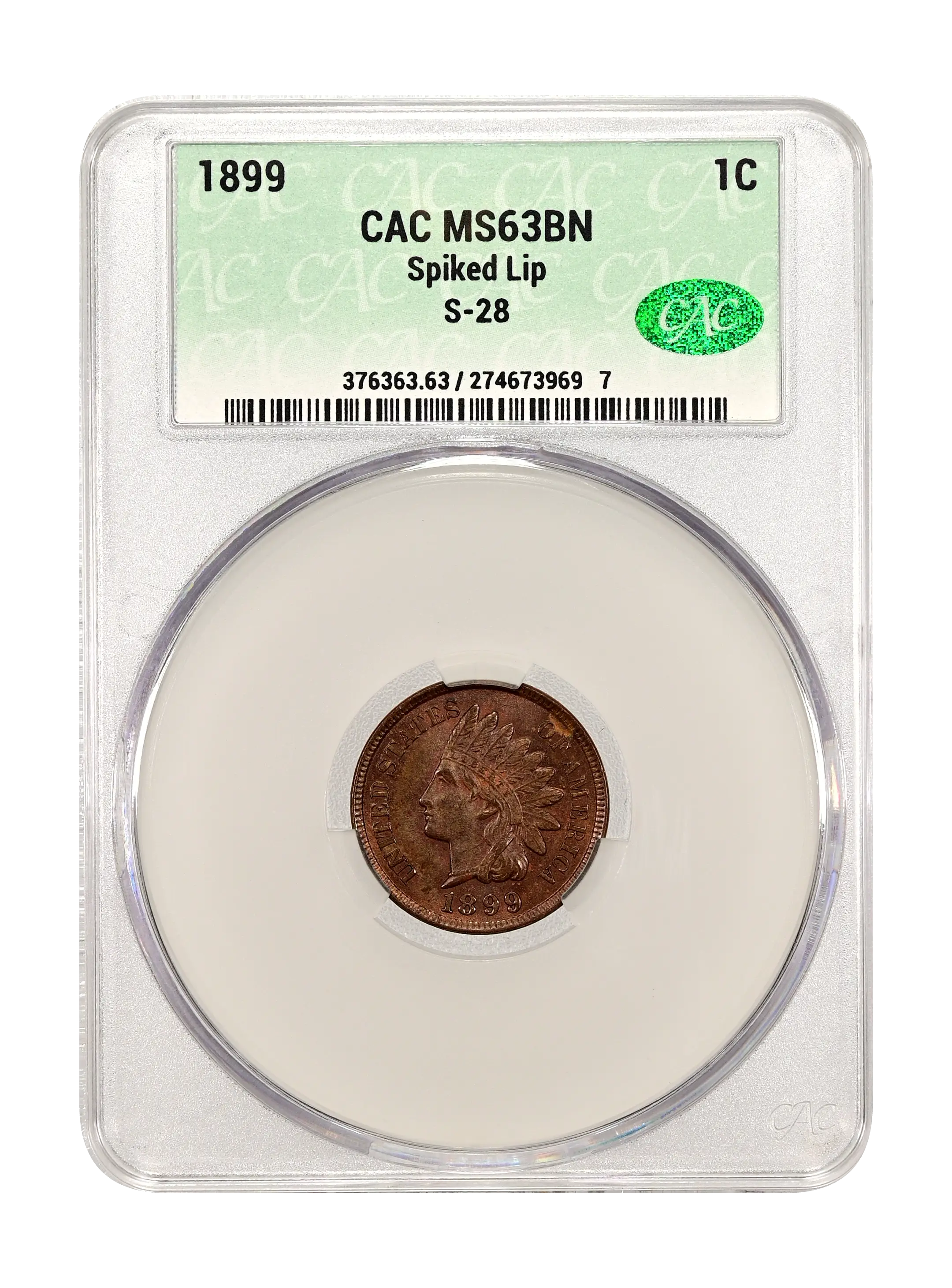 1899 Spiked Lip 1c S-28 BN CAC MS63BN