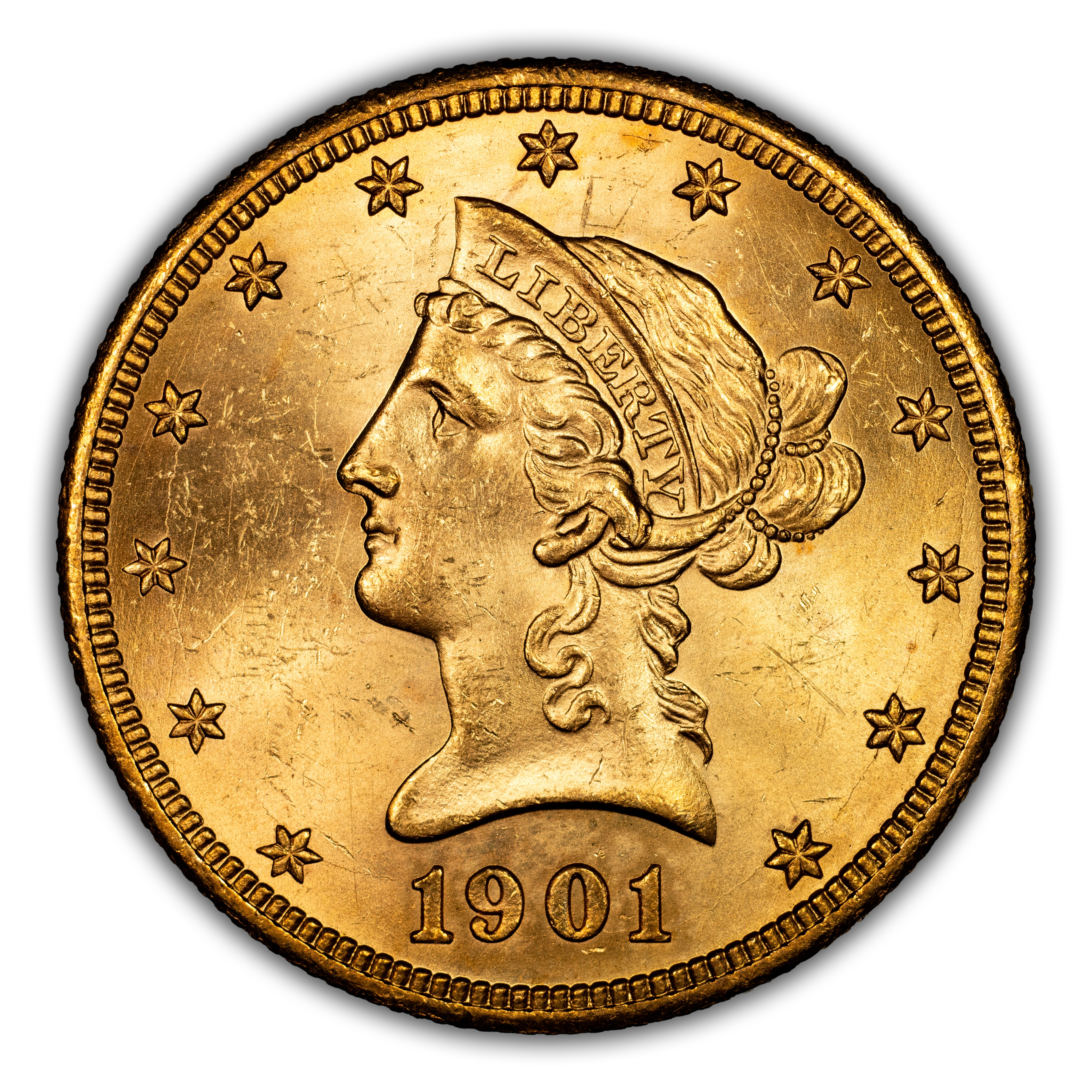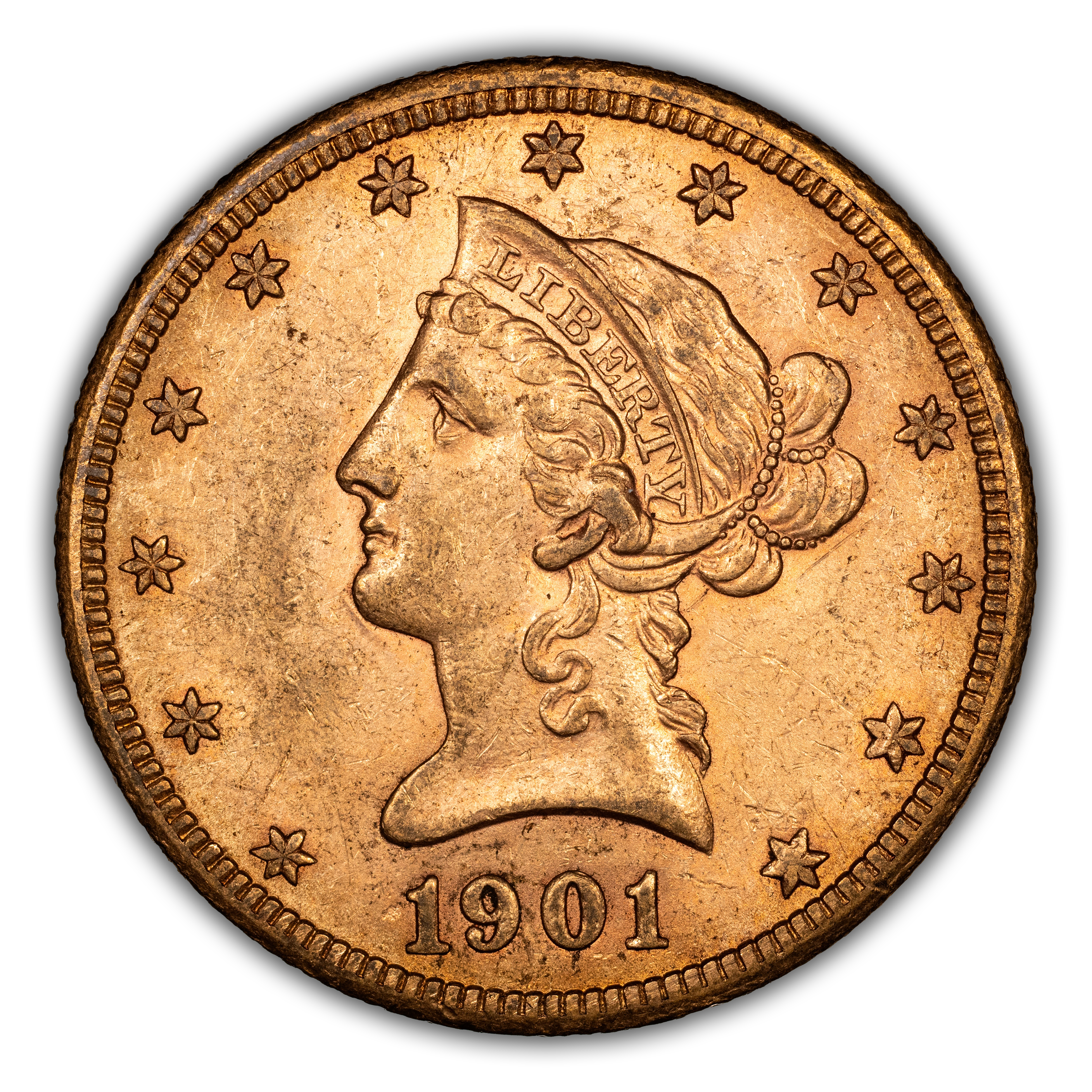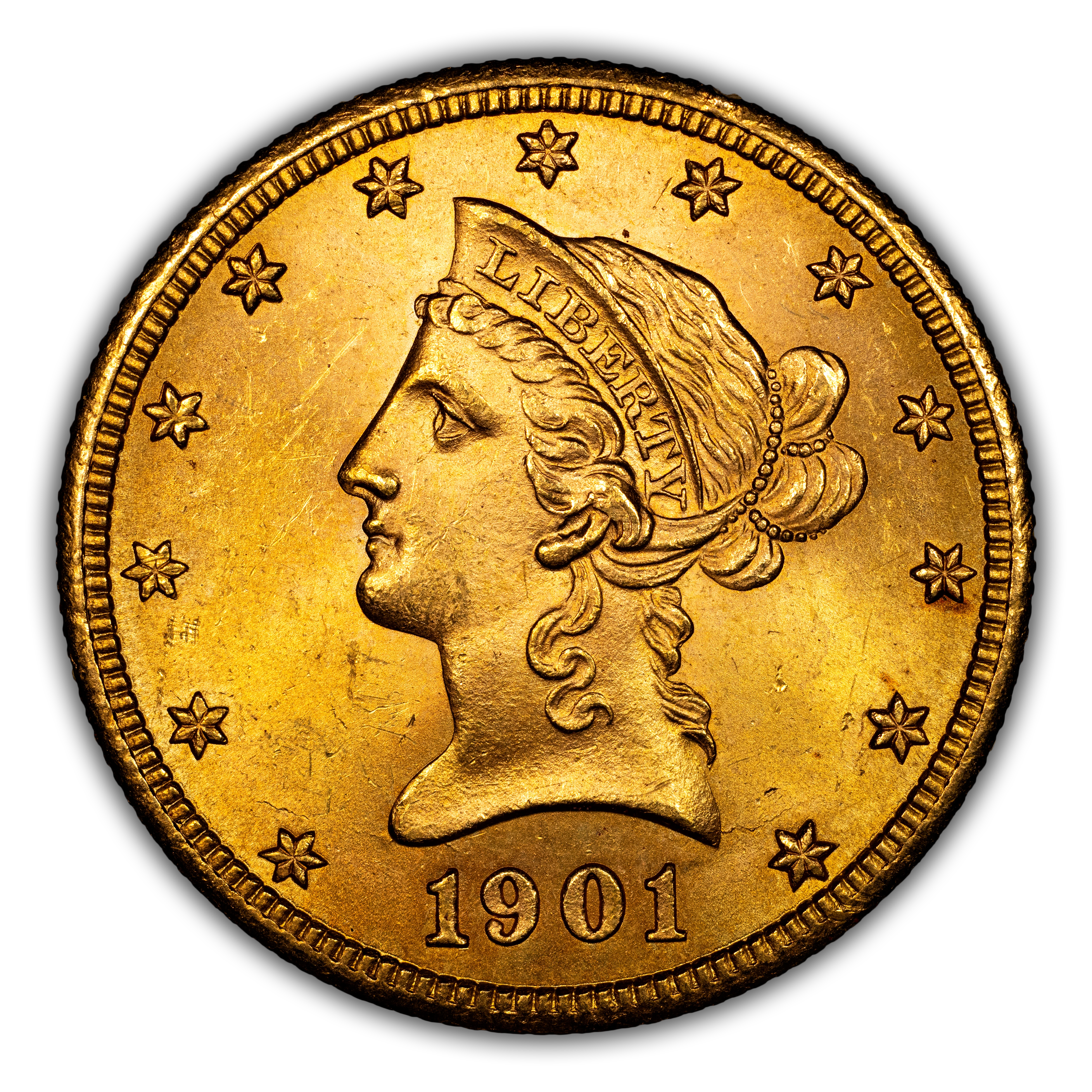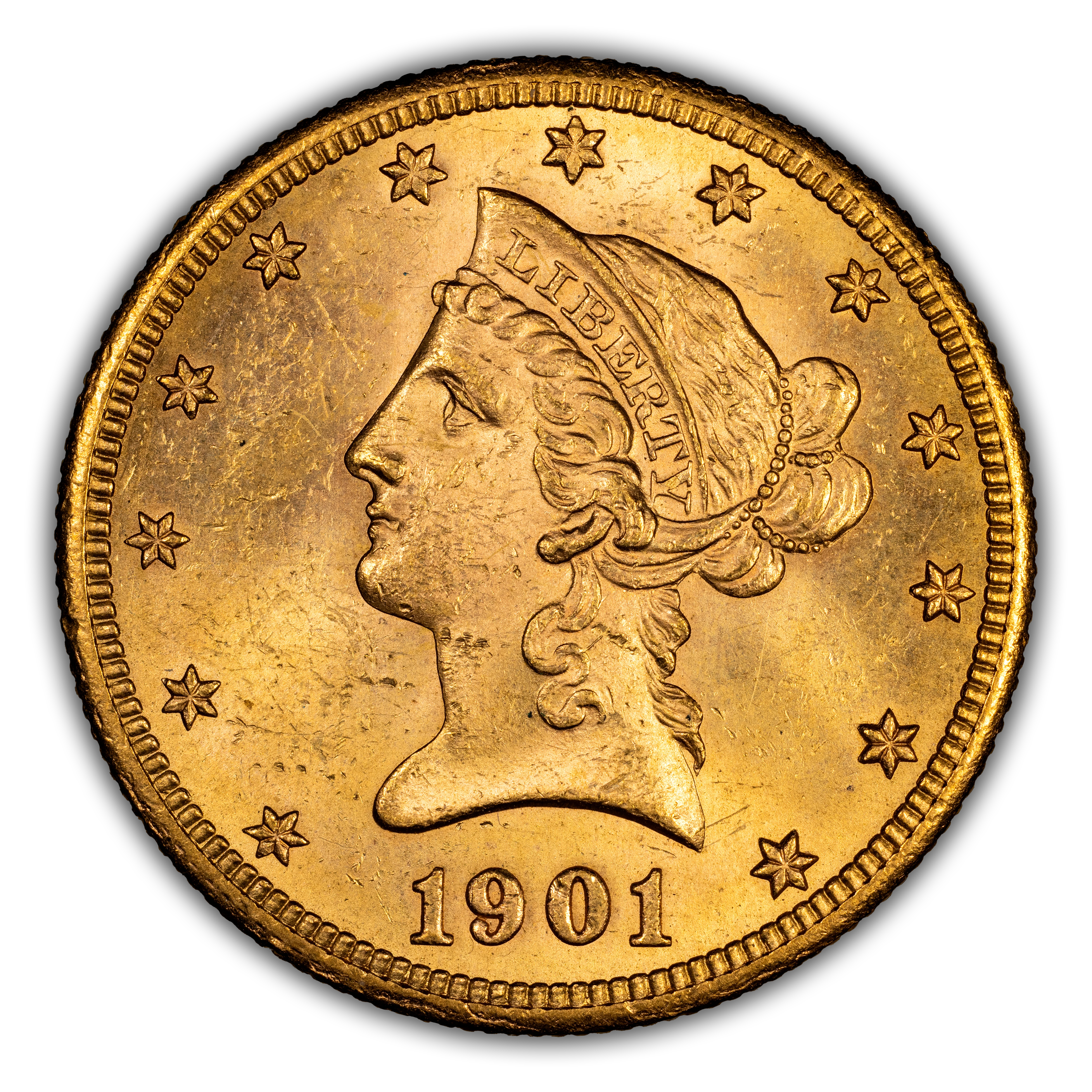 Reverse: Heraldic eagle holding arrows and branch in its claws is centered in the design with the words UNITED STATES OF AMERICA * TEN D. around the periphery. Mintmark (if any) is located under the eagle's claws.