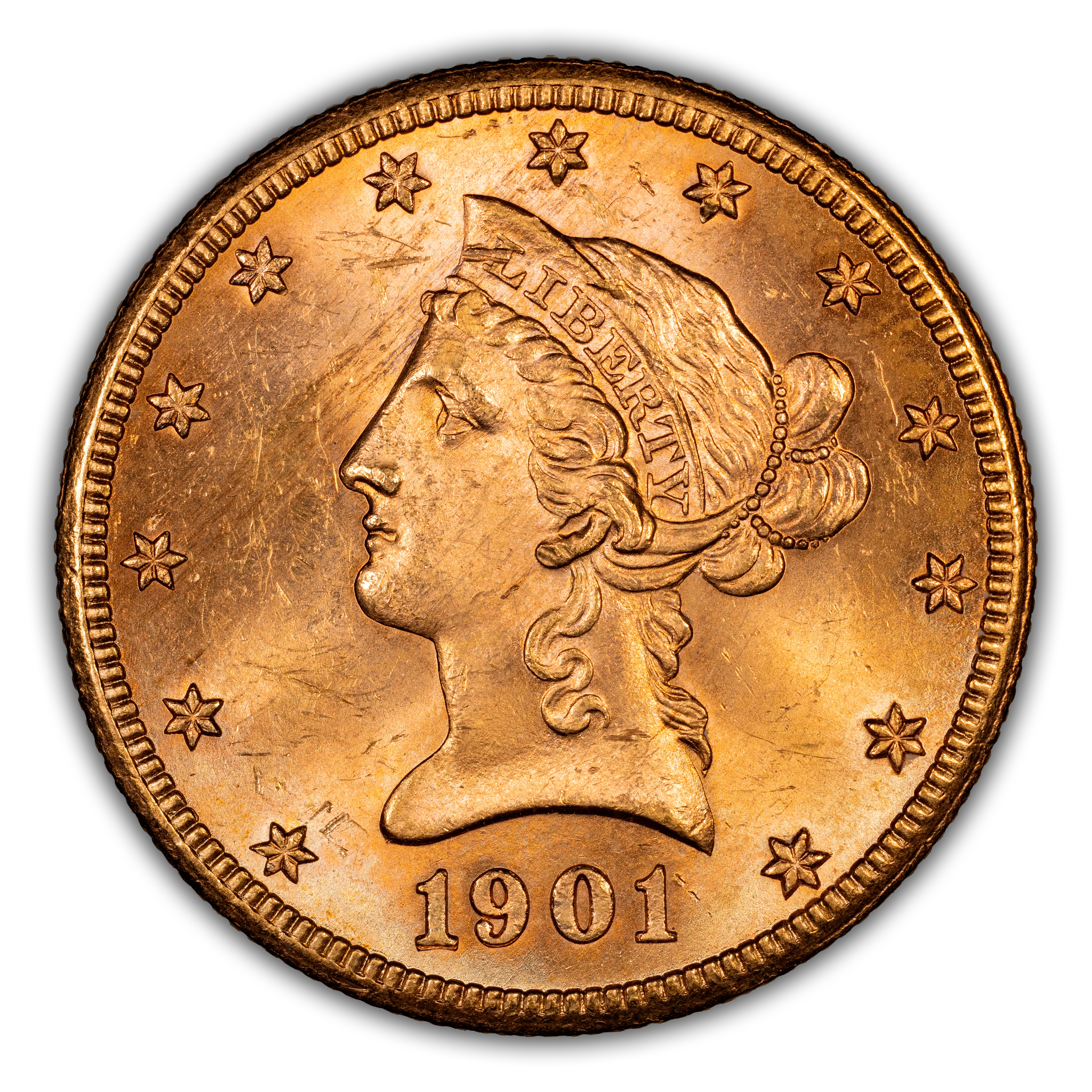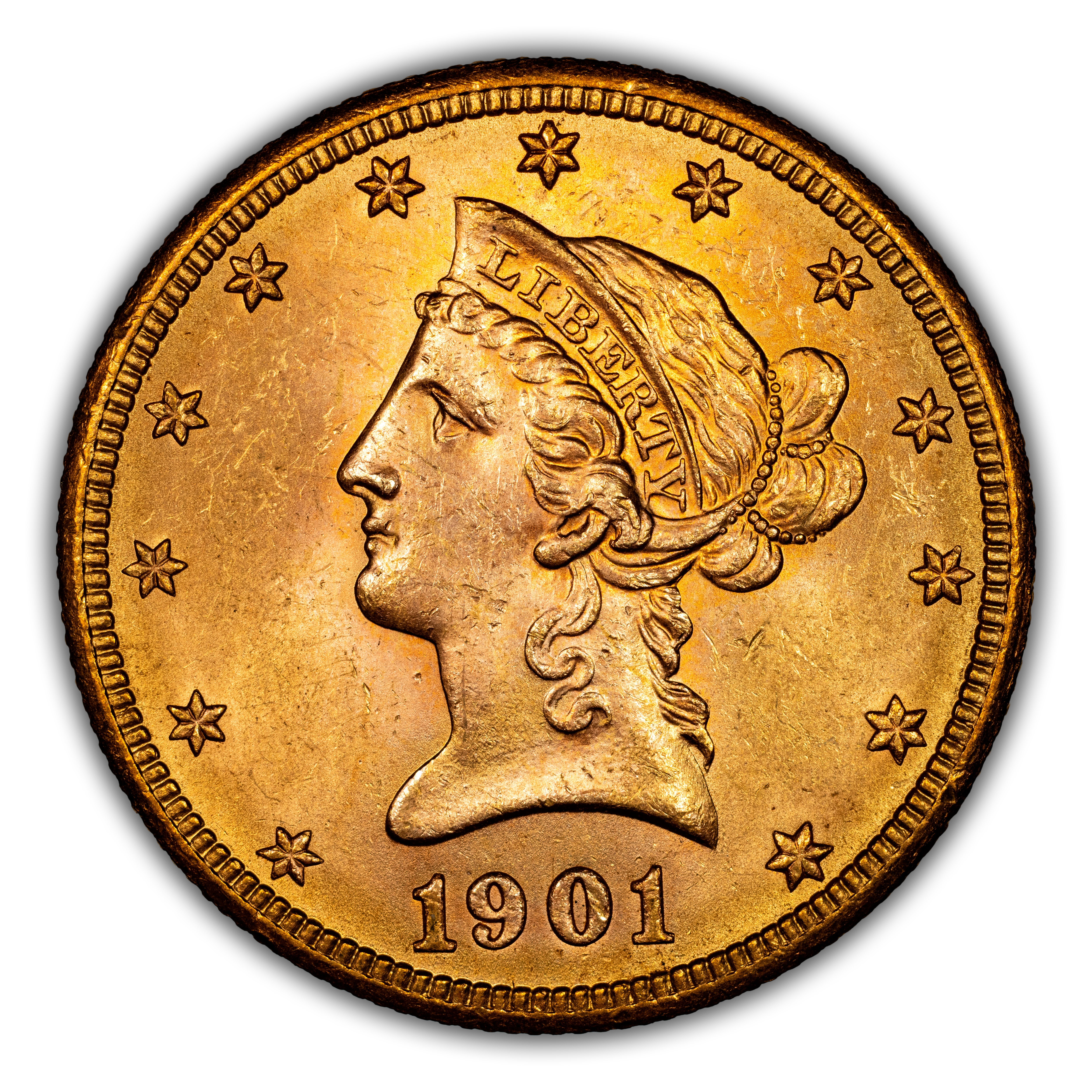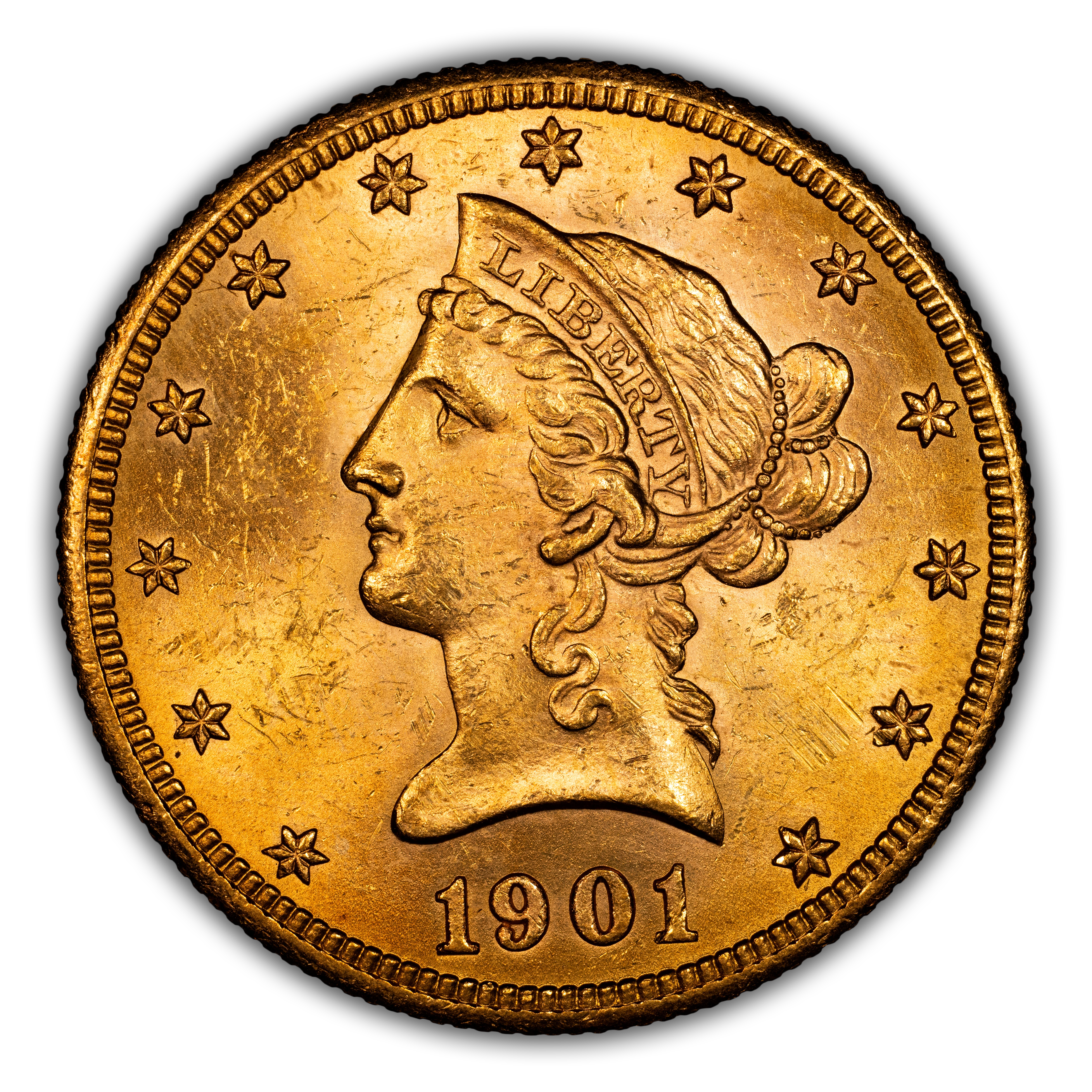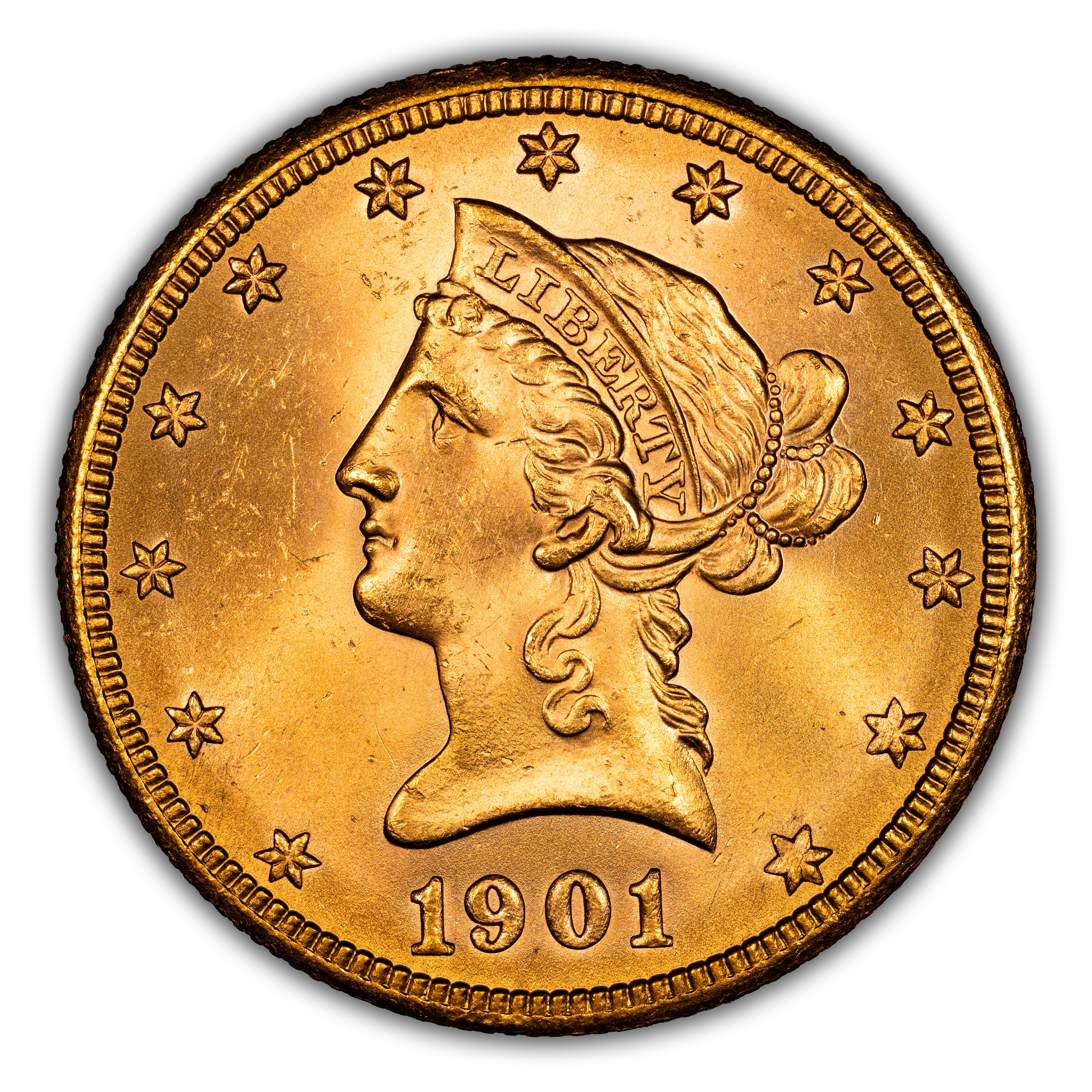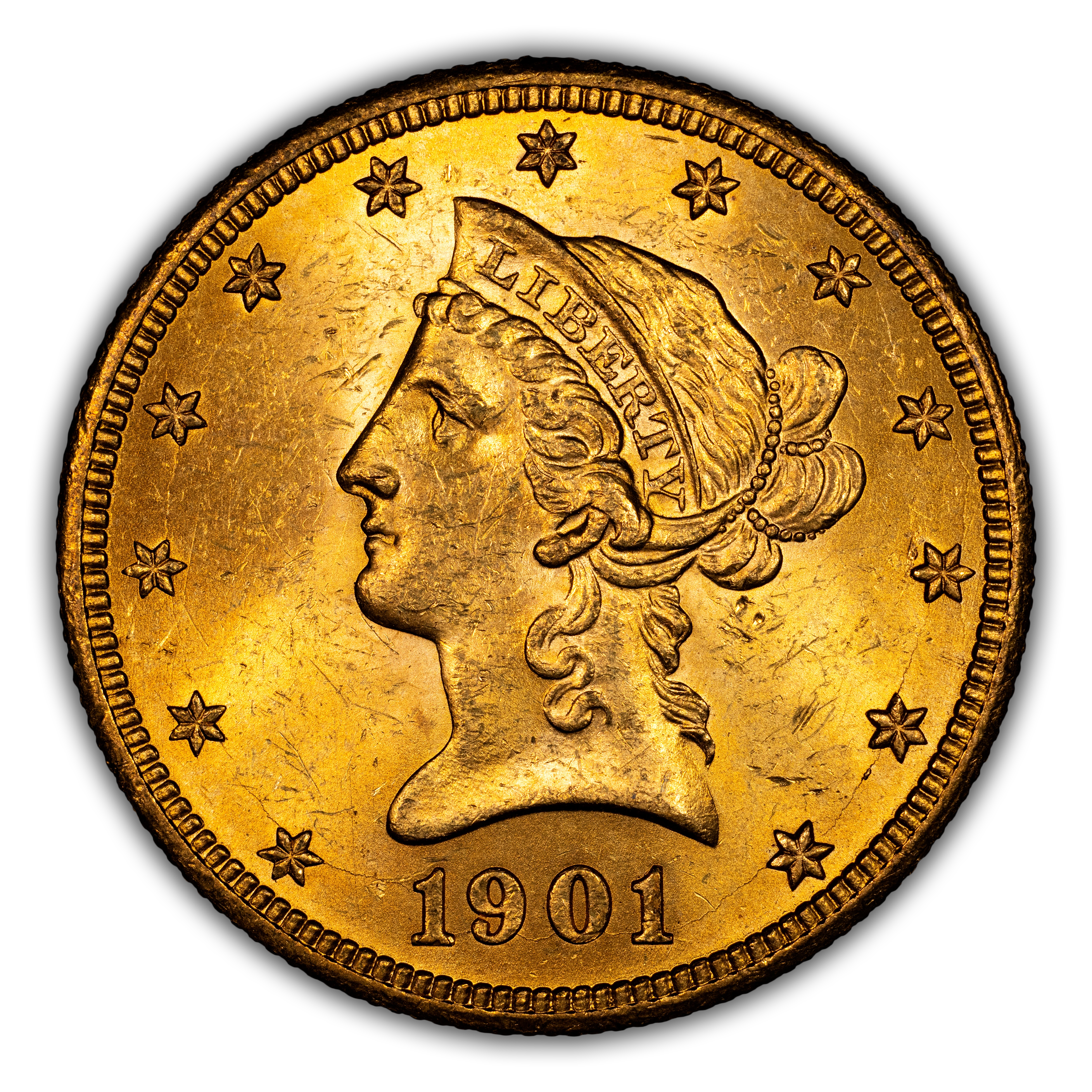 Reverse: Heraldic eagle holding arrows and branch in its claws is centered in the design with the words UNITED STATES OF AMERICA * TEN D. around the periphery. Mintmark (if any) is located under the eagle's claws.
