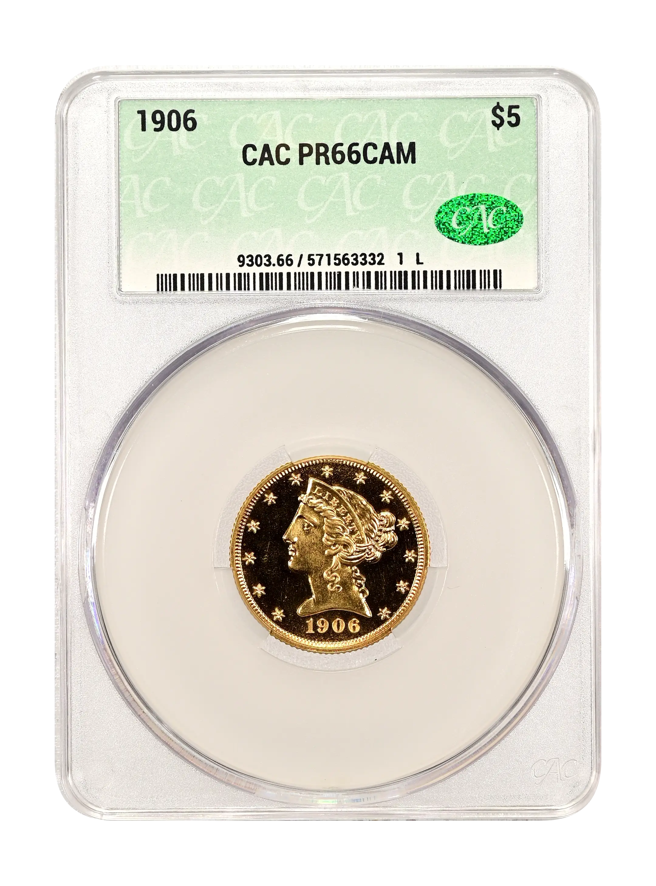 1906 $5 PCGS/CAC Proof 65 Cameo