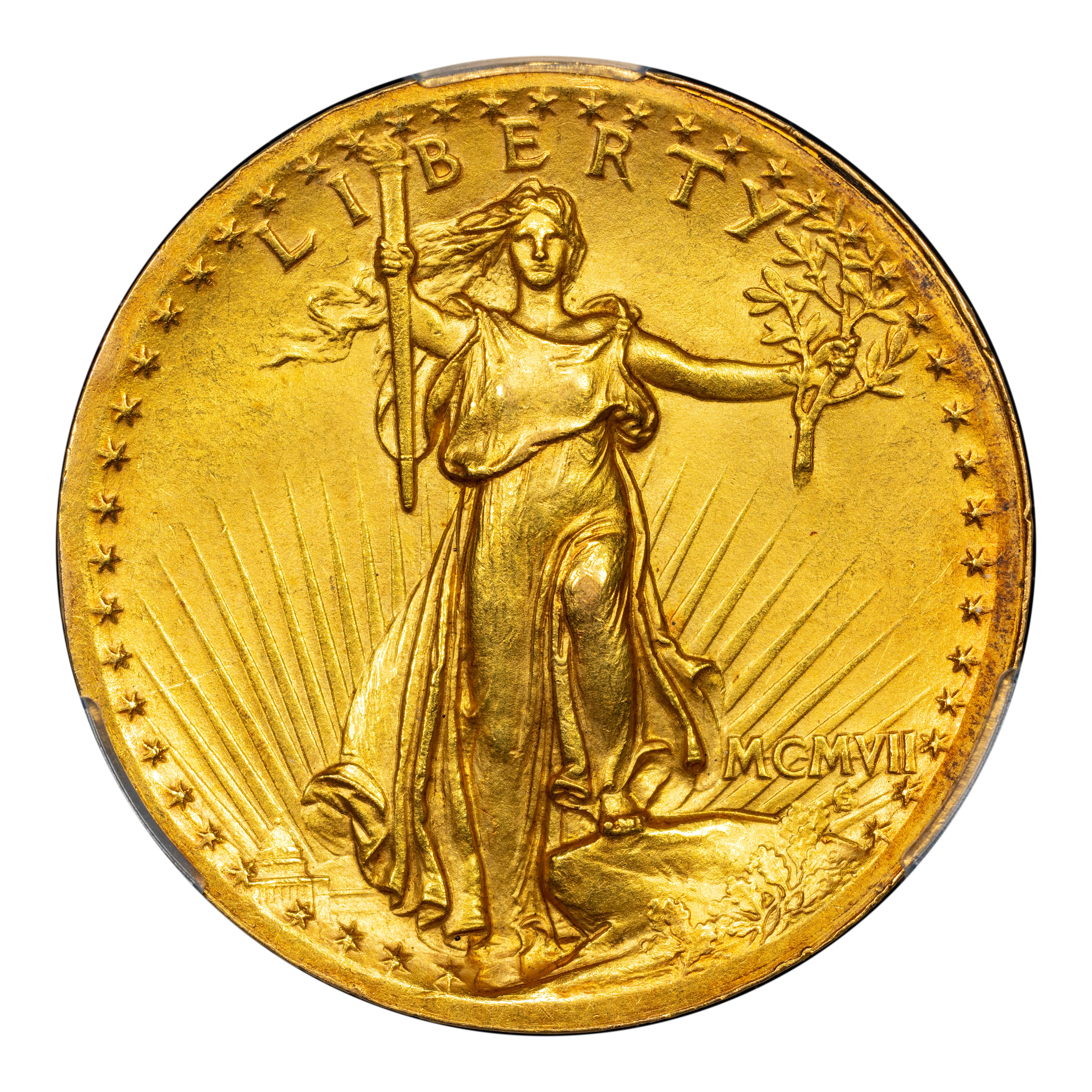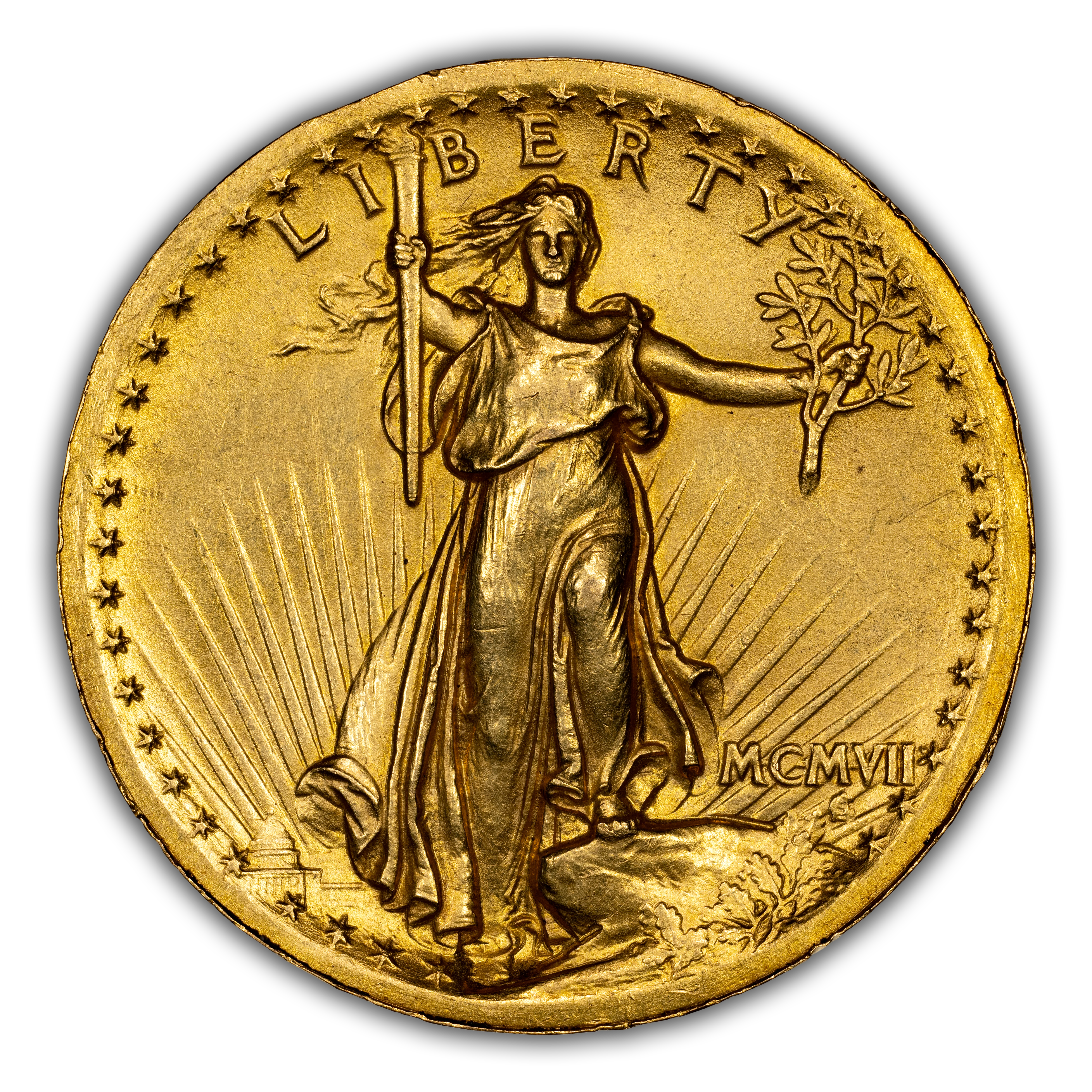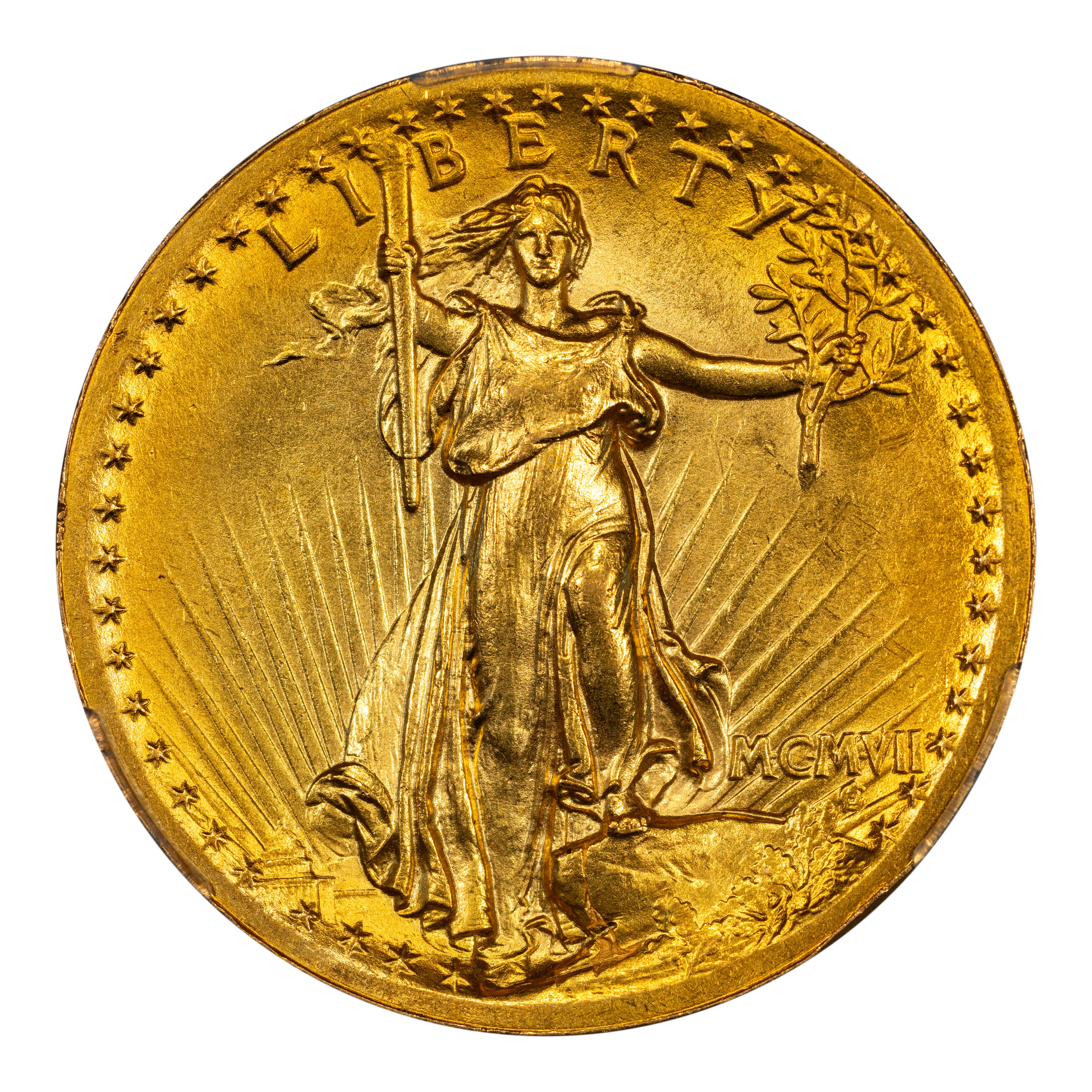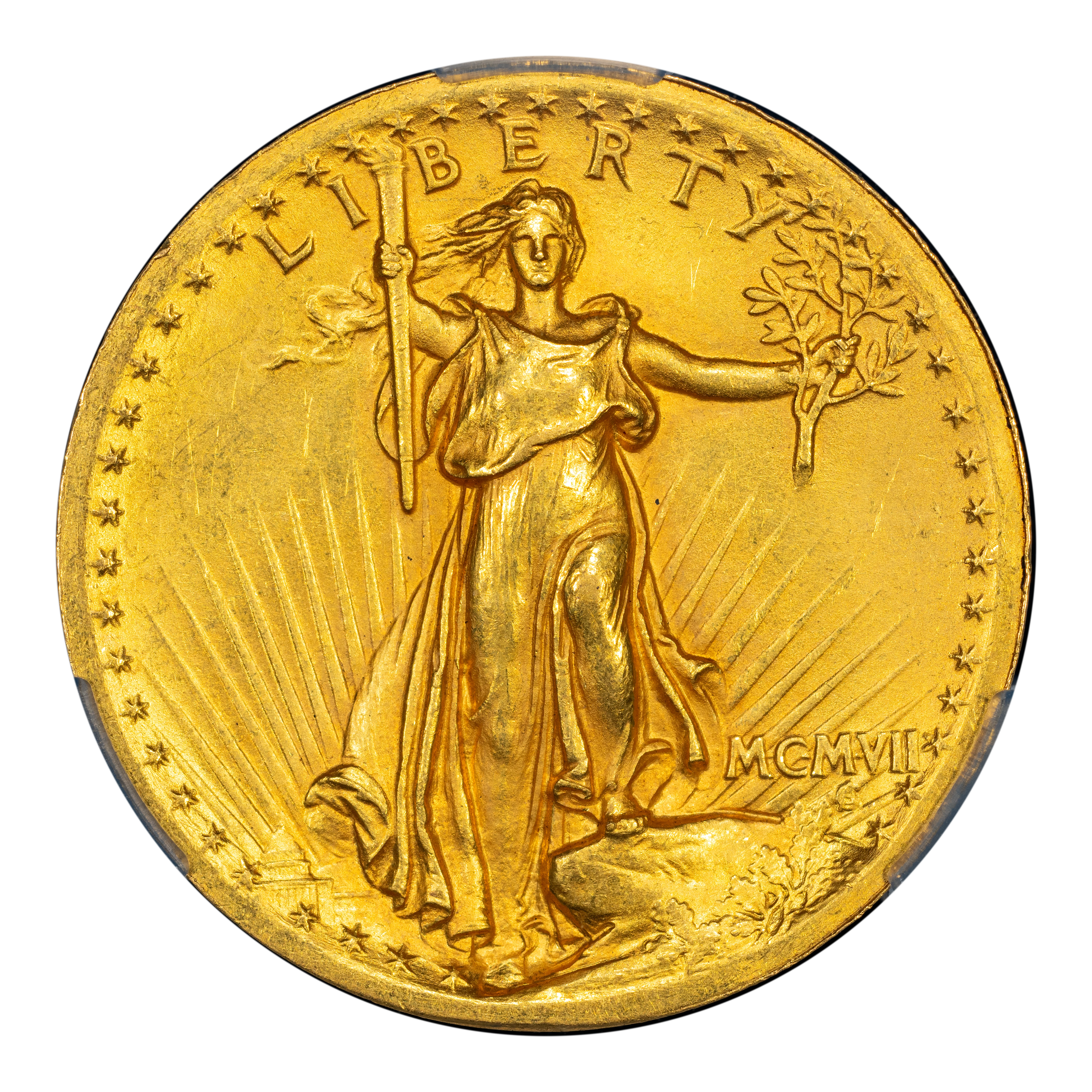 - 1907 $20 High Relief, Wire Edge MS