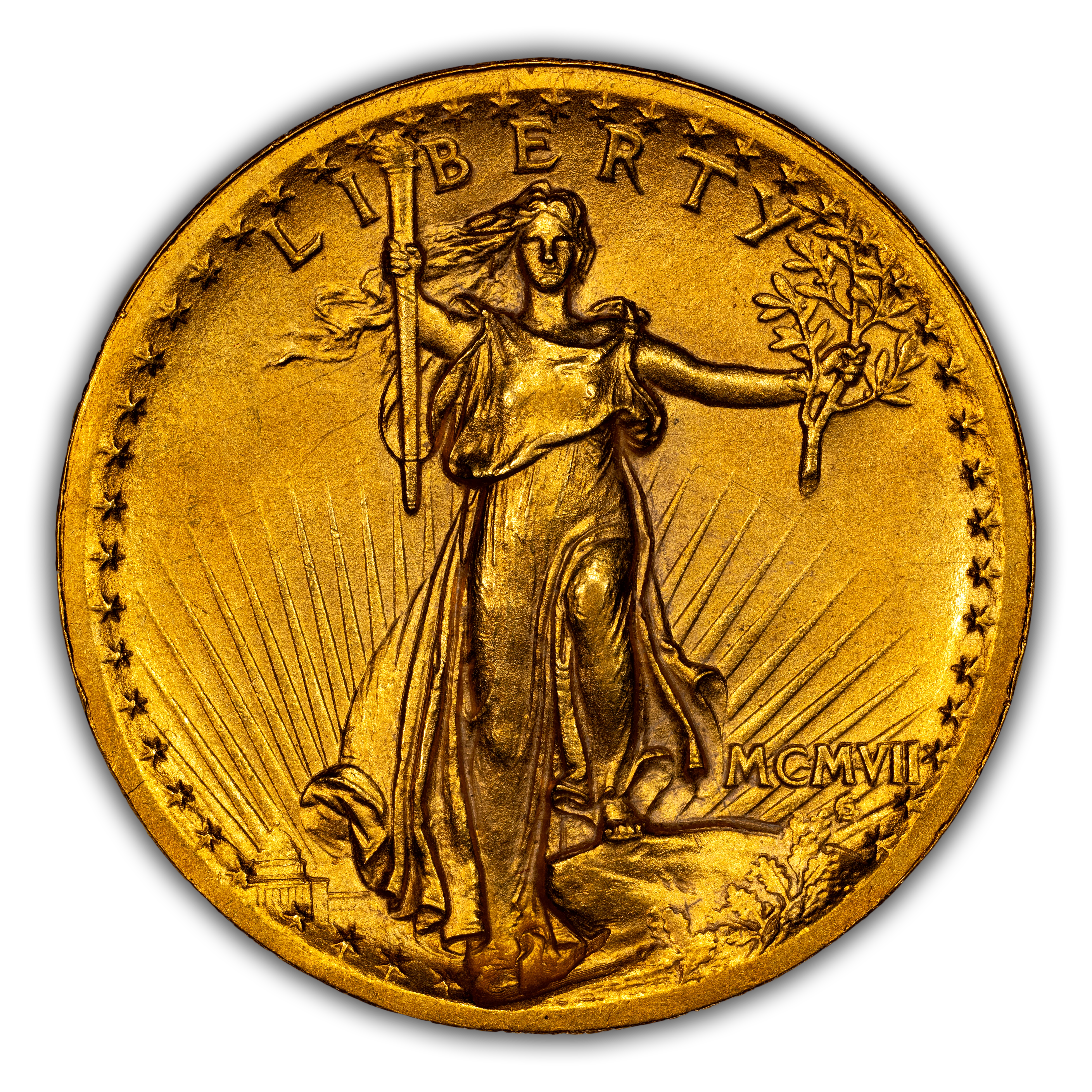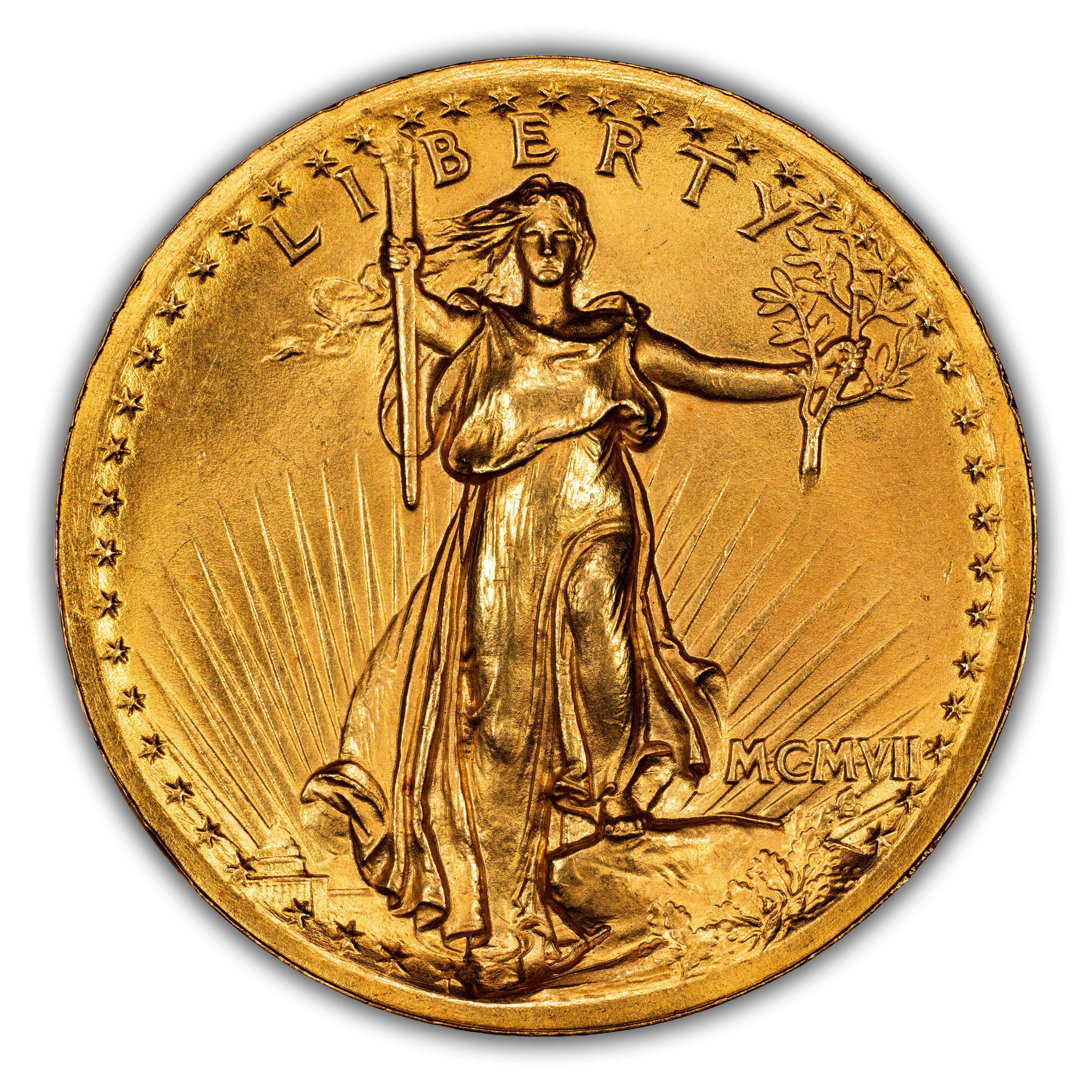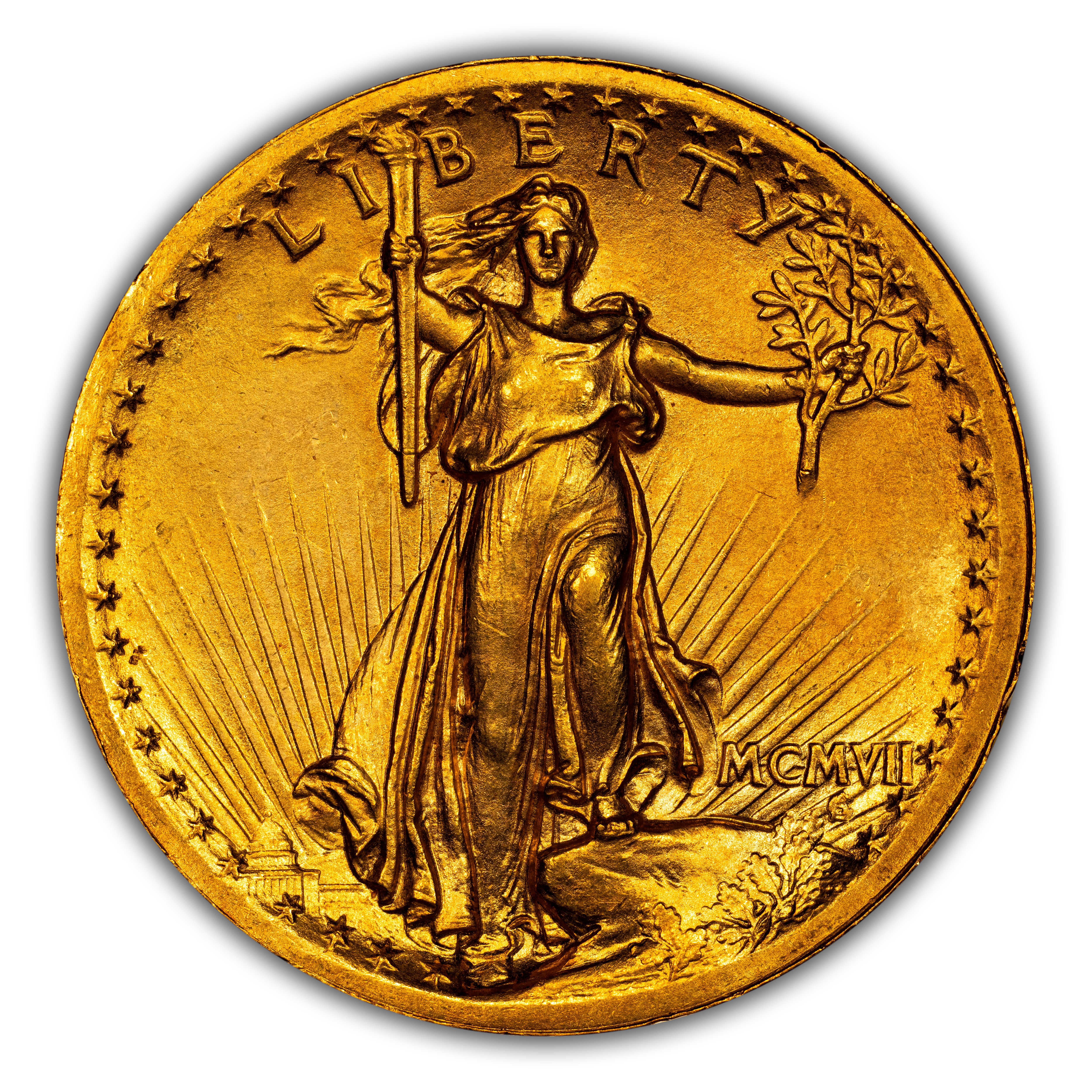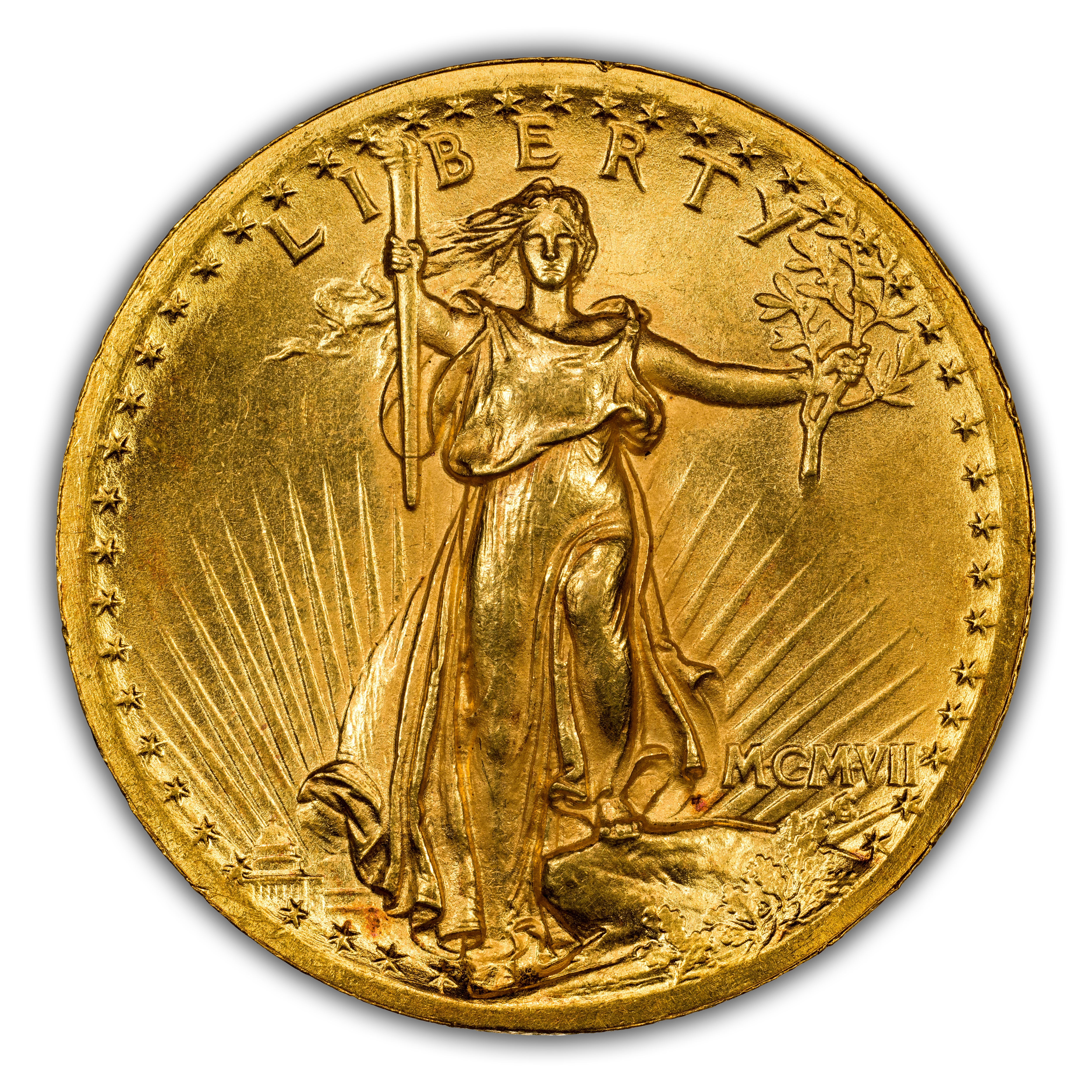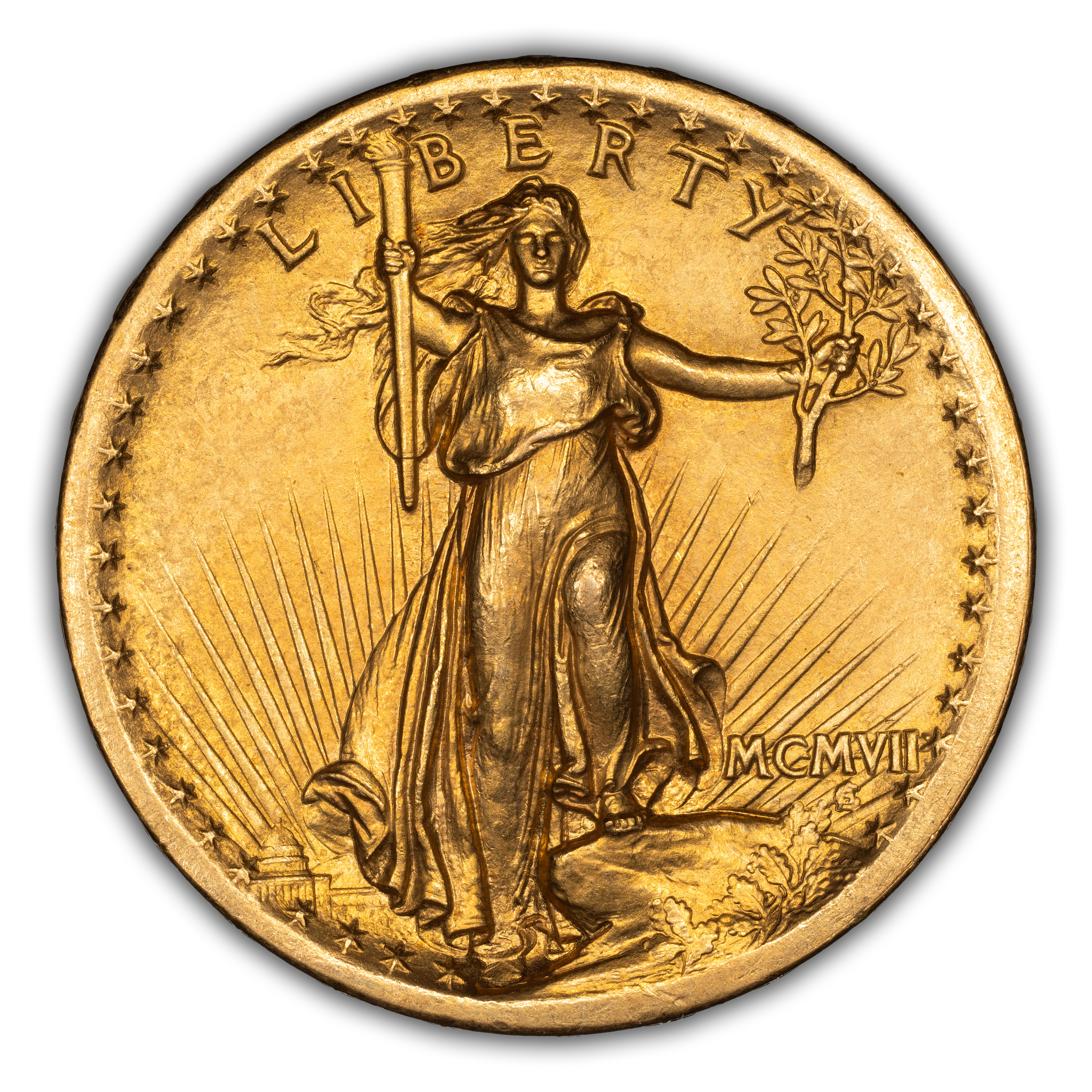 - 1907 $20 High Relief, Wire Edge MS
