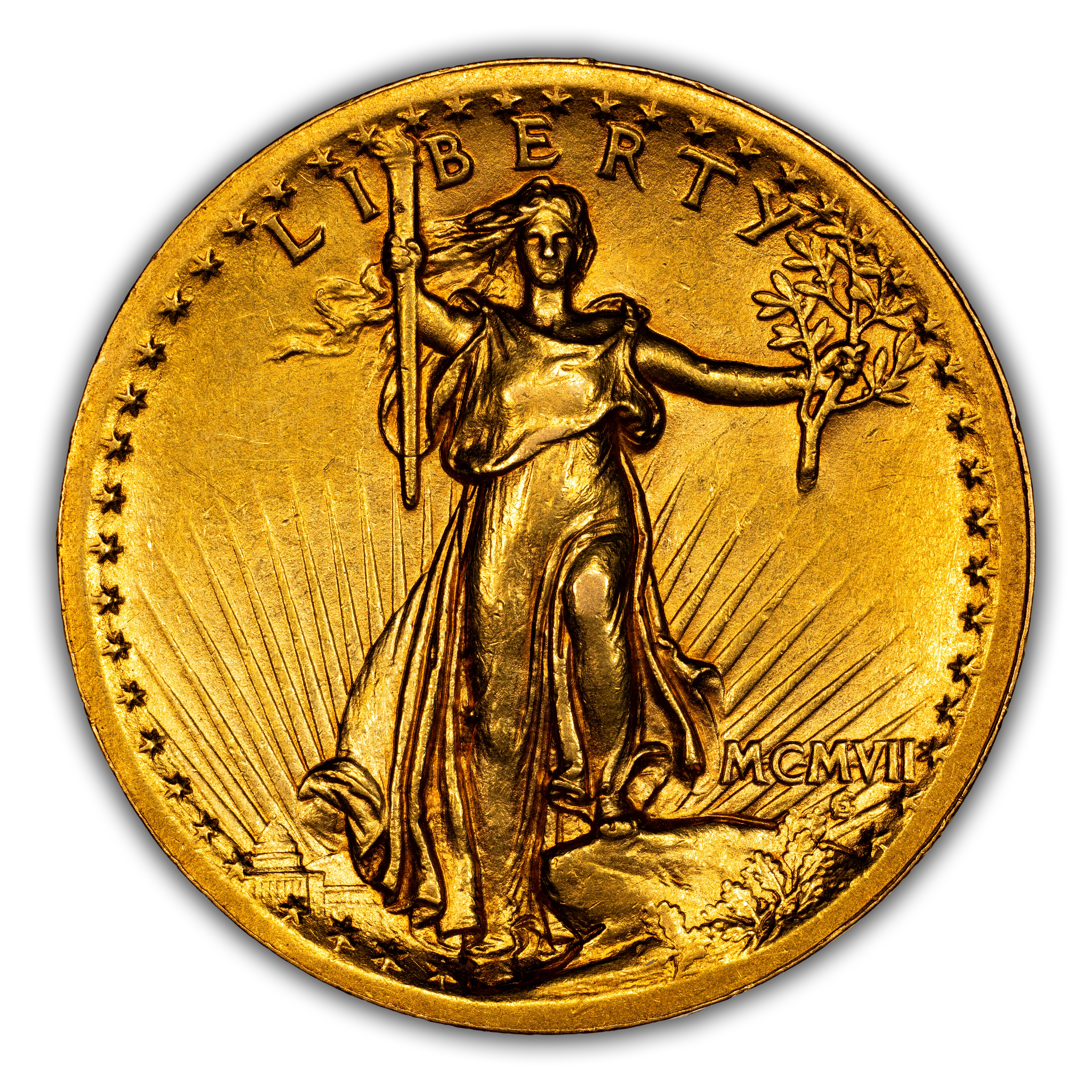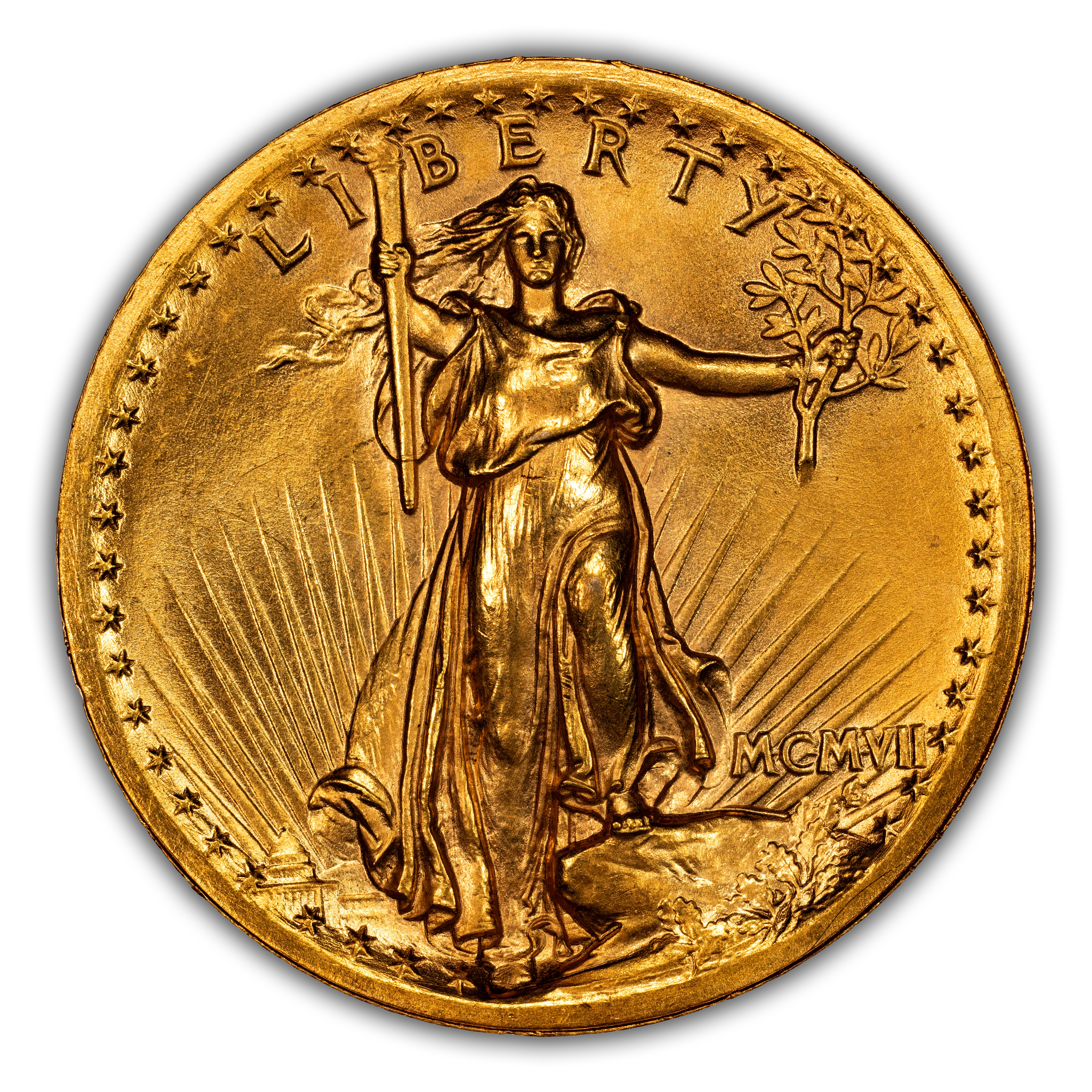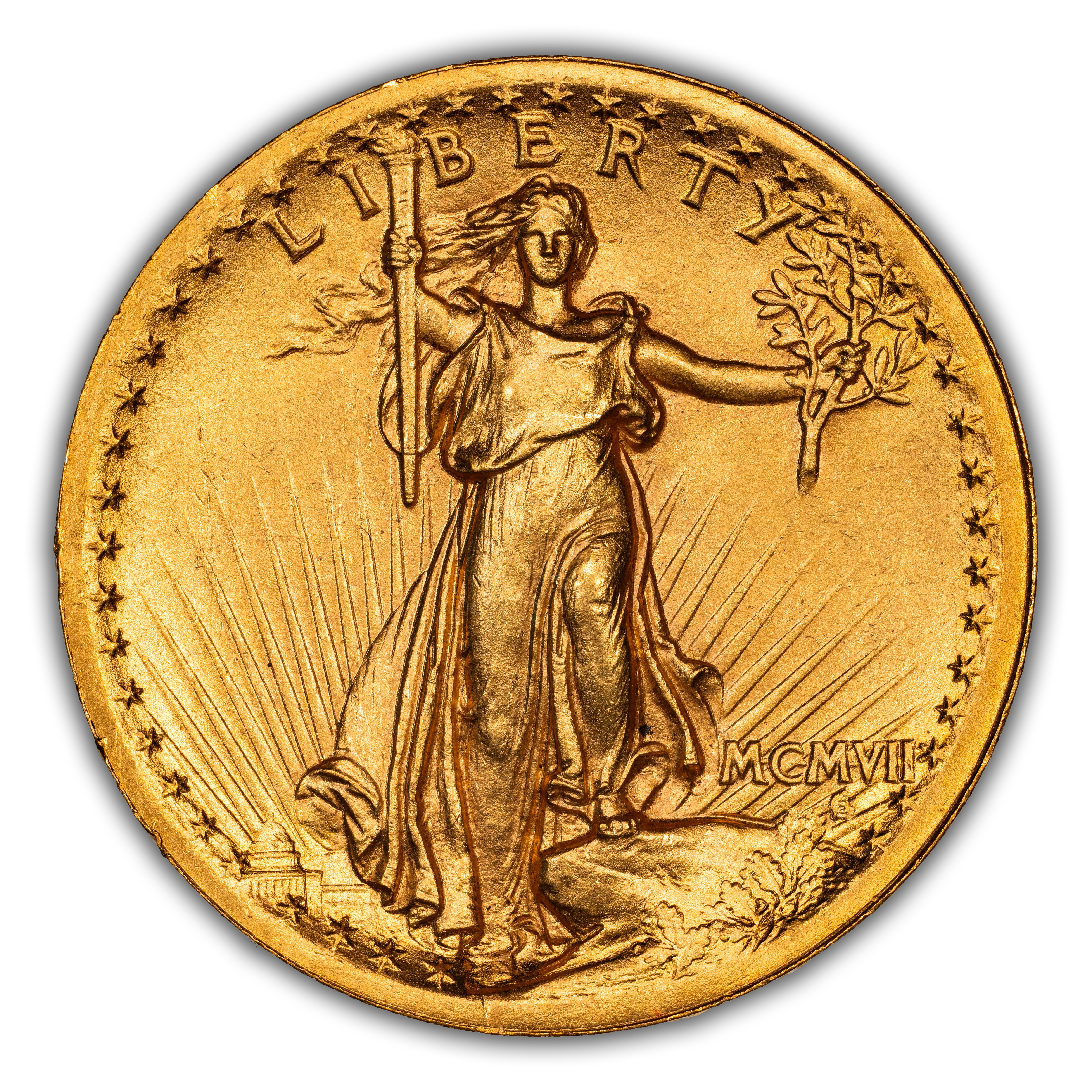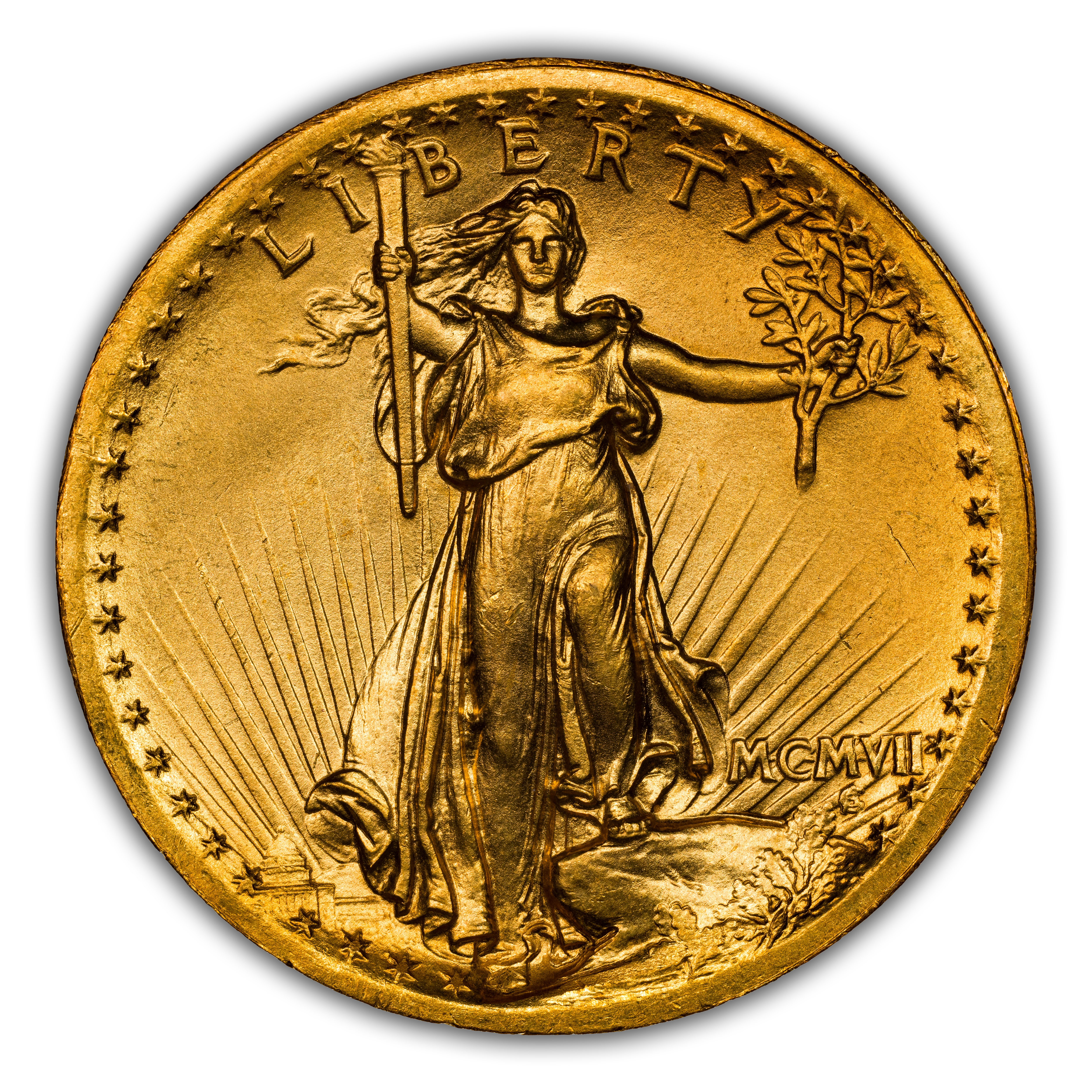 - 1907 $20 High Relief, Wire Edge MS
