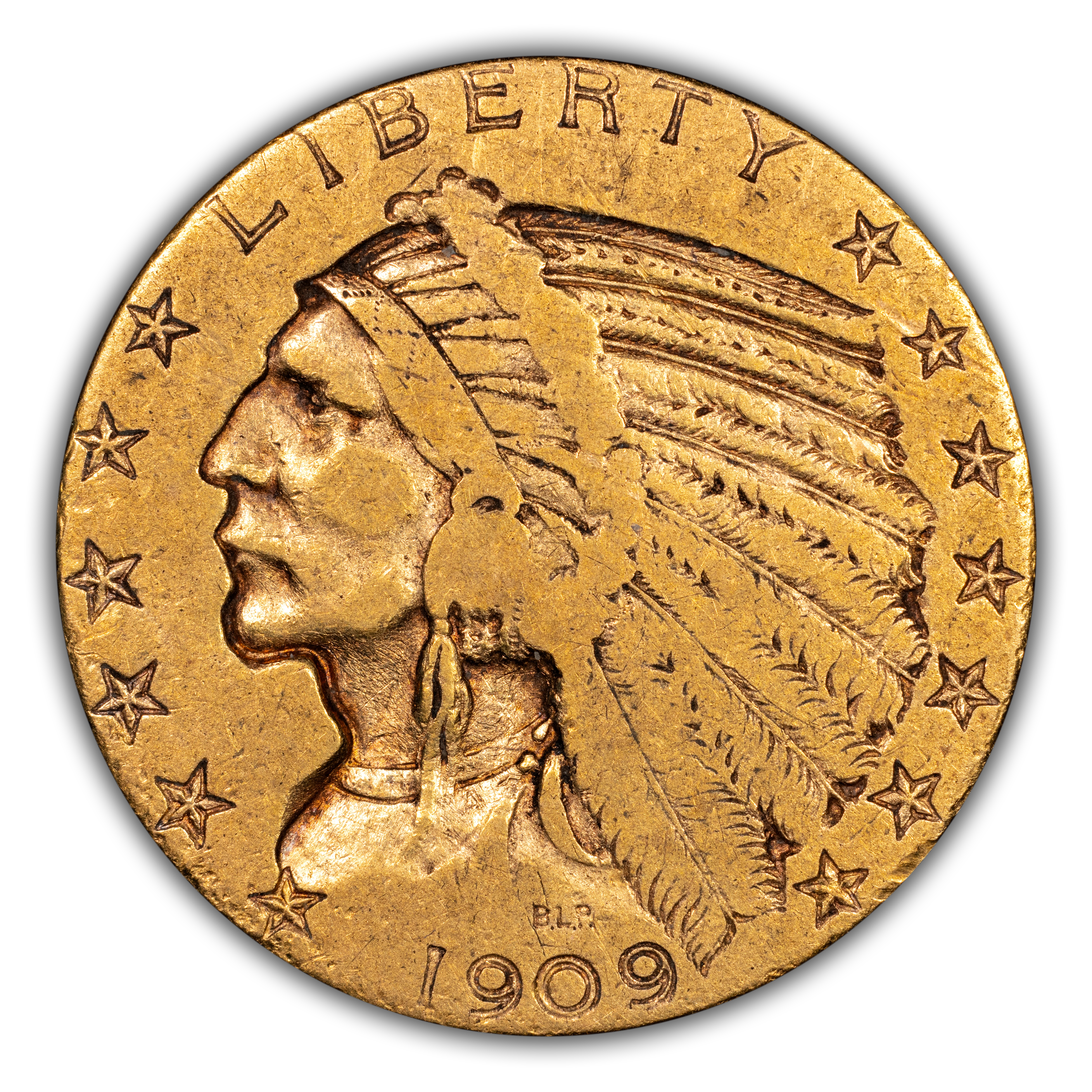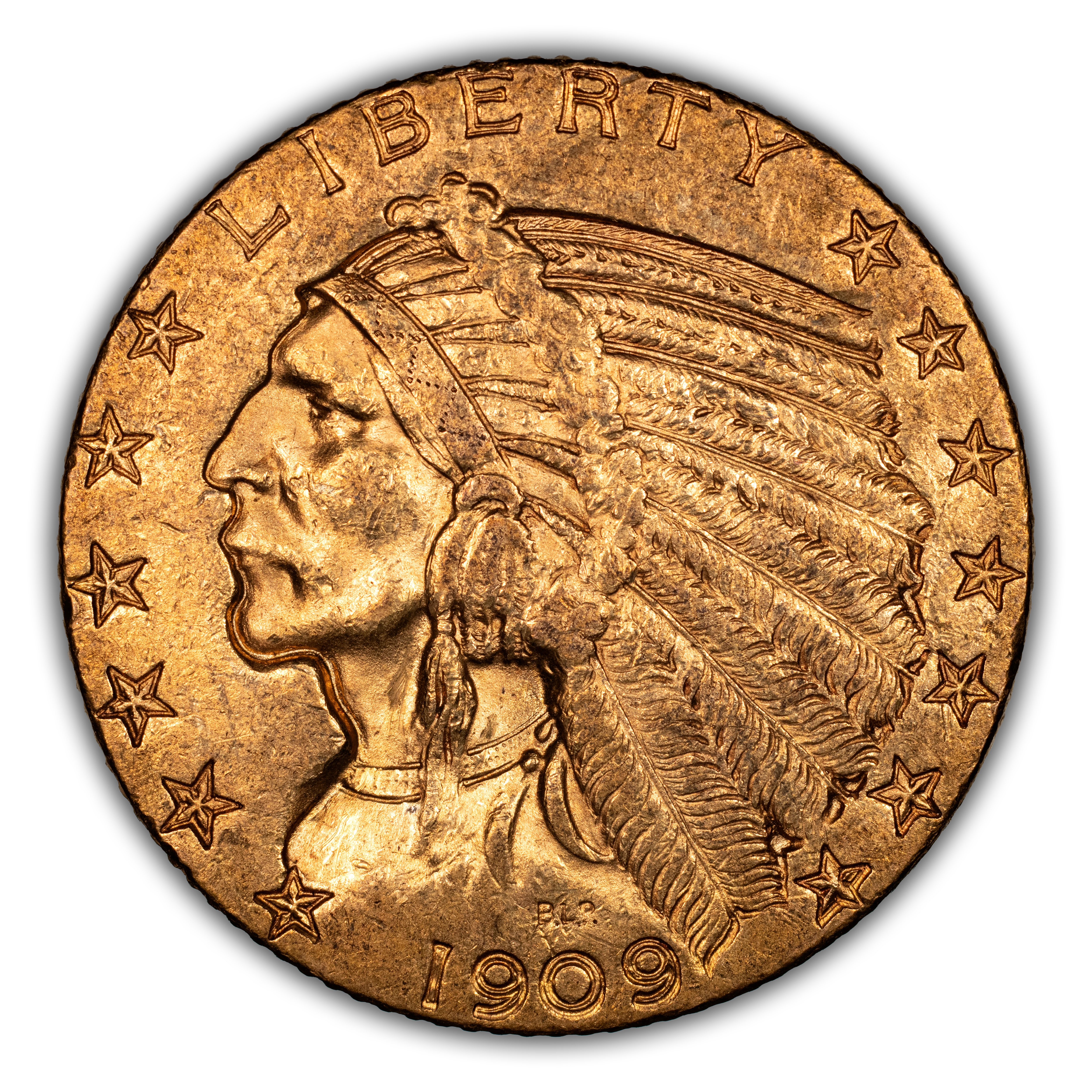 Not to be overshadowed by its New Orleans minted counterpart, the 1909-S is quite rare in its own right. It is one of the most rare Indian Half Eagles out of San Francisco especially in gem condition in which only a dozen or two exist at most. The 1909-S has great overall quality and eye appeal between strongly struck devices and mintmark plus nice luster and color.