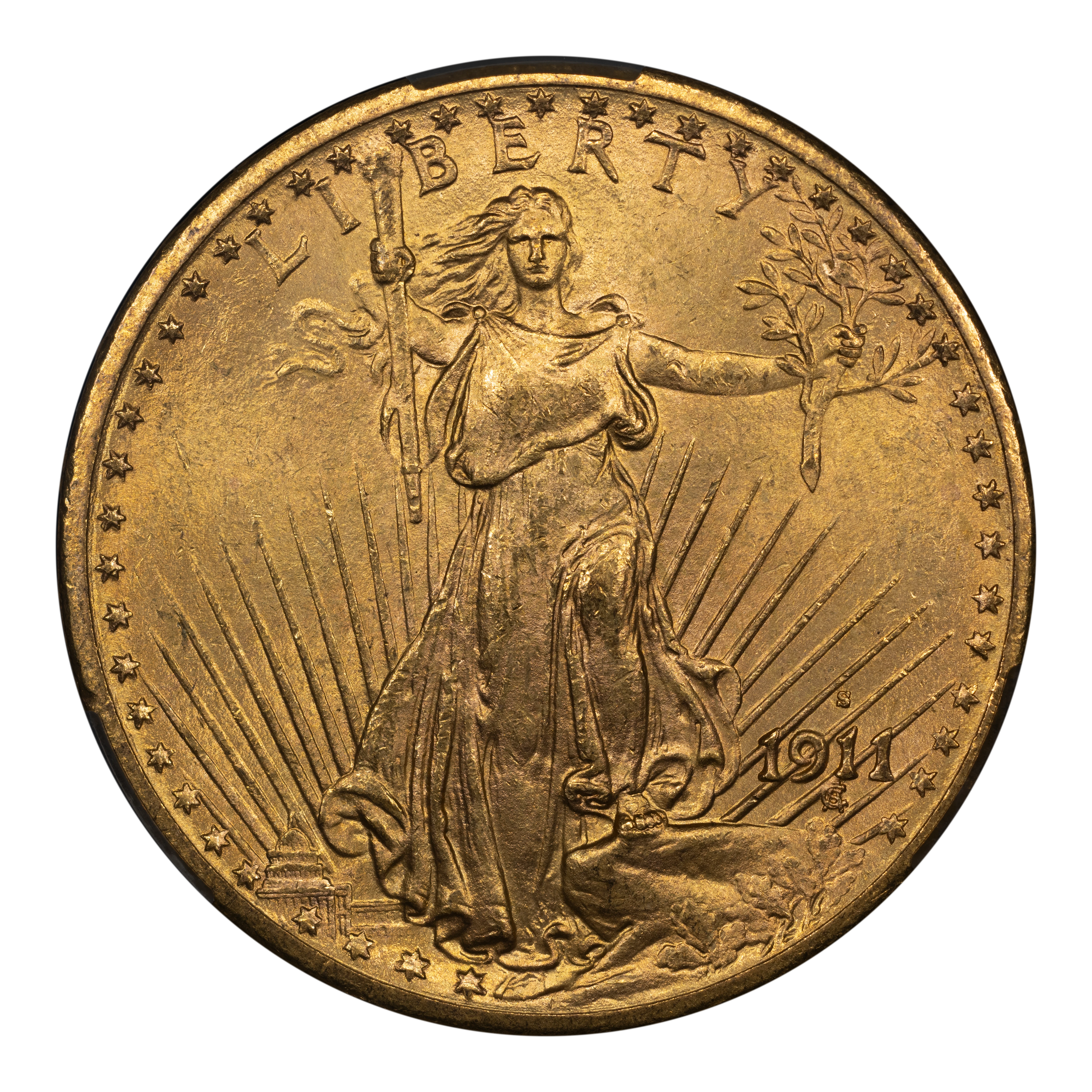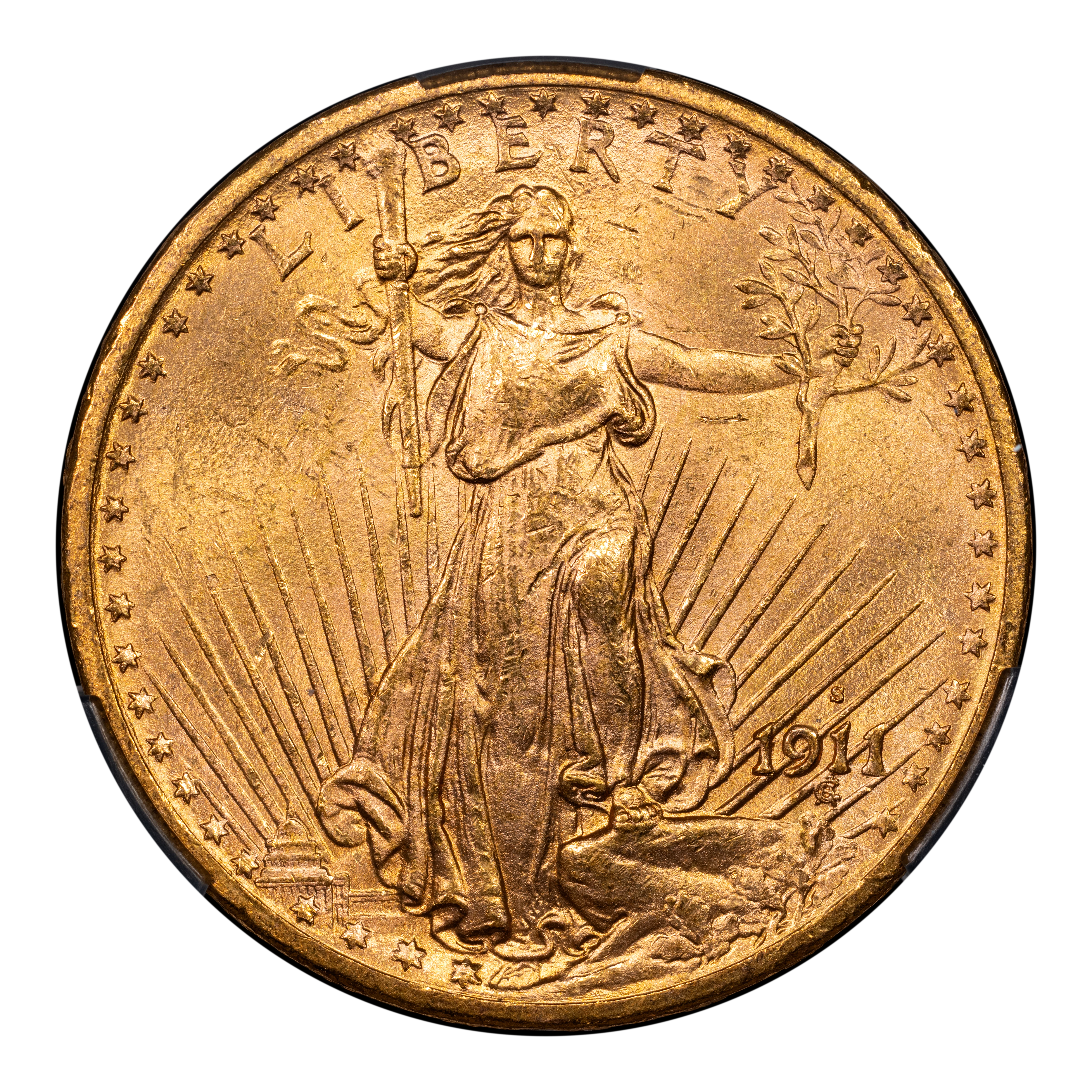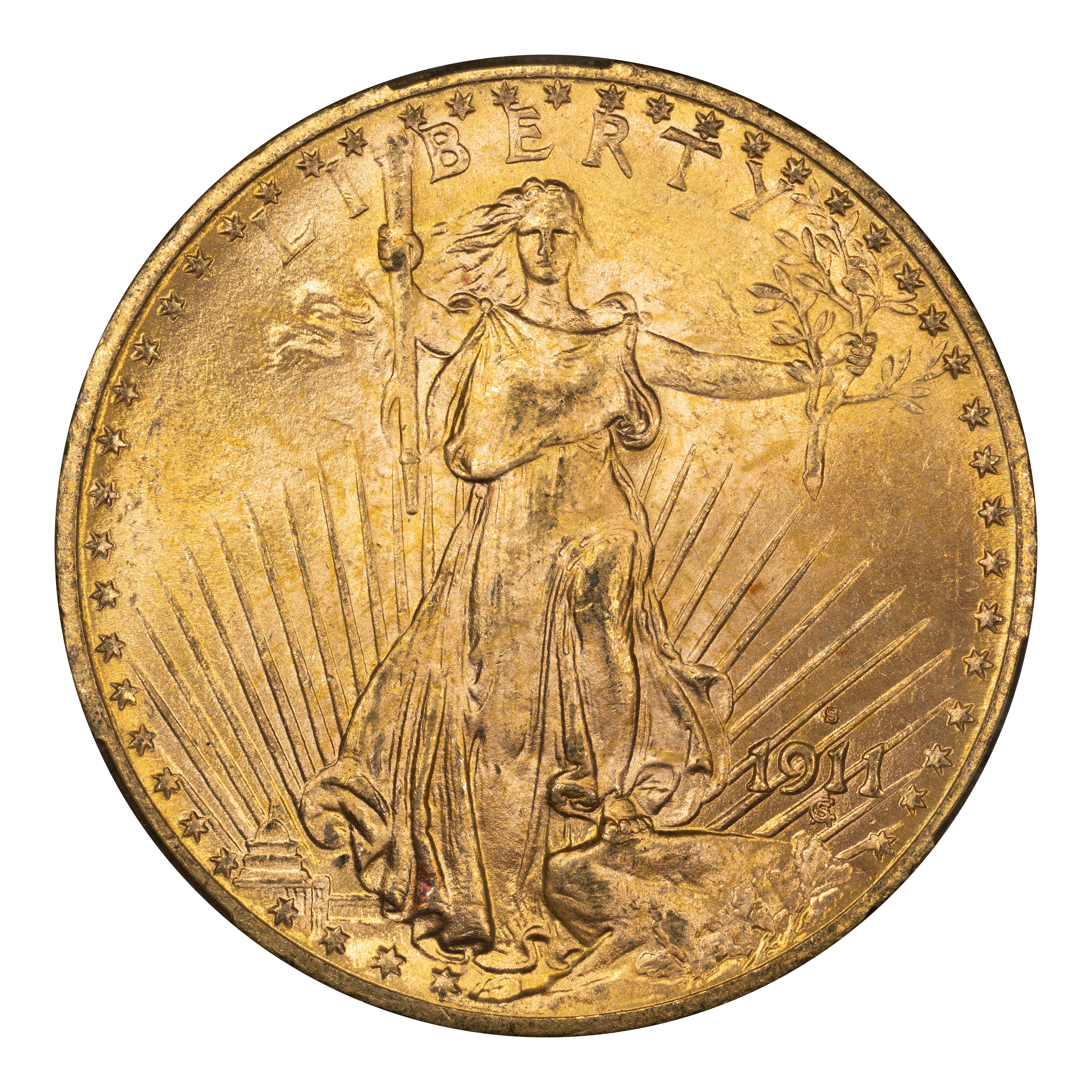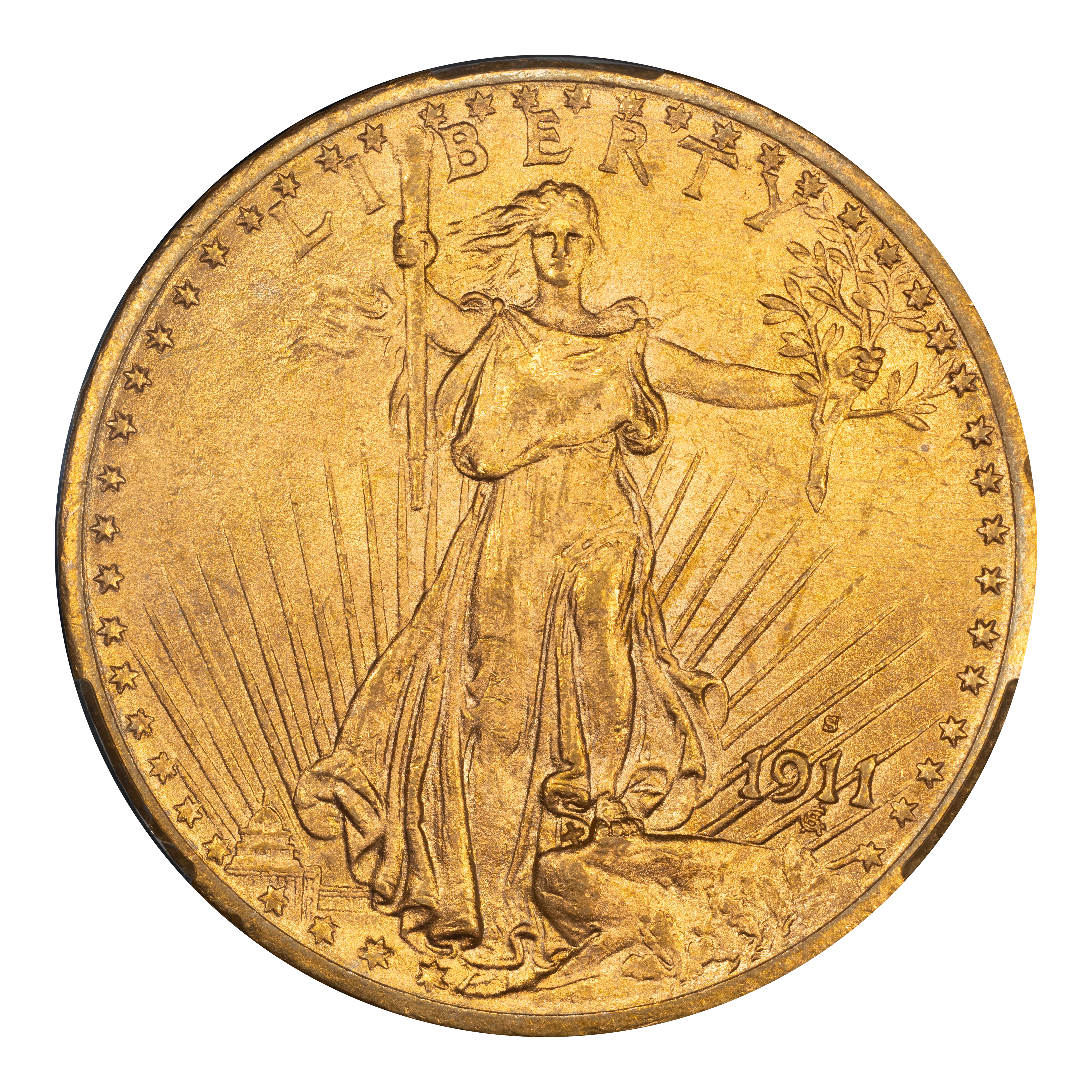 The 1911-S Saint-Gaudens double eagle is fairly common as far as Saints go. The coin is readily obtainable in circulated and lower uncirculated grades, though pieces grading MS65 or better are much scarcer and only a relative few are known in MS66 or better and are sought most especially by registry set collectors.